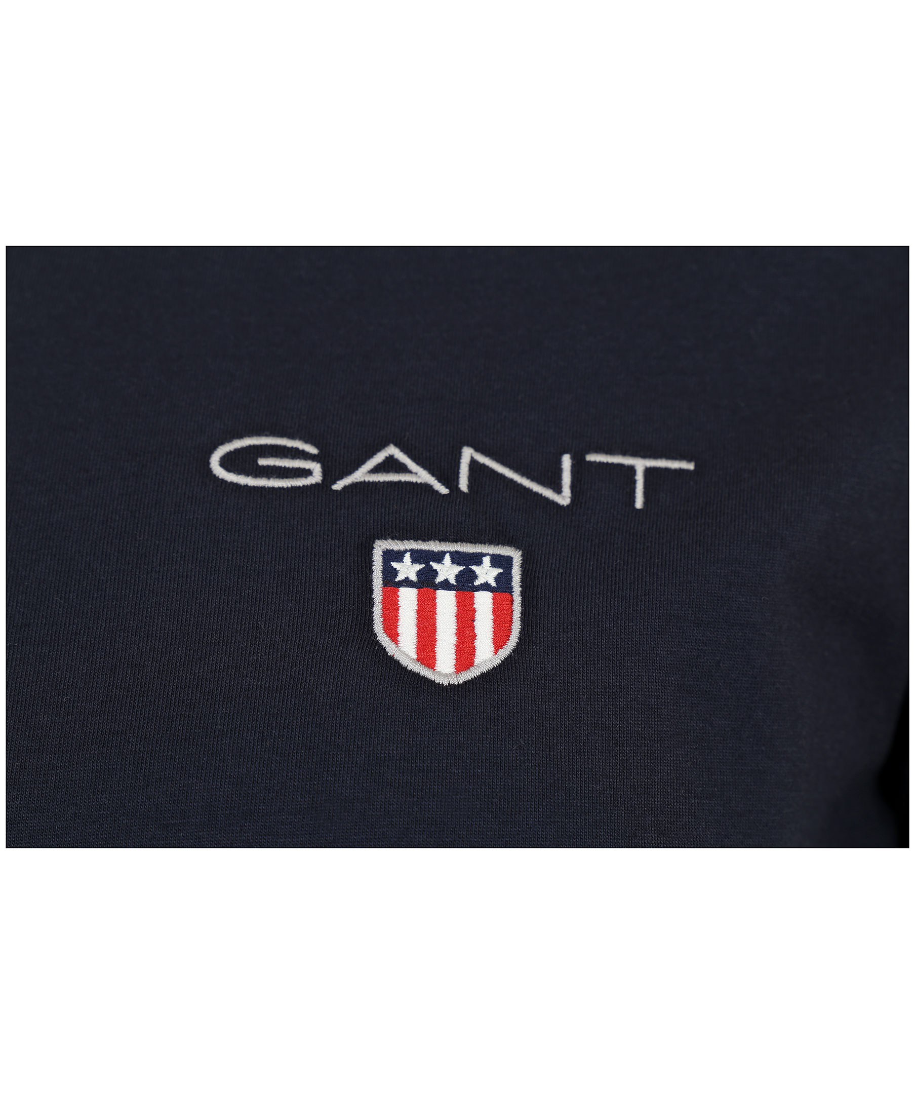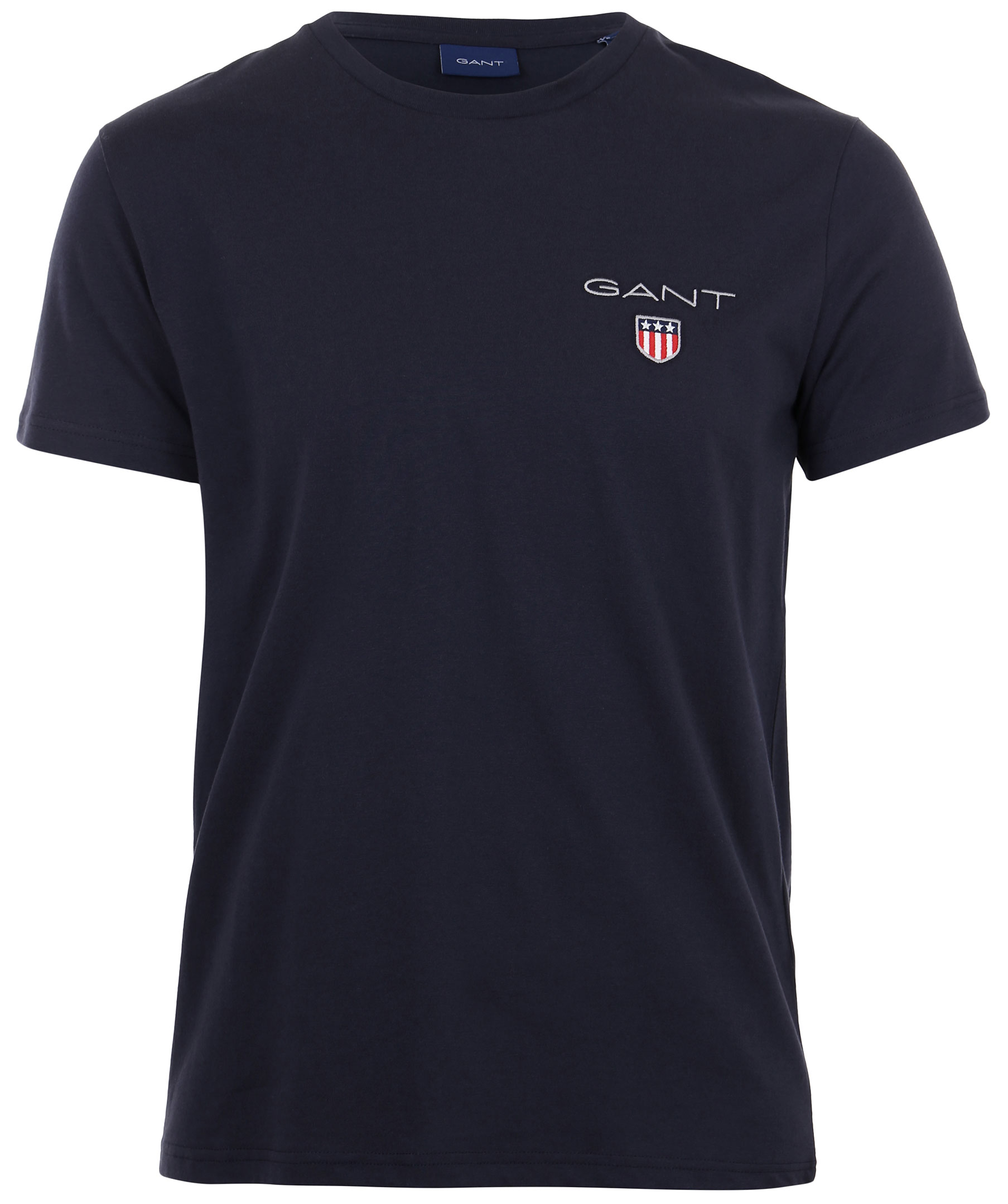 Marinblå t-shirt i 100% bomull från Gant. Broderad logotyp till vänster på bröstet. Rundad halsringning.