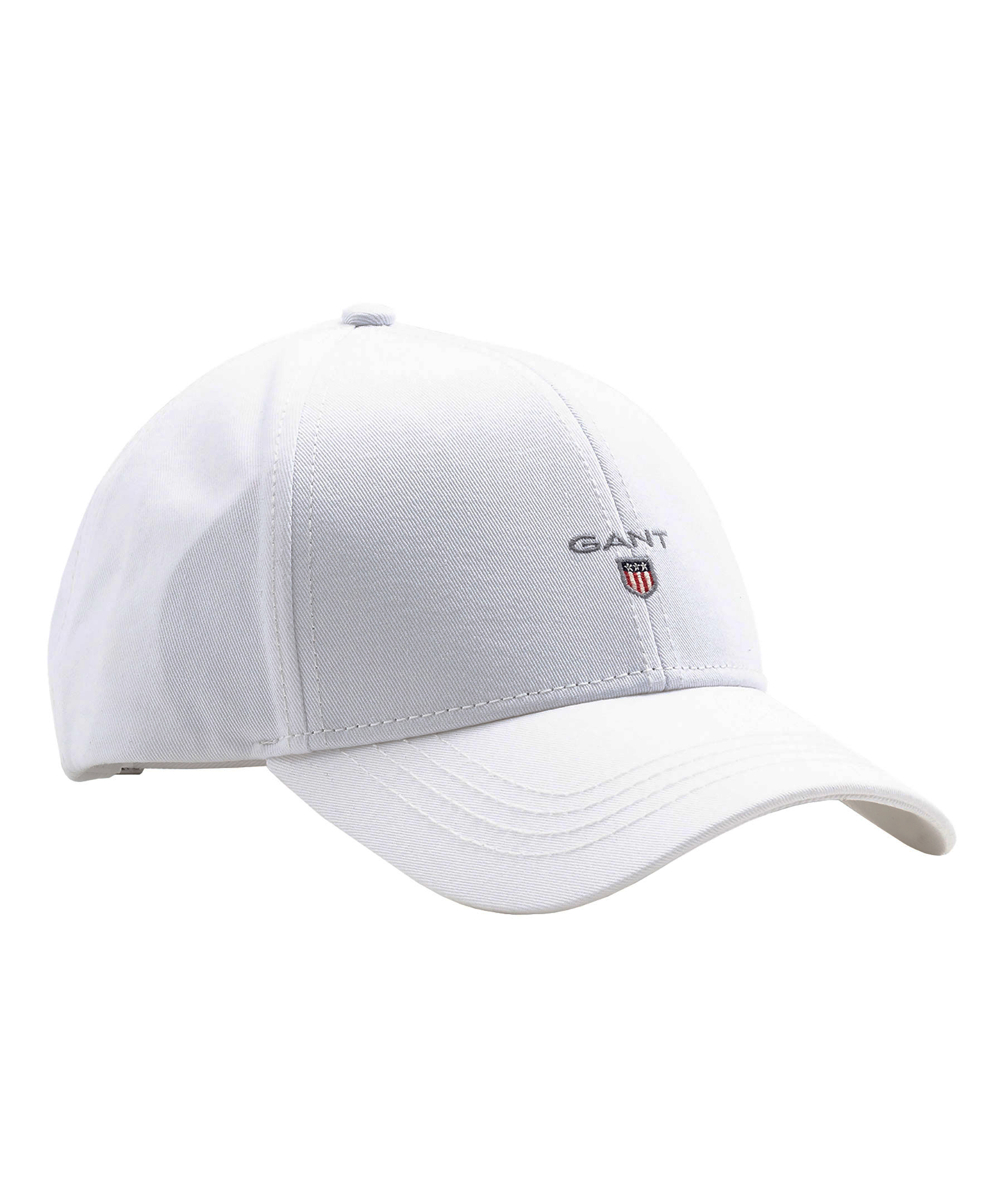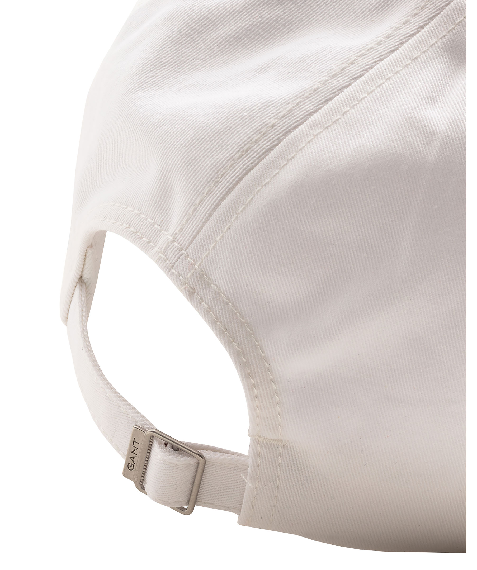 Vit keps från Gant. Broderad logotyp på kepsens framsida. Reglerbart spänne baktill.