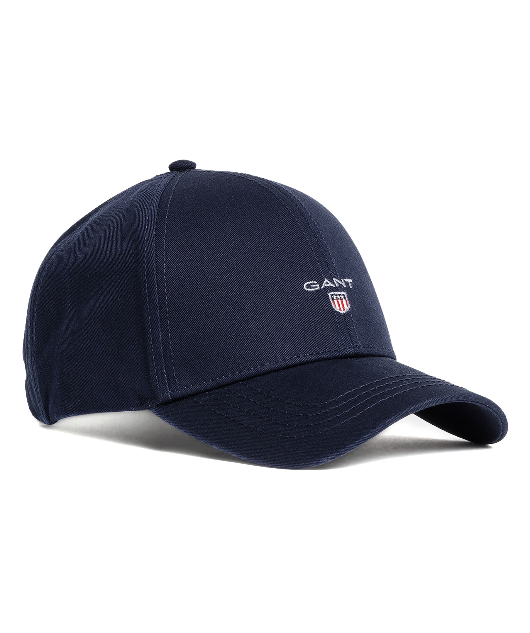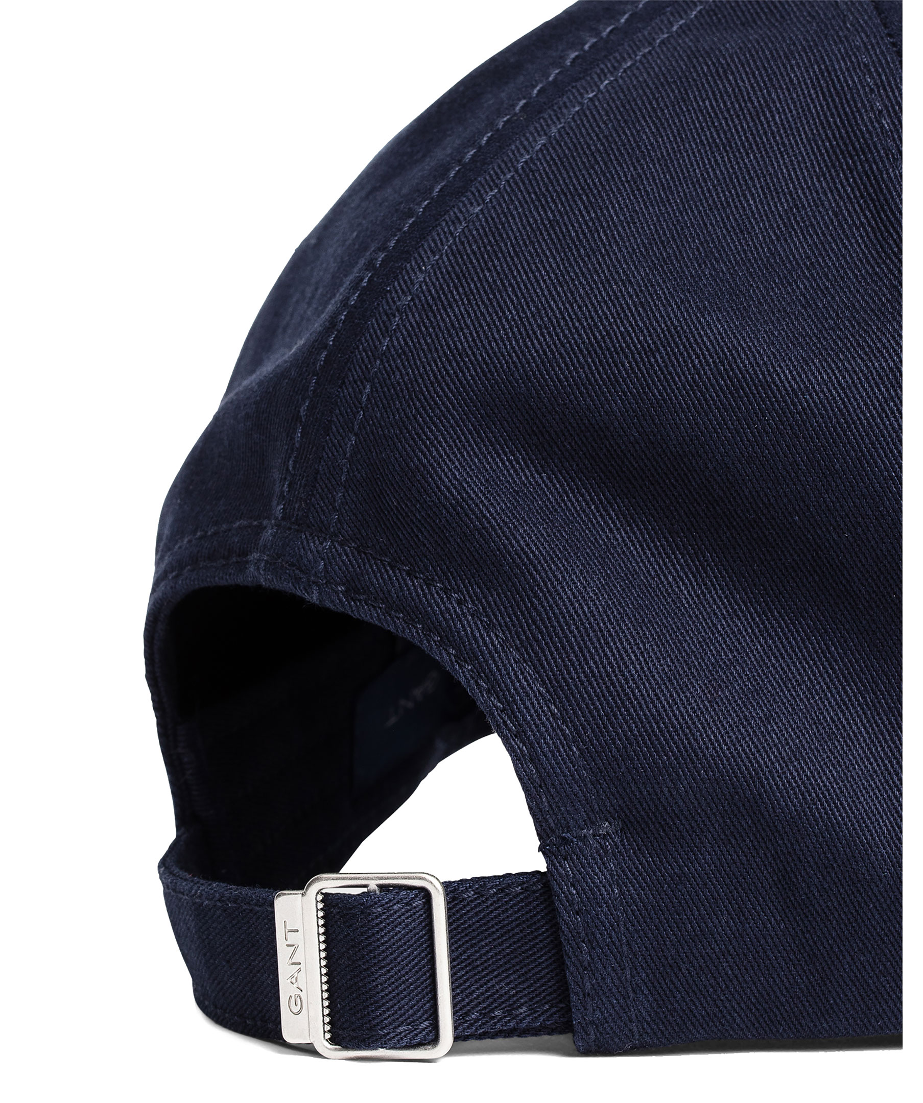 Marinblå keps från Gant. Broderad logotyp på kepsens framsida. Reglerbart spänne baktill.
