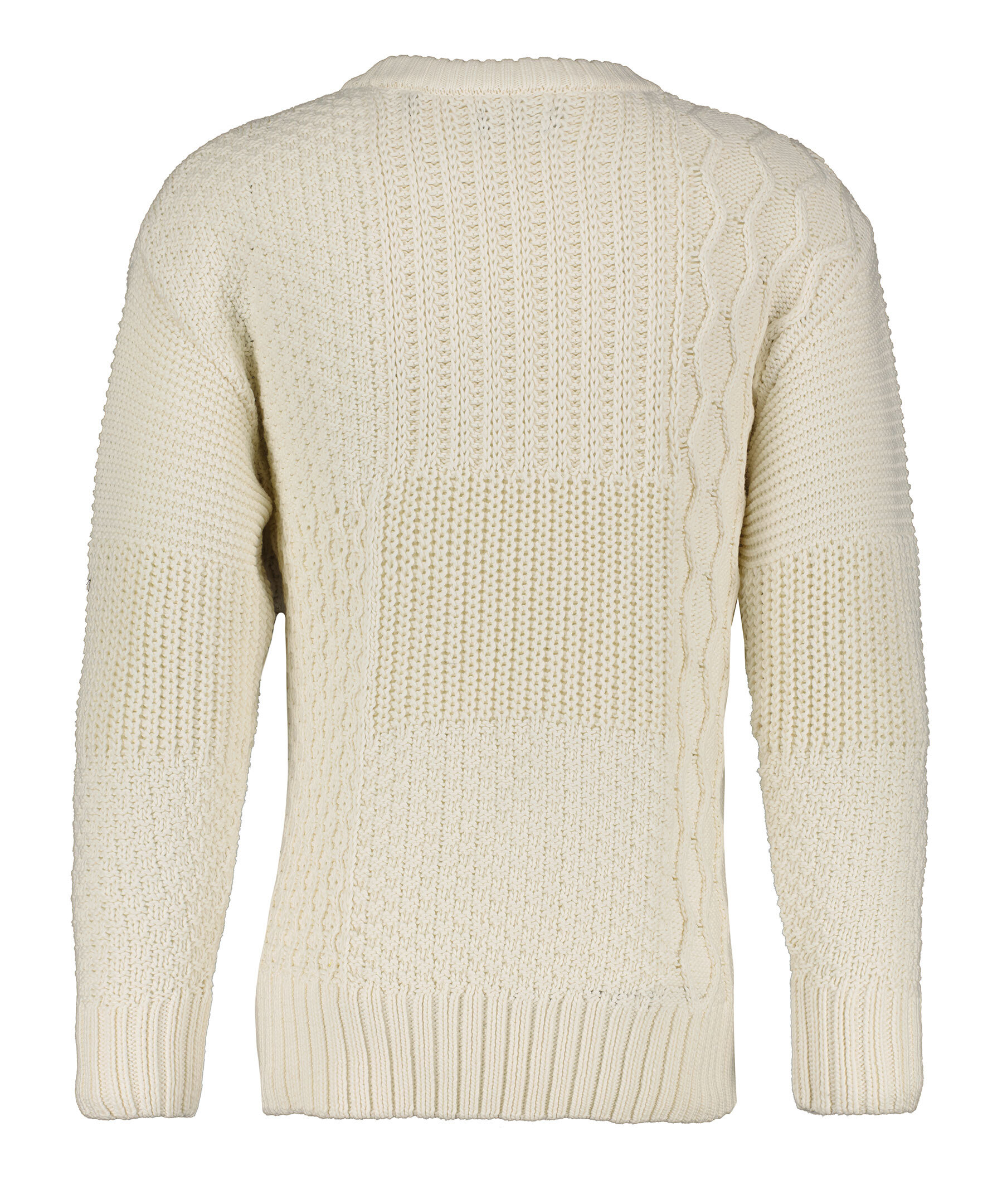 Vit stickad tröja från Gant i olika stickade mönster. Rundad halsringning. Ribbstickade muddar vid halsringning, ärm- och plaggslut.