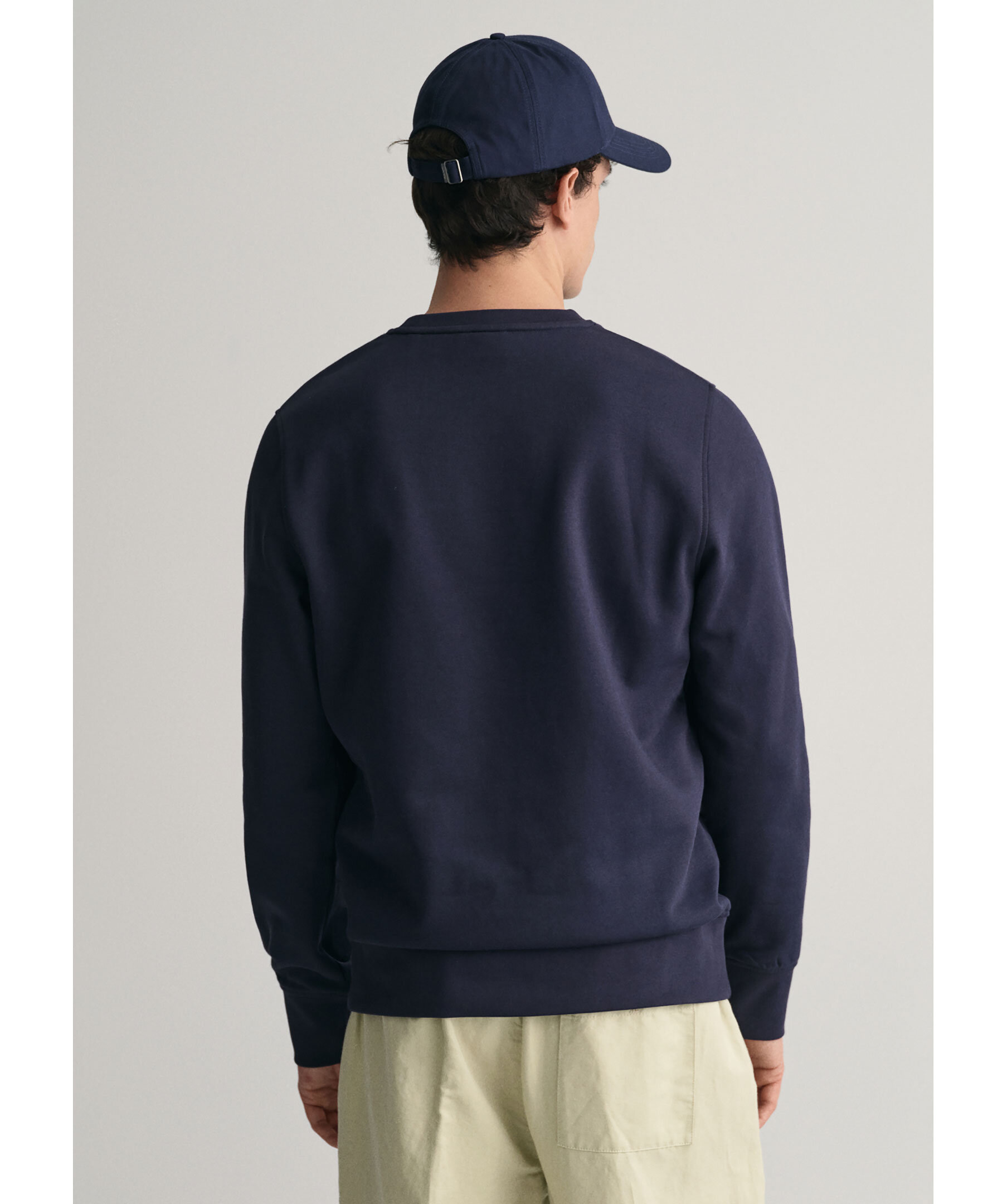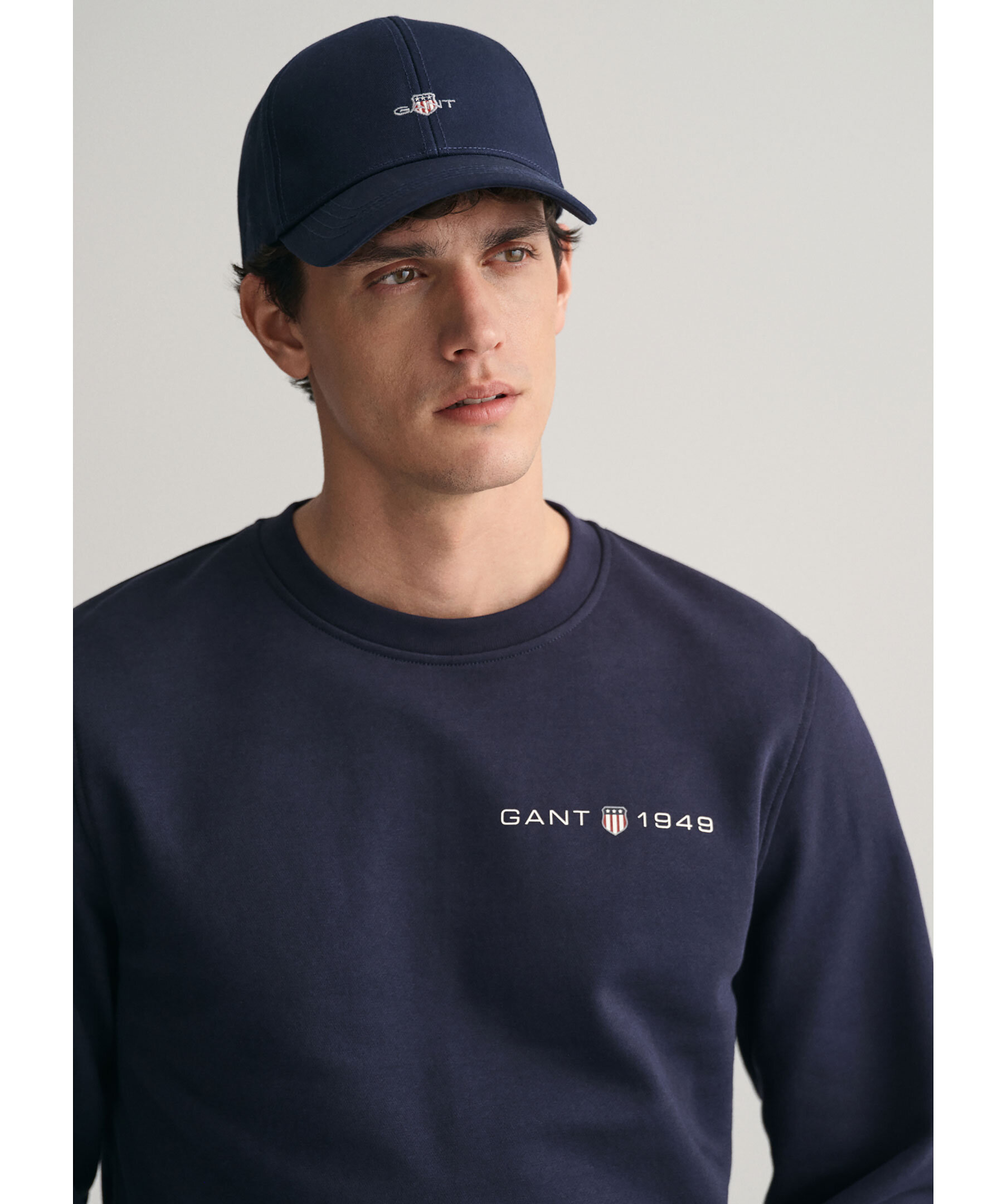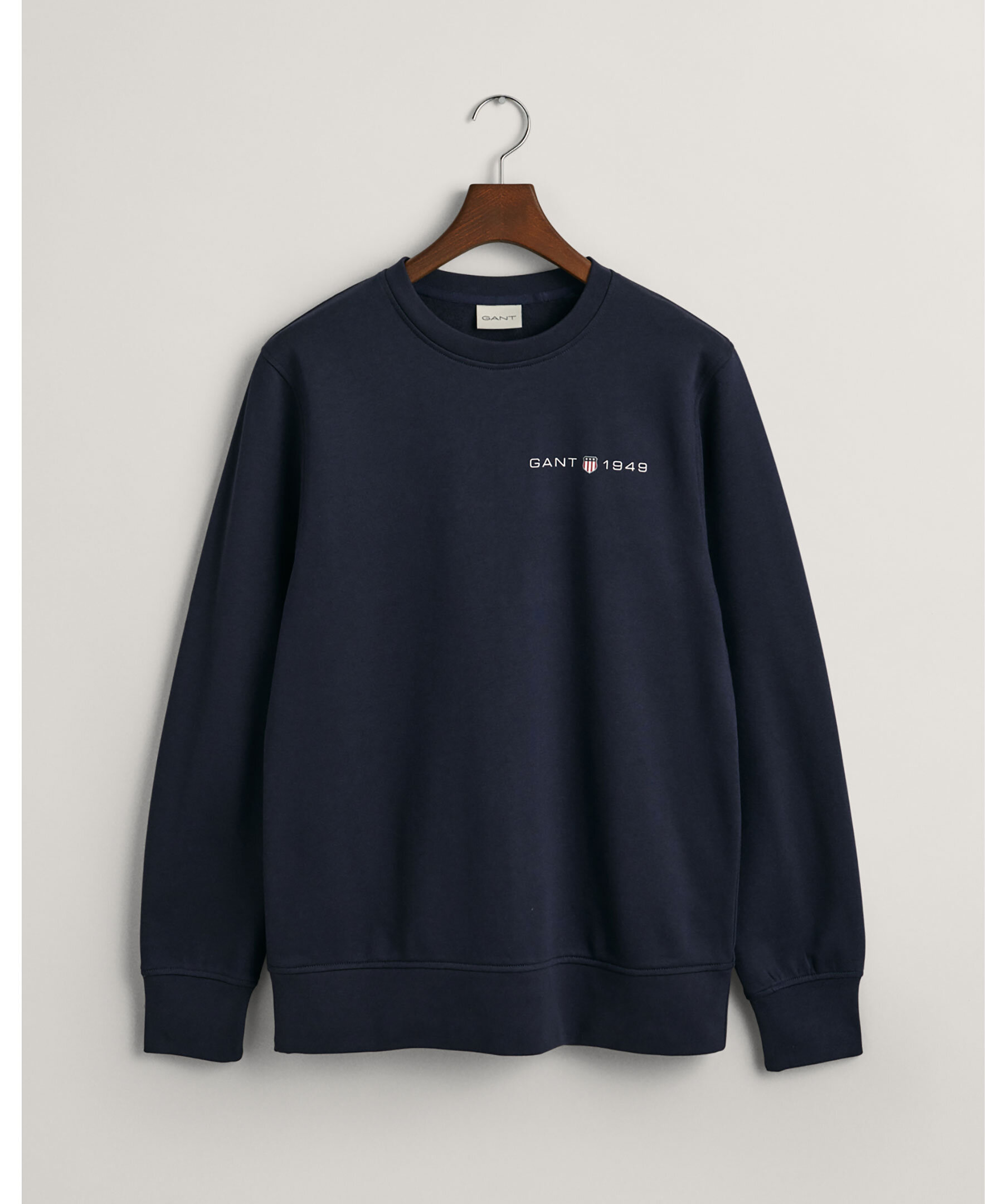 Marinblå sweatshirt från Gant. Ribbstickad halsringning samt muddar vid ärm- och plaggslut. GANT 1949-sköldlogotyp tryckt på bröstet. Normal passform. Tillverkad i en bomullsblanding.