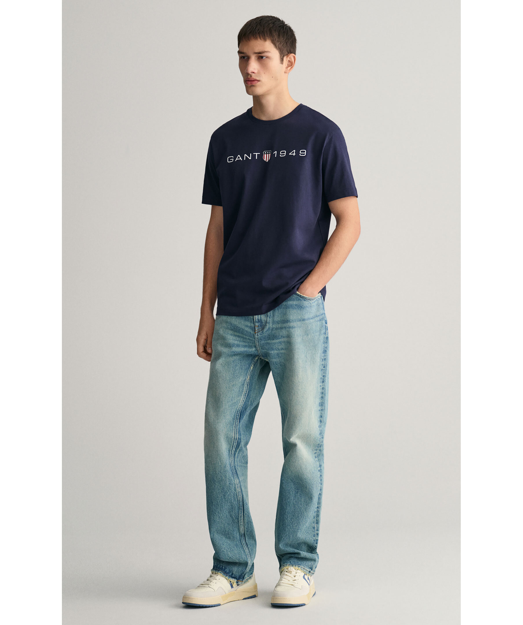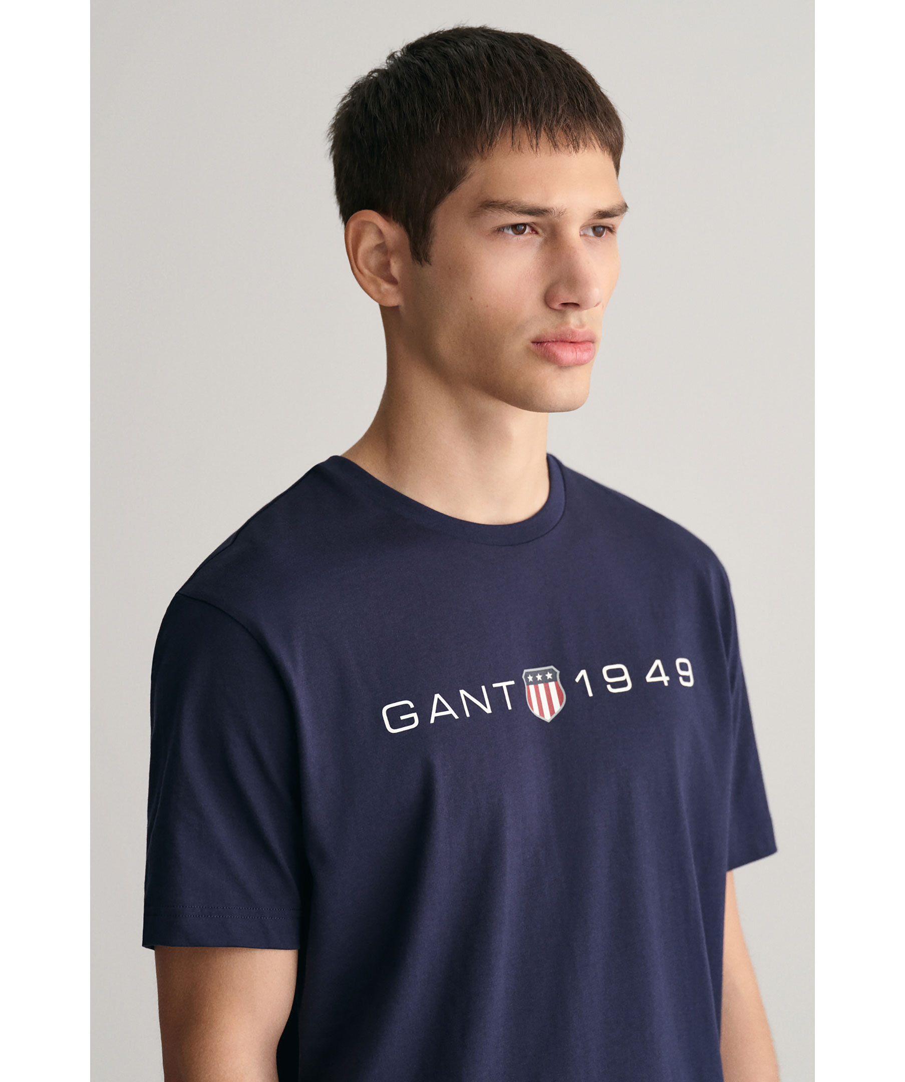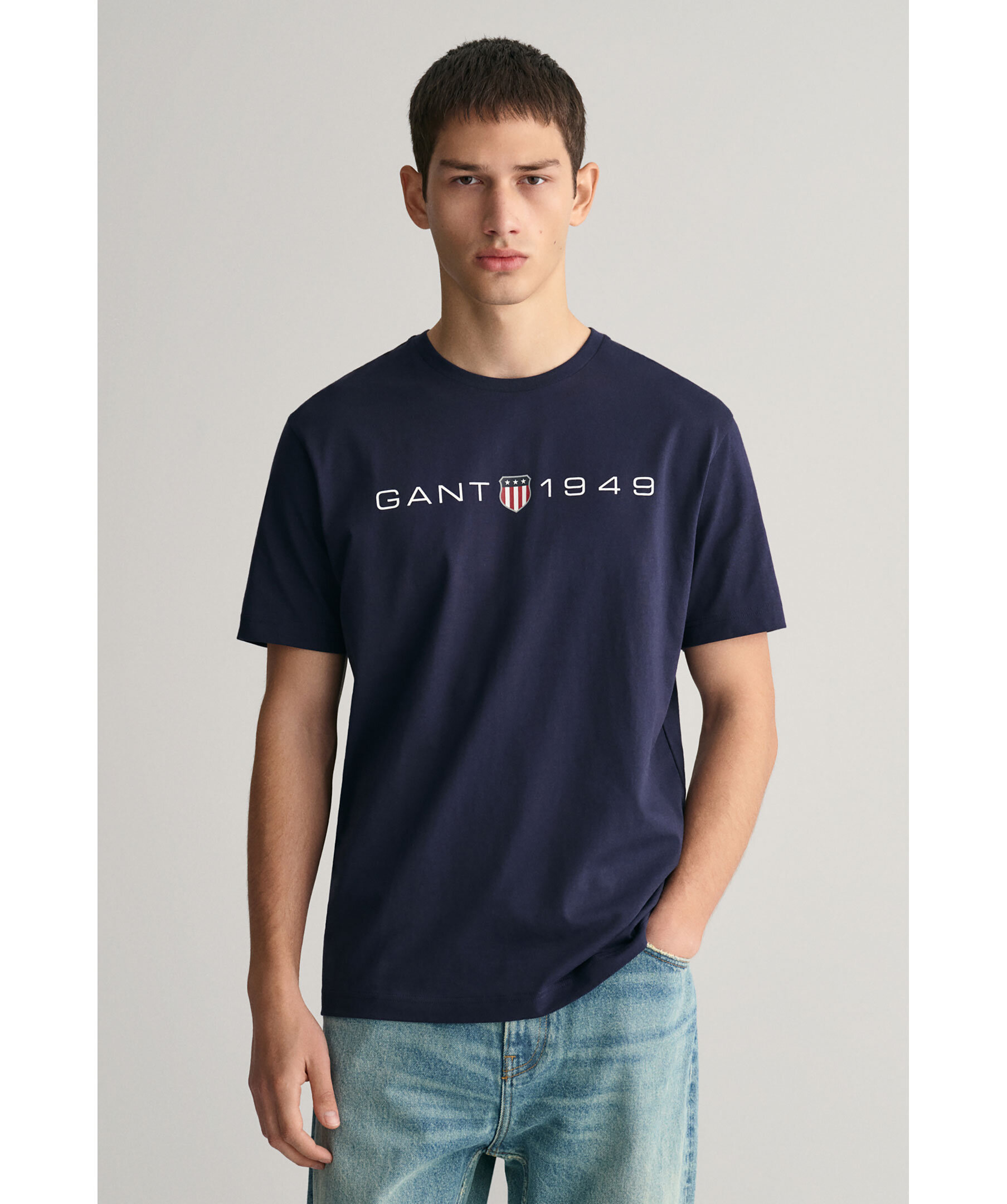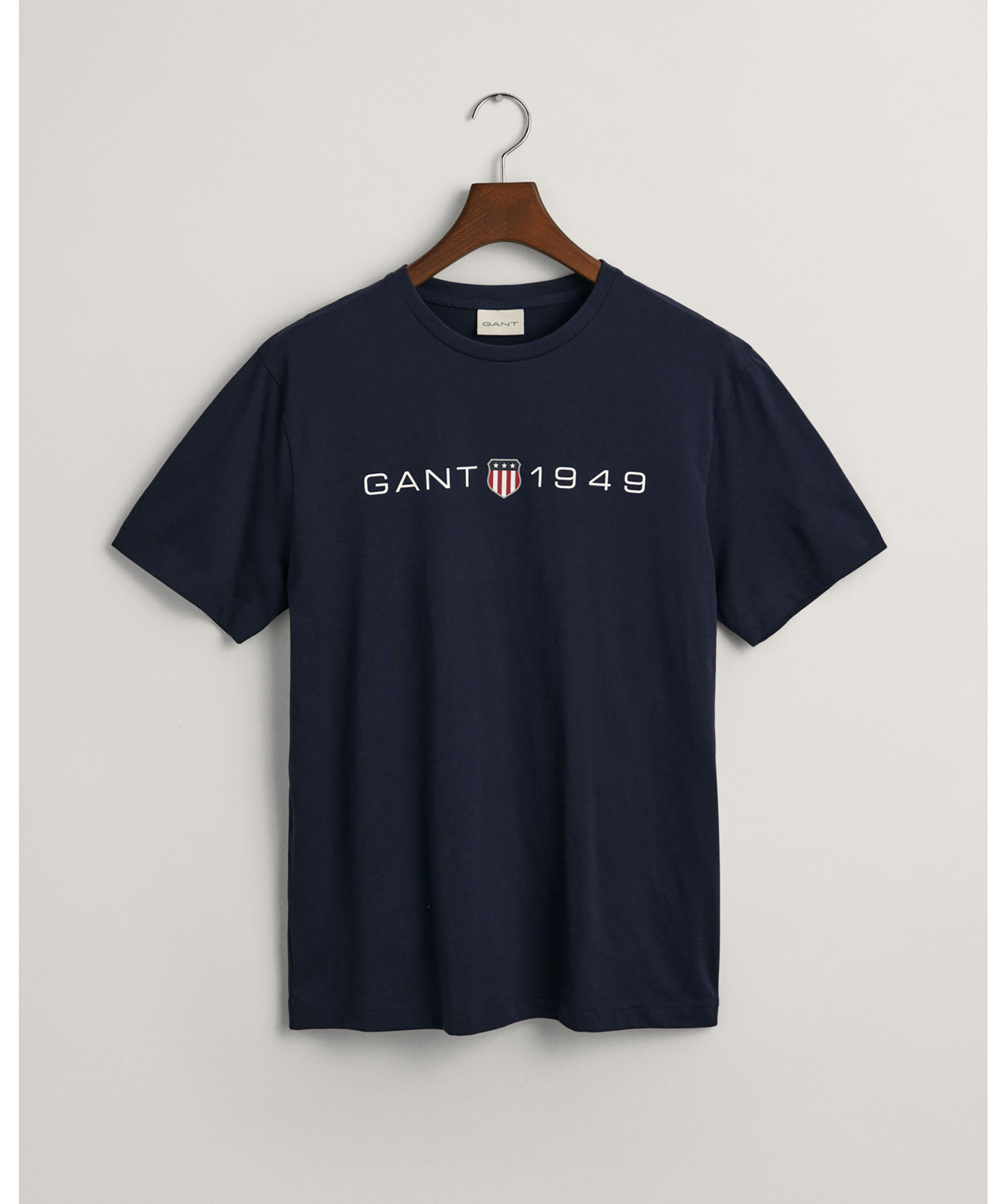 Svart T-shirt från Gant. Tryckt logotyp över bröstet. Rundad halsringning med ribbstickad kant. Tillverkad i 100% Bomull.