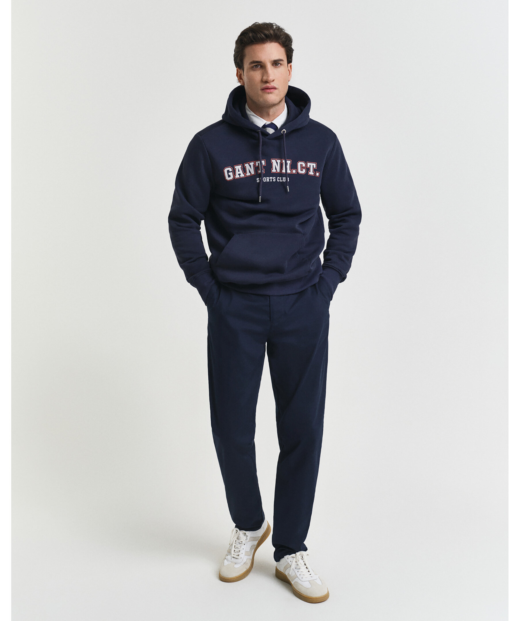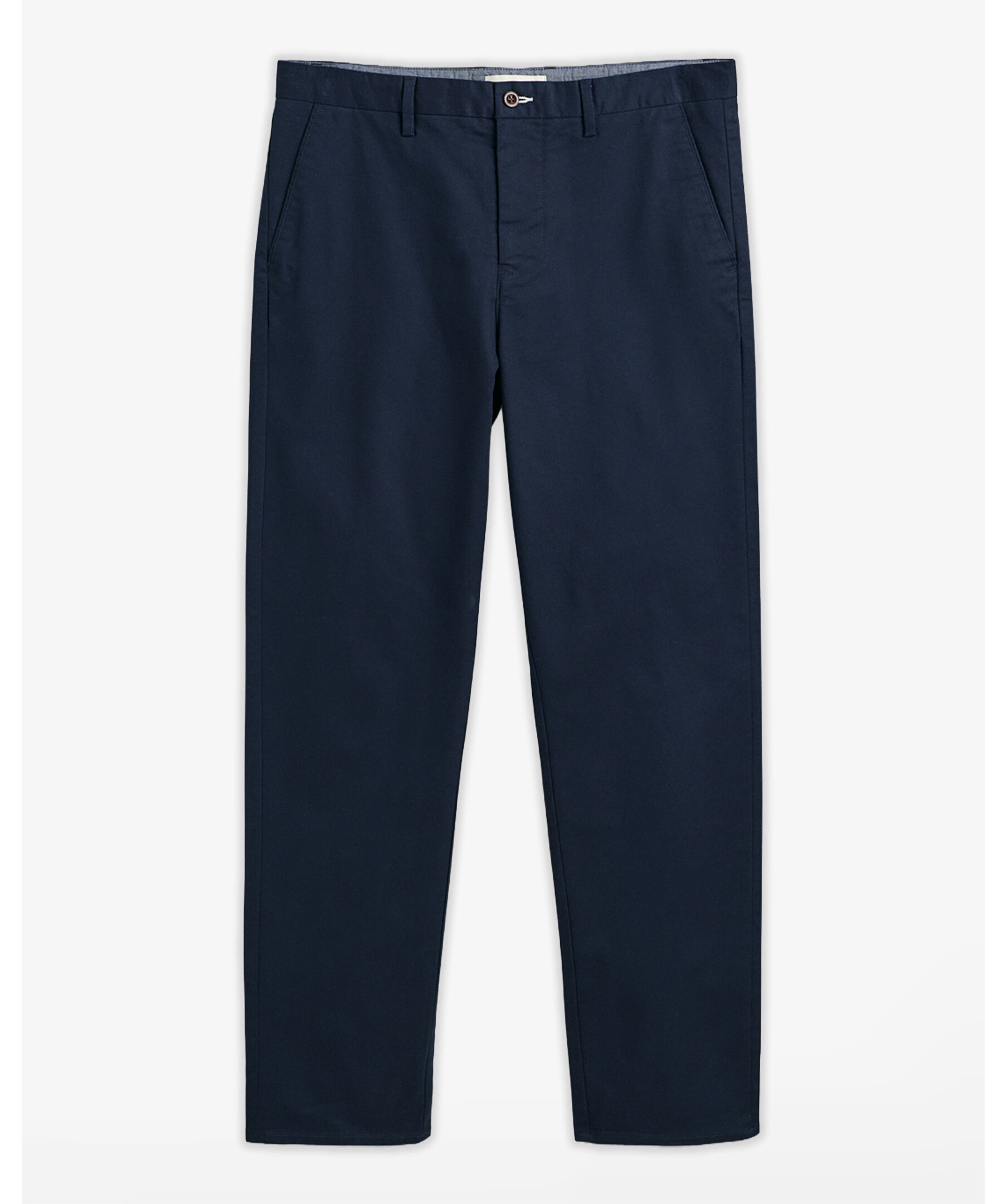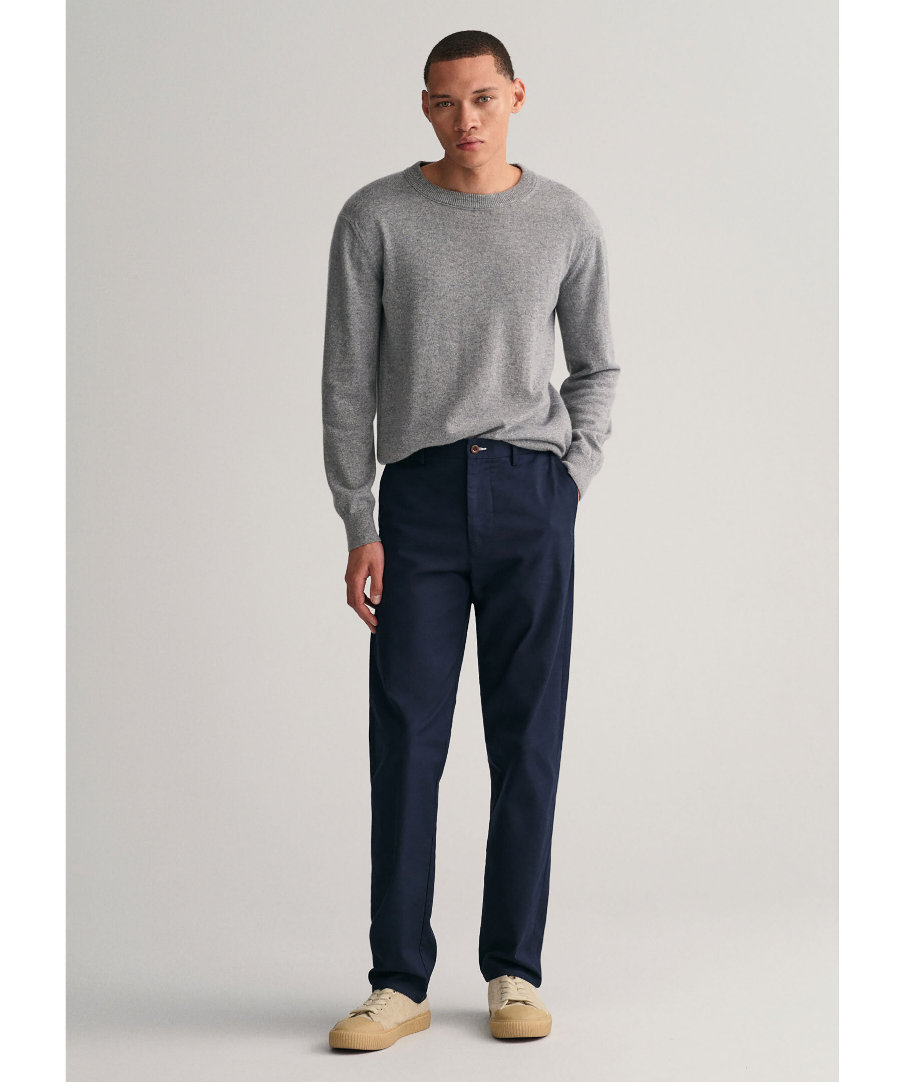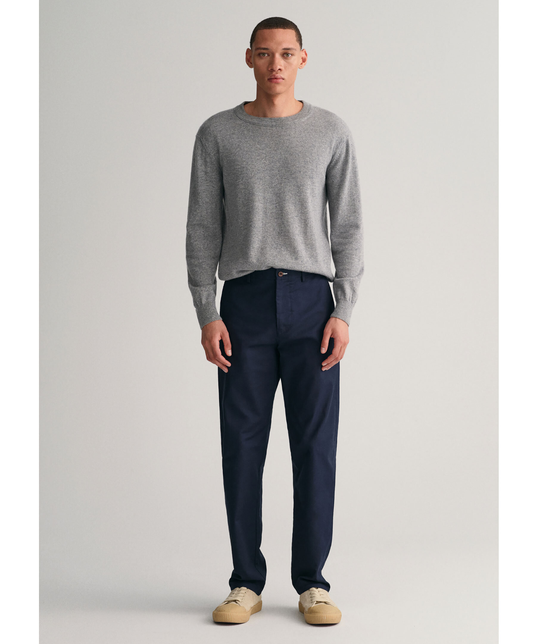 Marinblåa chinos från Gant. Byxorna har en mellanhög midja, två sidfickor, två bakfickor med knapp, bälteshällor i midjan och GANT-logotyp på höger passpoalficka. Tillverkad i en bomullsblandning.