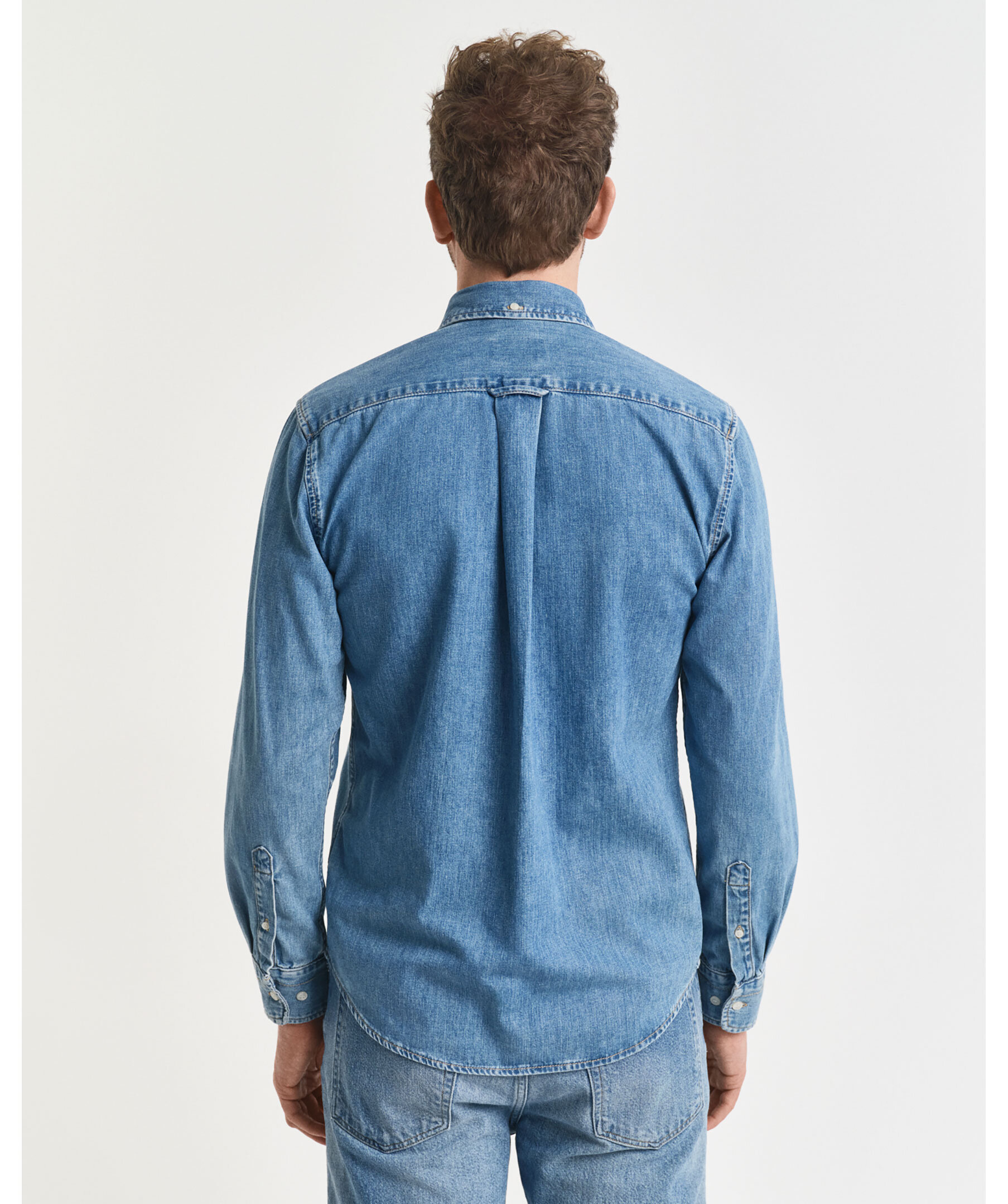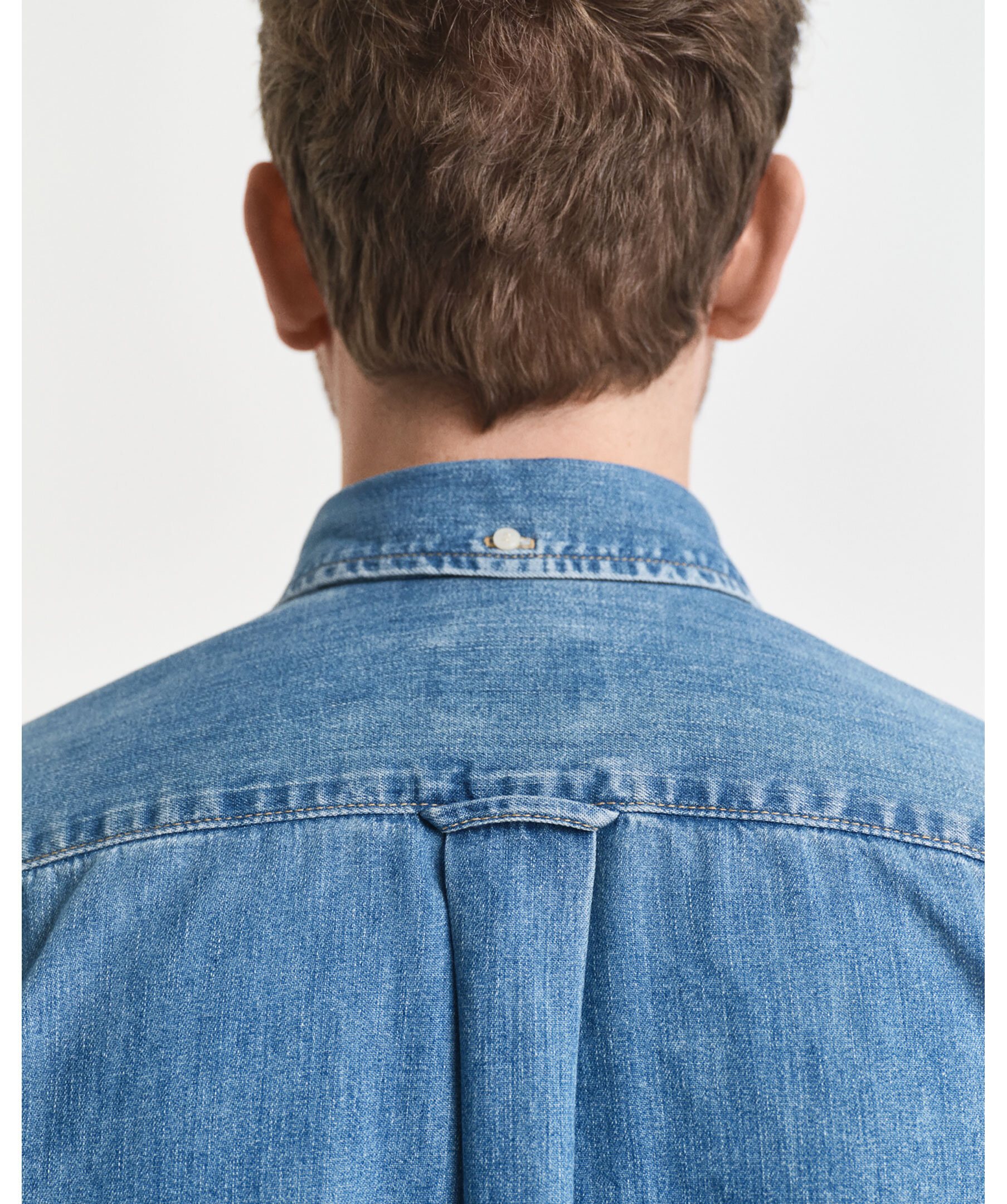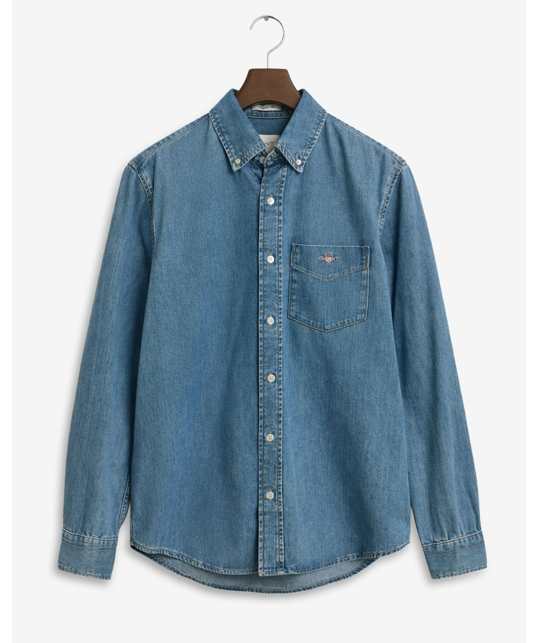 Blå jeansskjorta från Gant. Skjortan stängs med knappar och har en bröstficka med liten, broderad logotyp. Den har också justerbara manschetter och rundad fåll. Tillverkad i bomull med kraftig tvätt för en autentisk look.