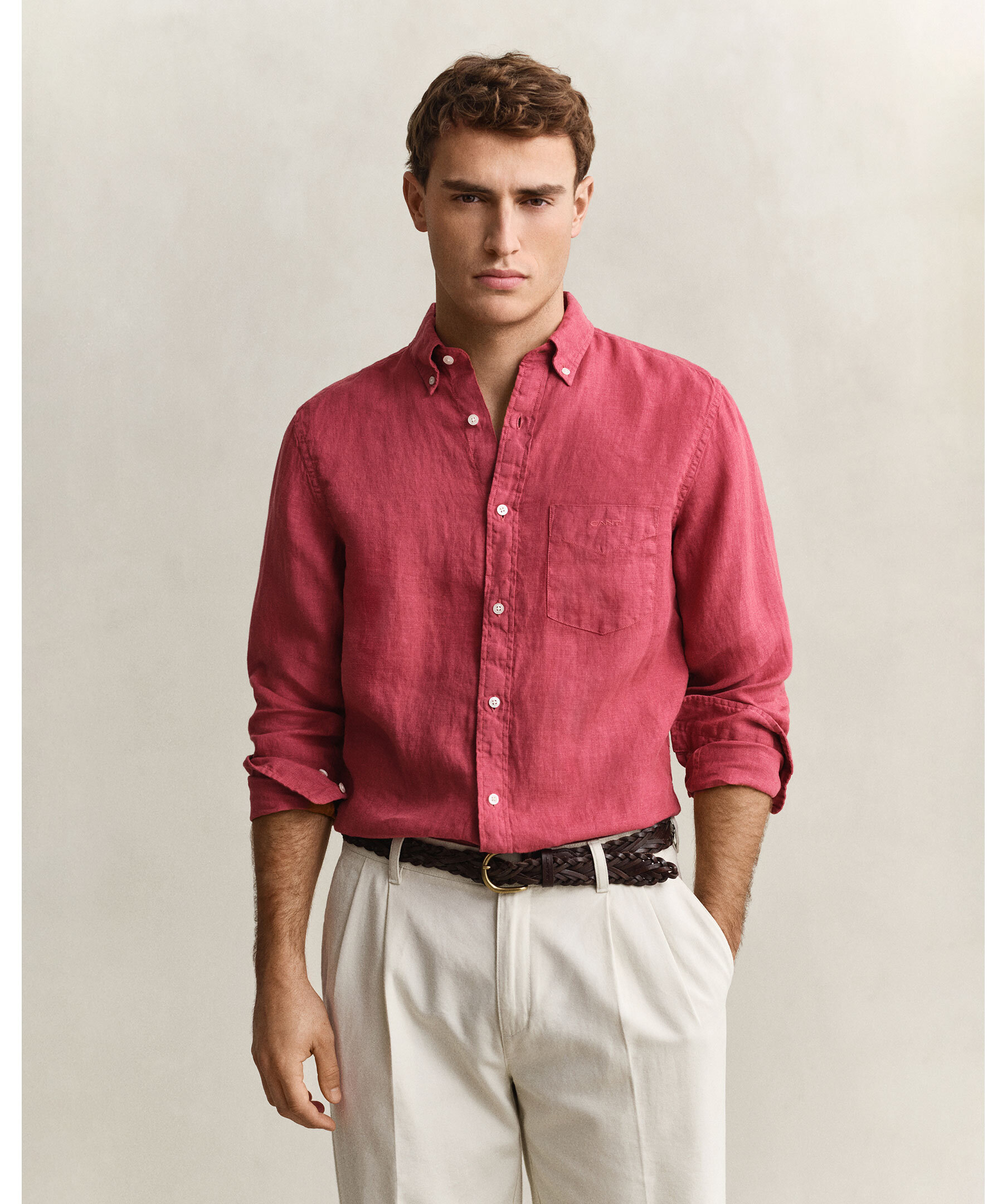 Linneskjorta i 100 % linne från Gant. Regular fit. Det luftiga och lätta materialet ger ett svalt och välklätt intryck, perfekt för avslappnade sommartillfällen. Skjortan är plaggfärgad för en fyllig ton och en ledig känsla, designad att bäras utanpå byxorna. Med button down-krage, rundad nederkant, bröstficka med broderad Gant-logotyp samt boxveck och locker loop bak.