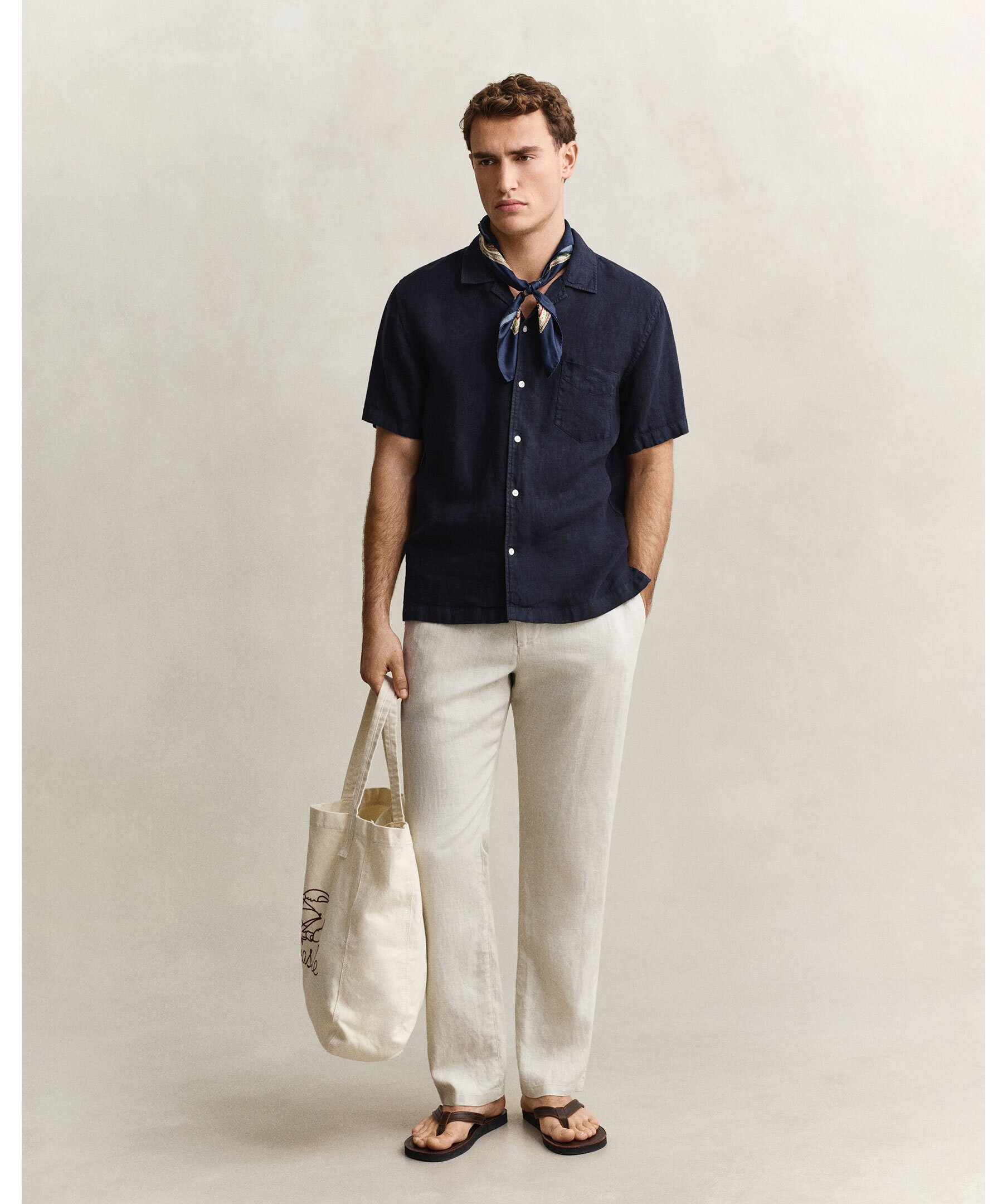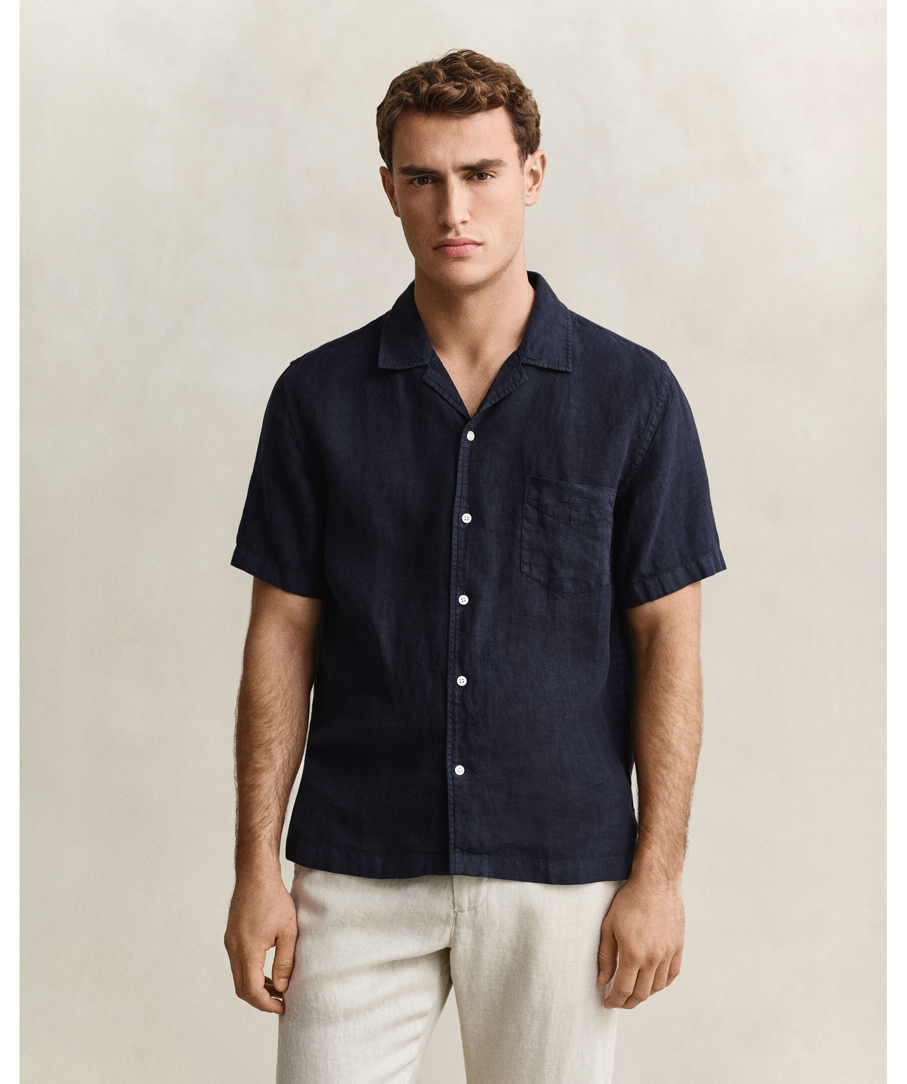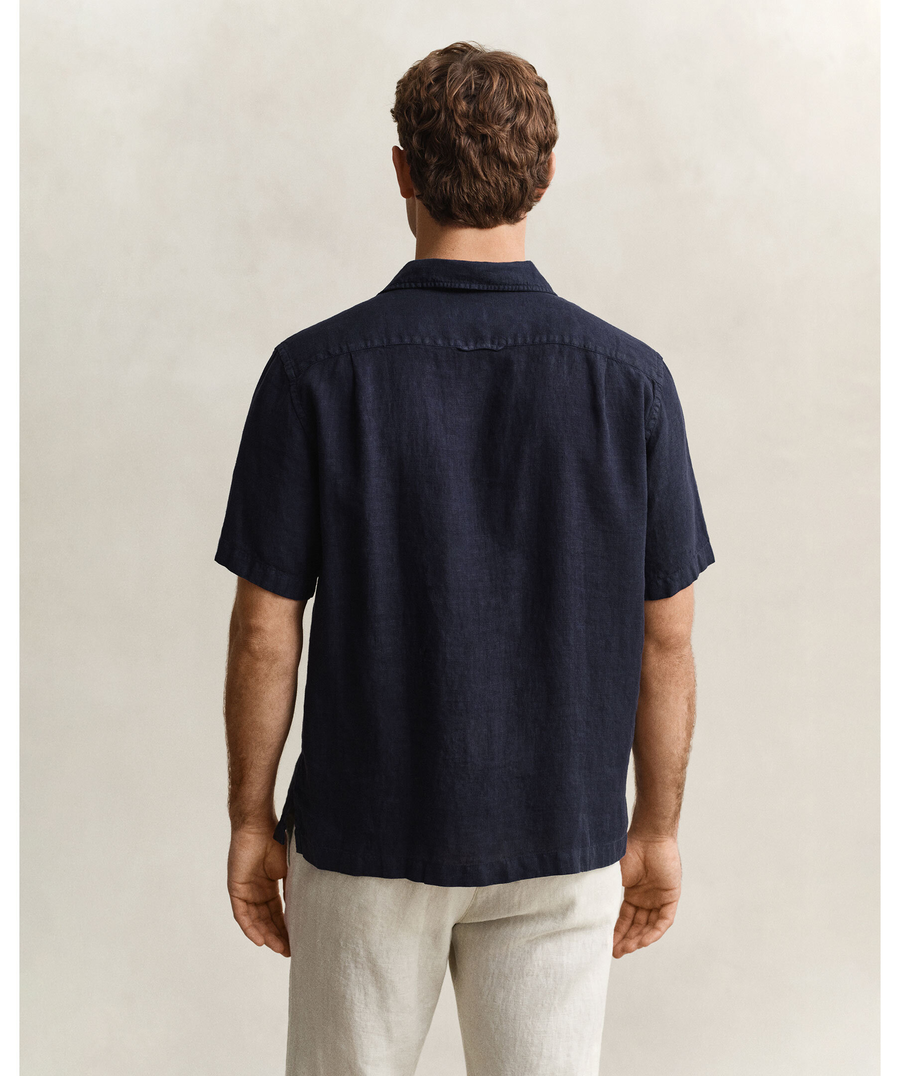 Marinblå, kortärmad linneskjorta från Gant.