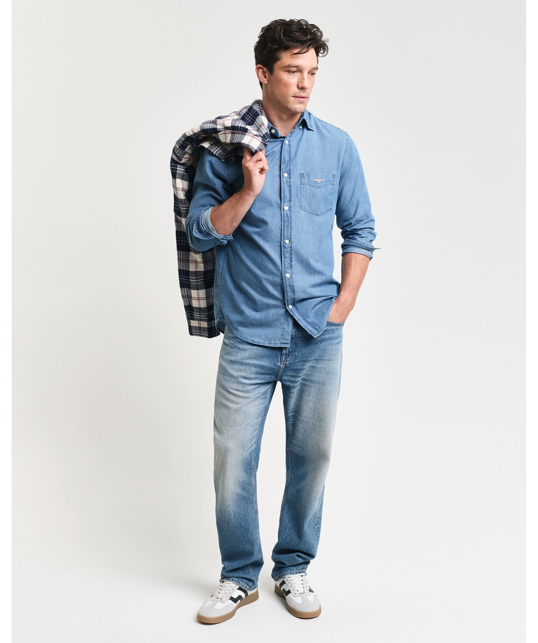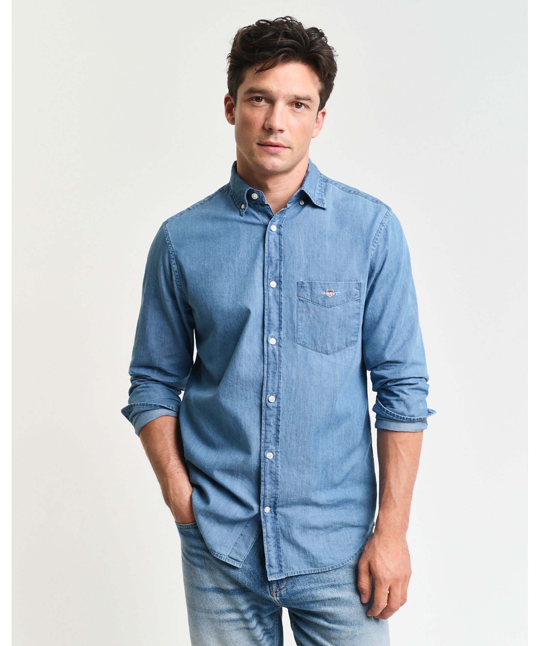 Blå jeansskjorta från Gant. Skjortan har button-down krage, en bröstficka med broderad logotyp samt boxpleat med deras klassiska locker loop i ryggen. Tillverkad i bomull.