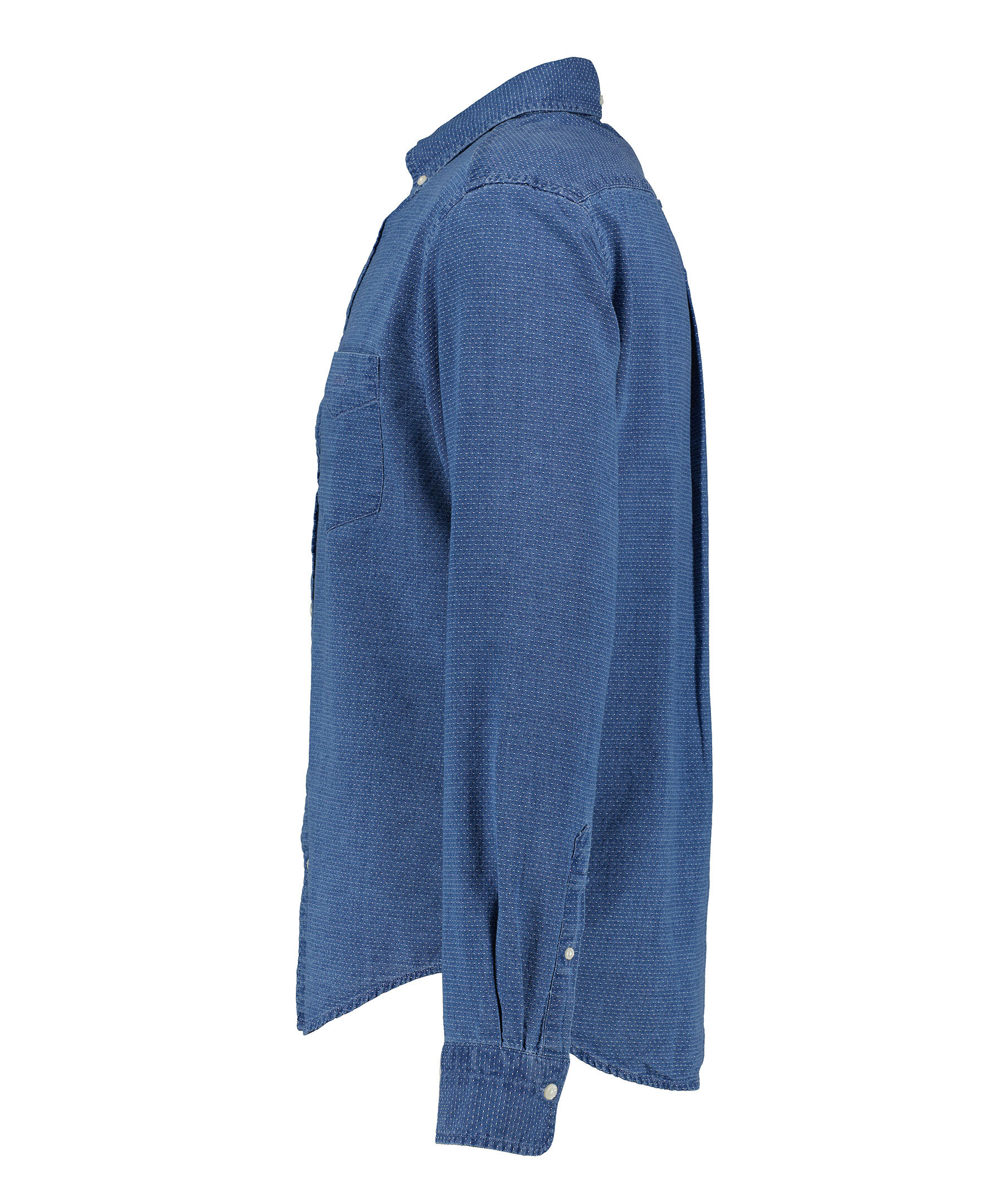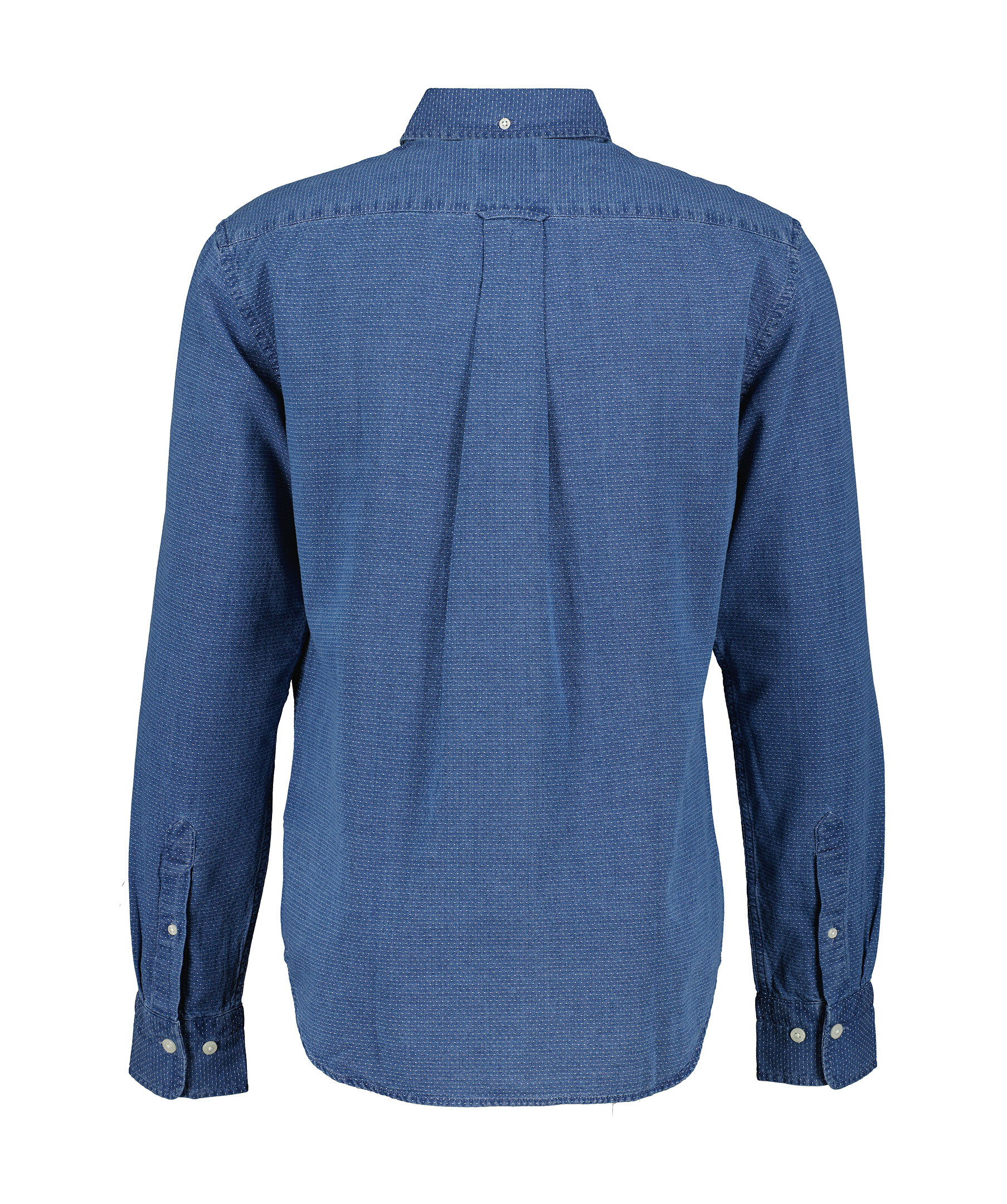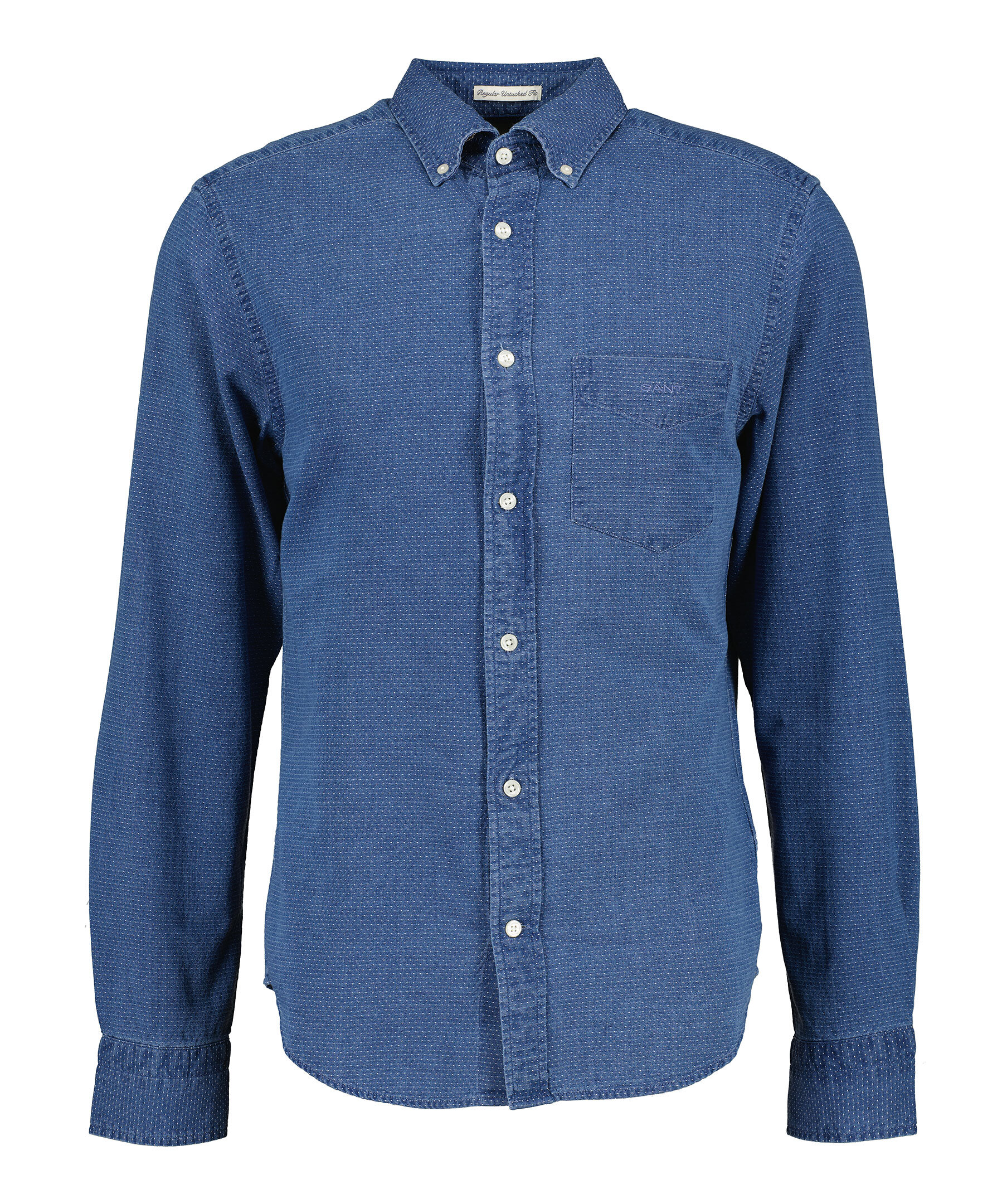 Indigofärgad, prickig skjorta från Gant. Buttondown krage samt en bröstficka. Tillverkad i 100% bomull. Normal passform.