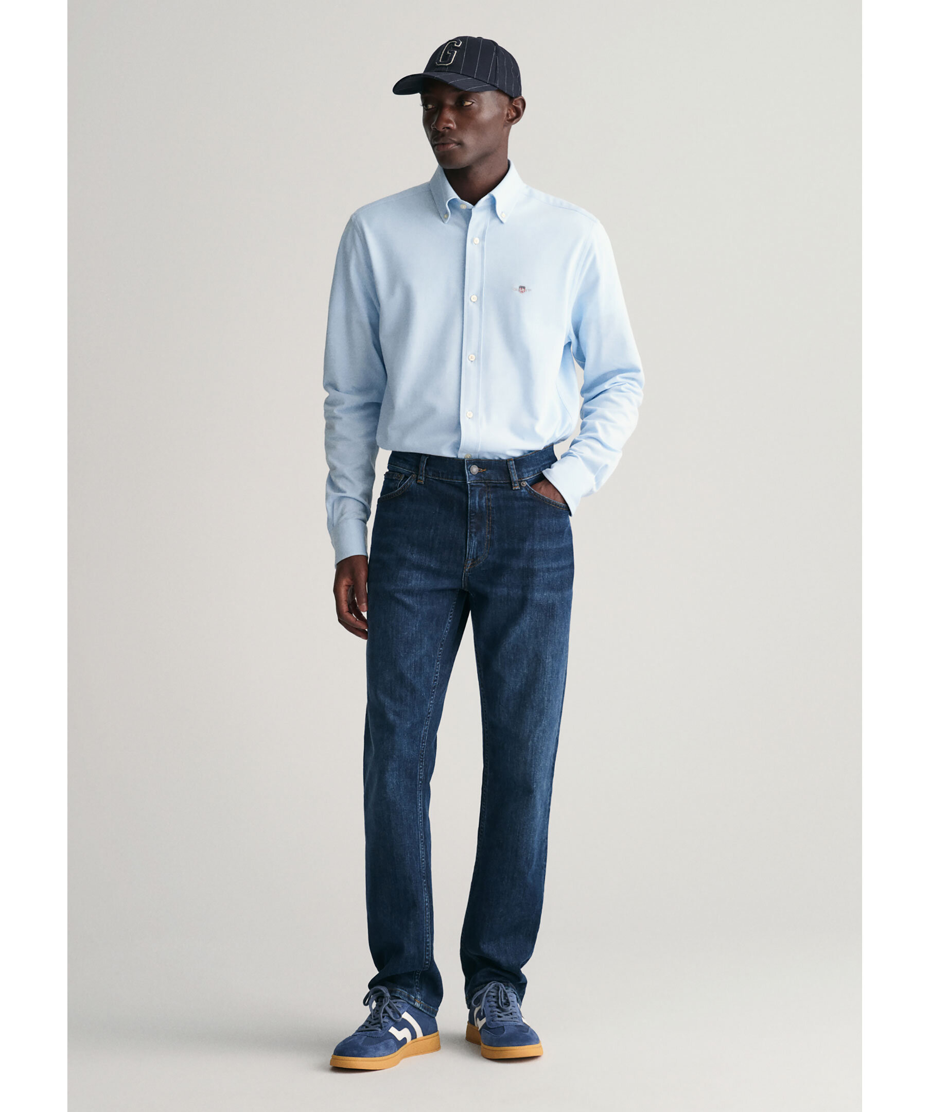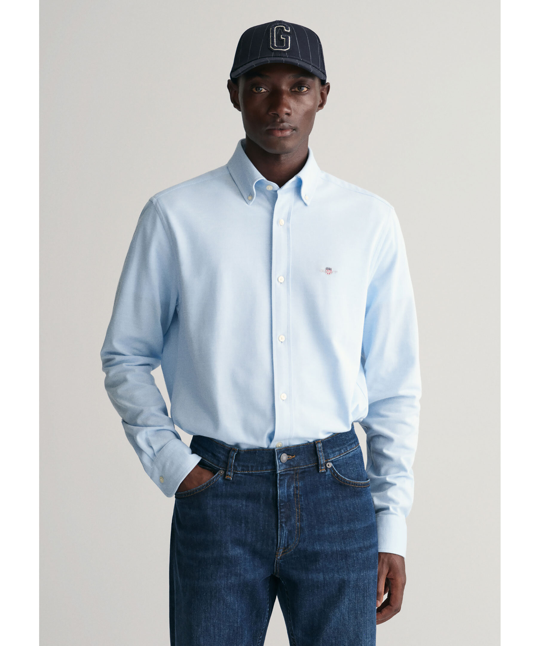 Ljusblå skjorta i pikéväv gjord i 100% bomull från GANT. Skjortan har button down-krage och broderad logotyp på bröstet.