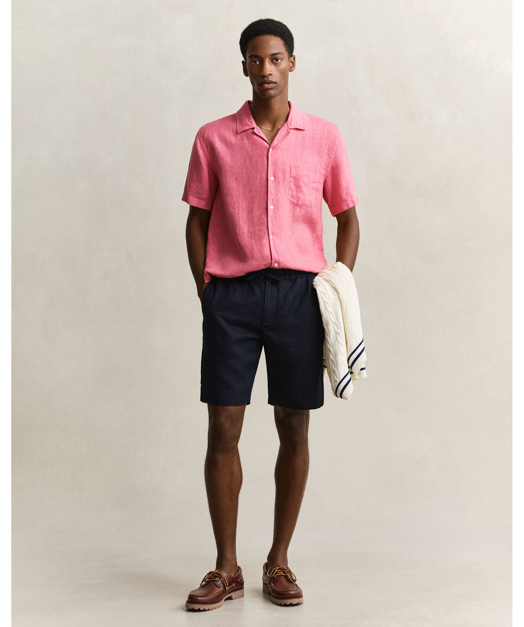 Marinblå linneshorts från Gant.