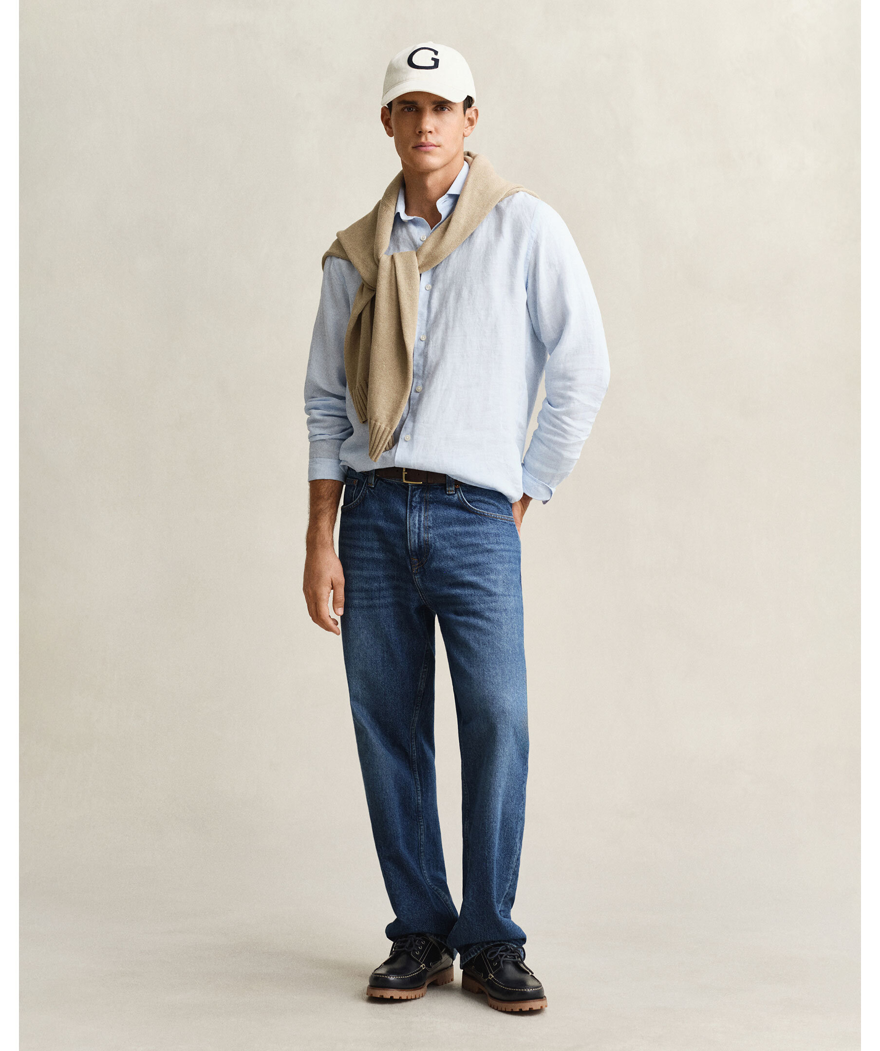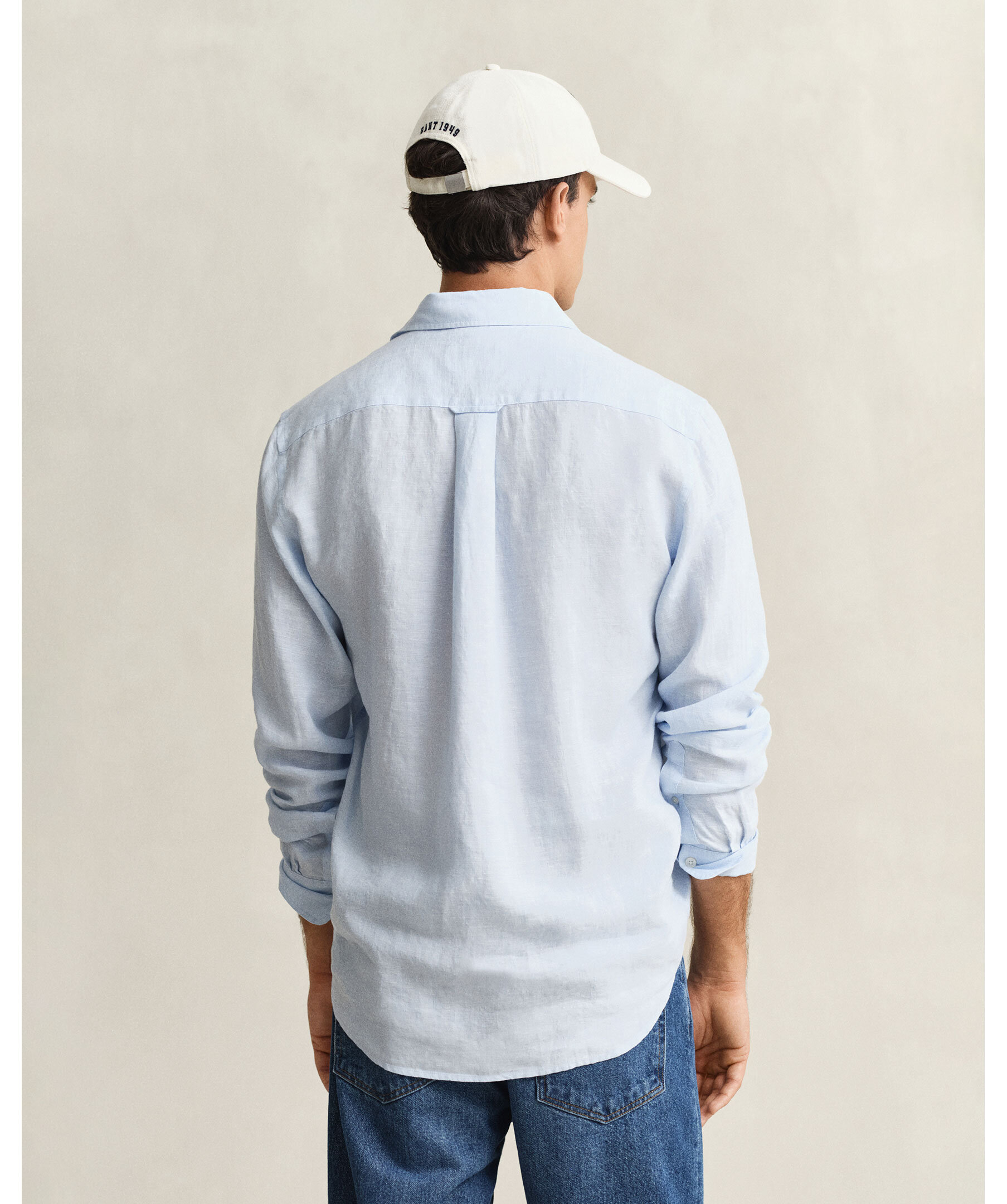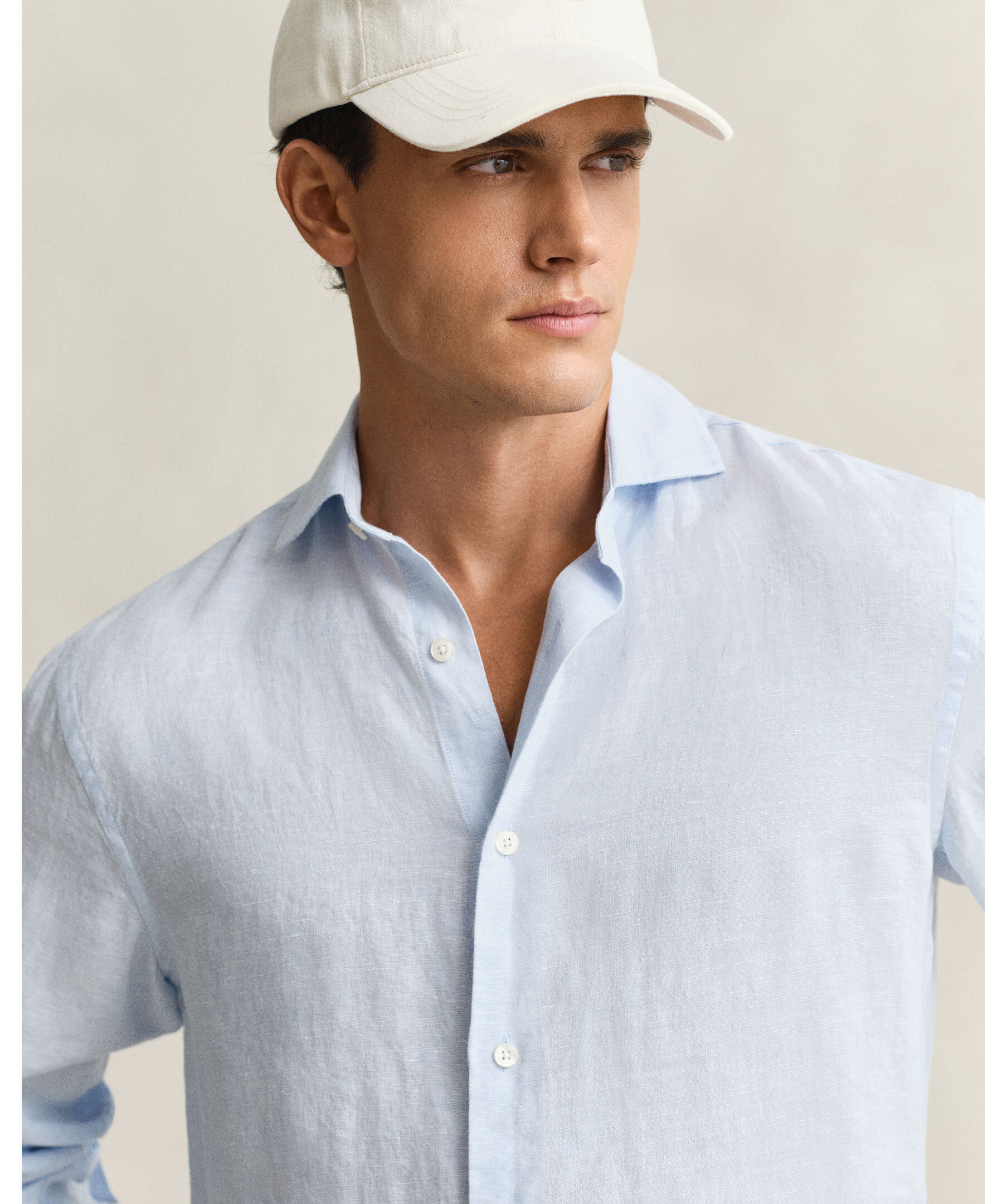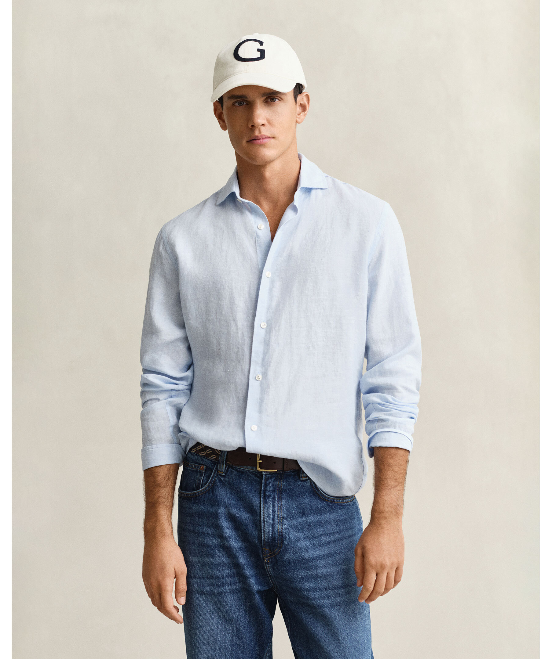 Skjorta från Gant i linne – ett naturligt luftigt och lätt material med krispig finish, perfekt för smart casual. Regular fit med cut away-krage, rundad nederkant och justerbara manschetter. Detaljer som knappar i återvunnen polyester, brodyr på ärmen samt boxveck och Gants signatur-locker loop bak.