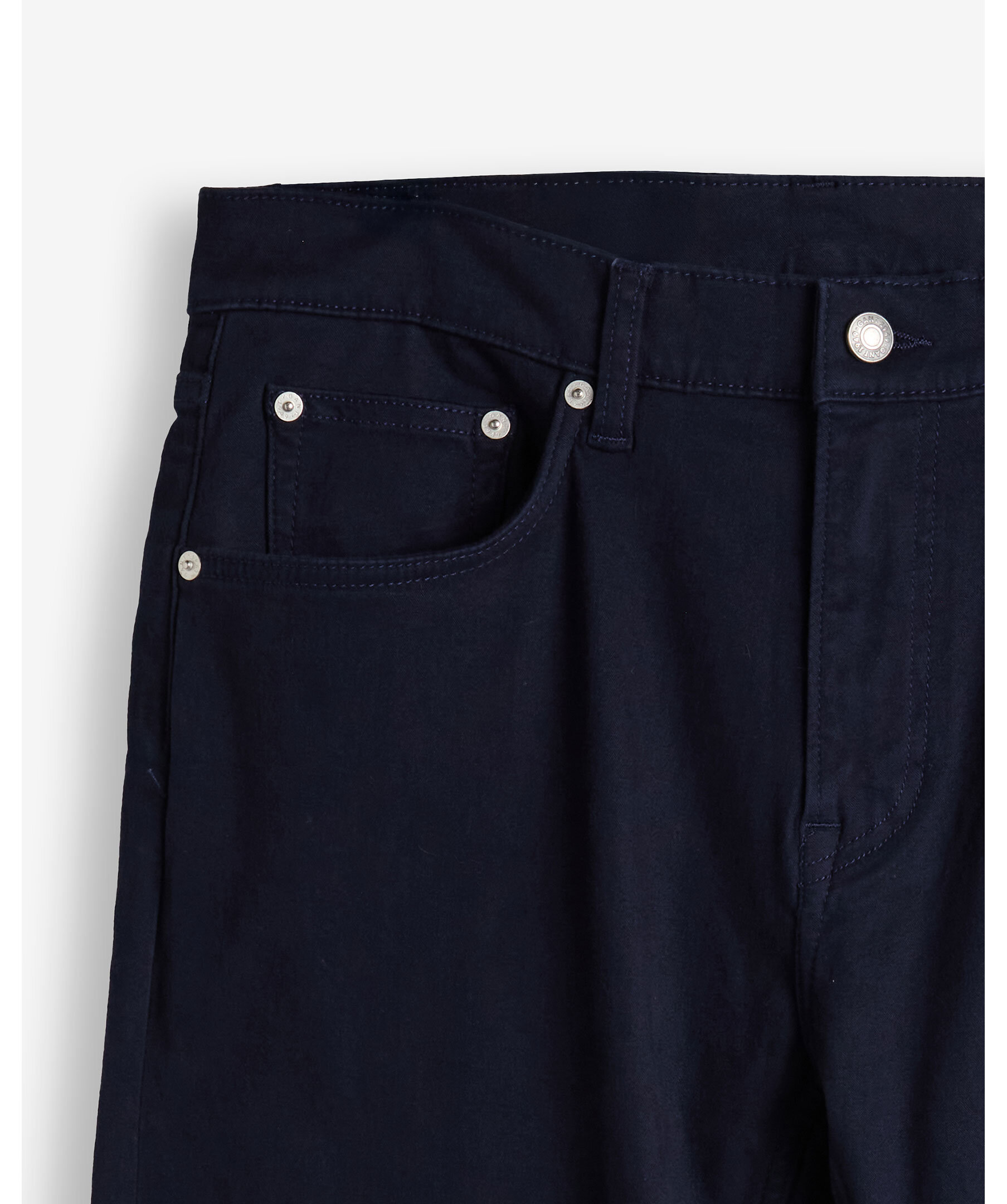 Mörkblåa byxor från GANT – tillverkade i en stretchig bomullsblandning som ger både komfort och rörelsefrihet. Byxorna har en klassisk femficksmodell, dragkedjegylf och en patch med logotyp vid linningen för en subtil detalj. Den avsmalnande passformen och normalhöga midjan ger en modern siluett som passar till både vardag och mer uppklädda tillfällen.