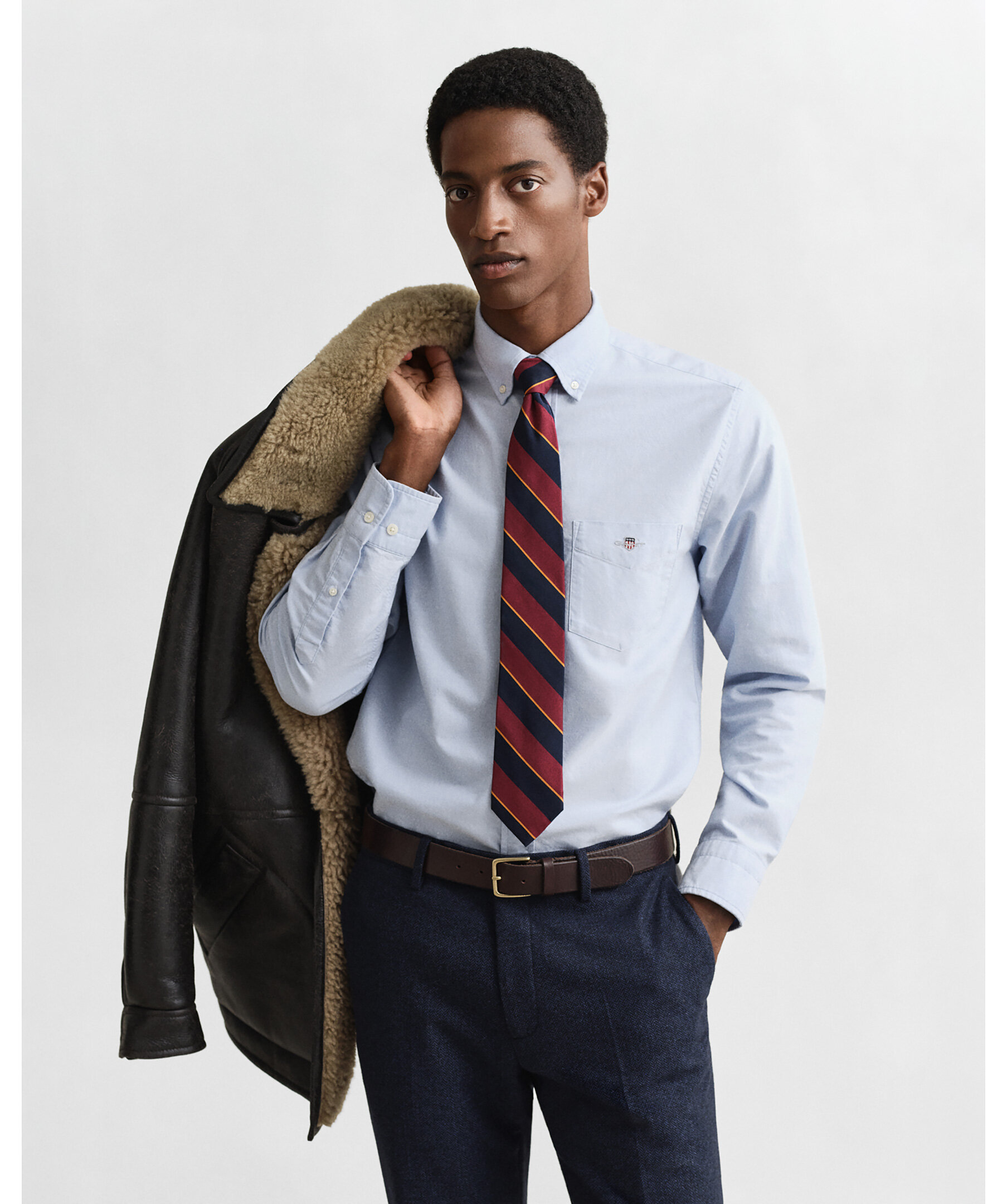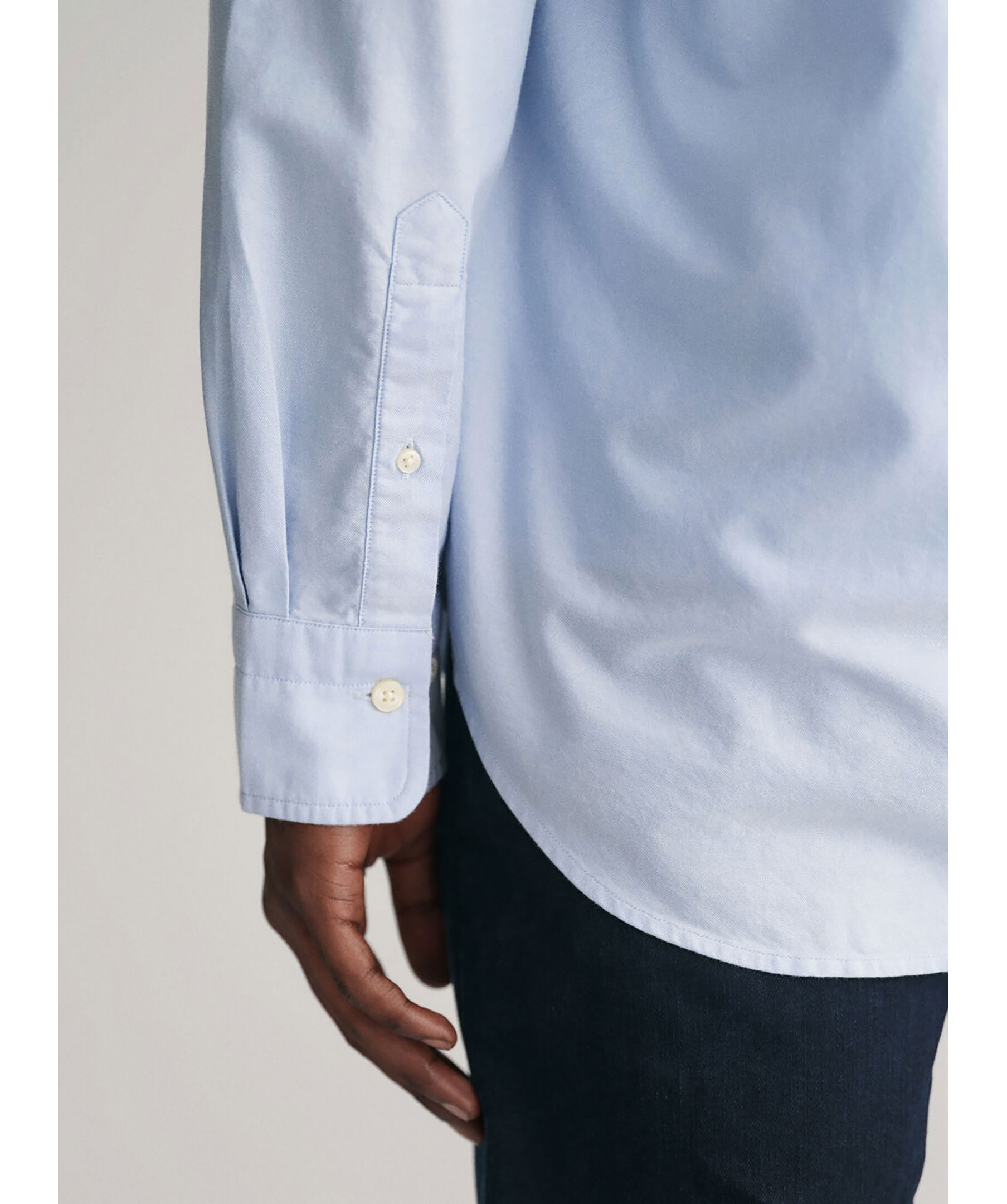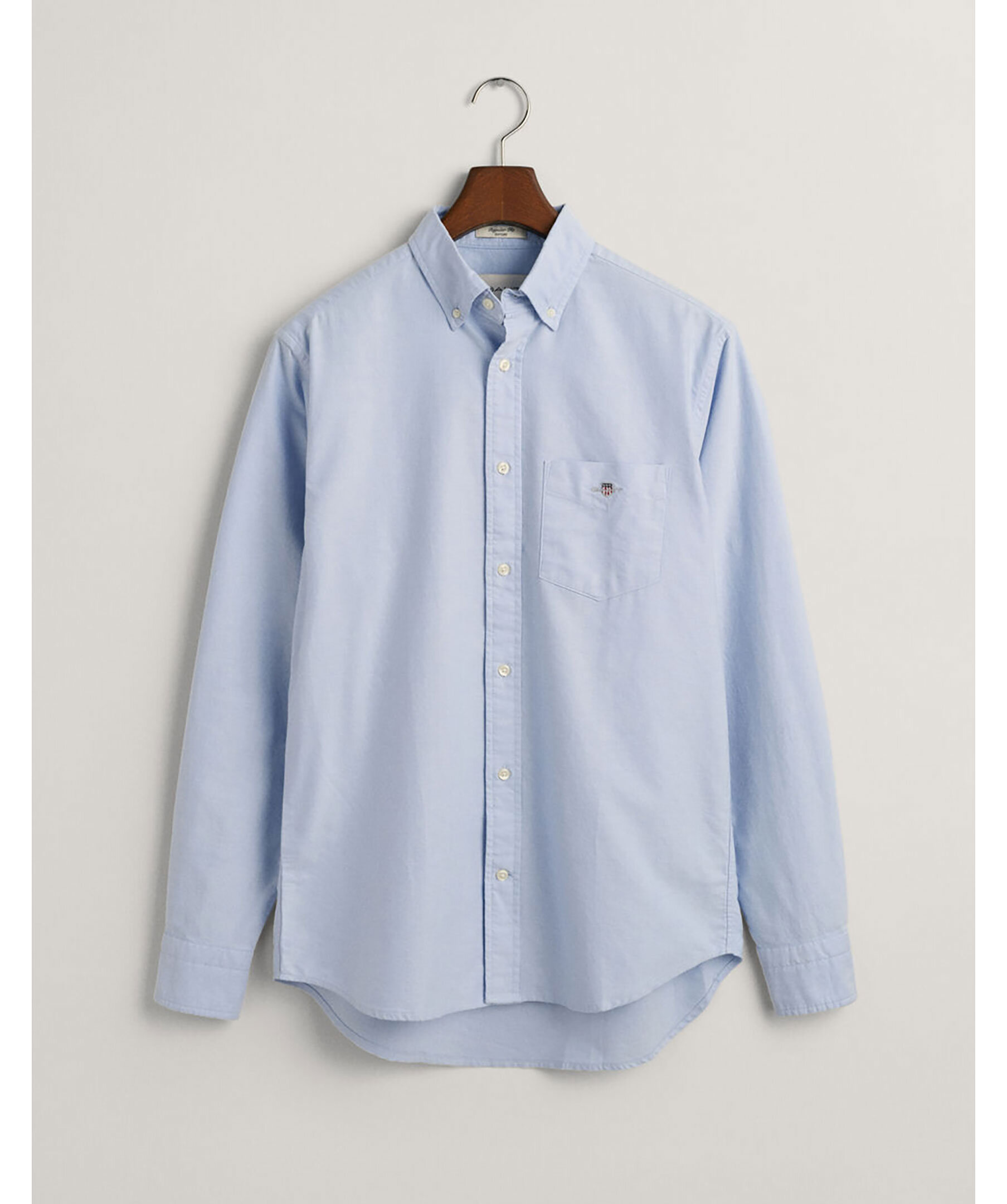 Ljusblå oxfordskjorta i slitstark bomull från Gant. Skjortan har en 80-talsinspirerad sköldlogotyp med retrokänsla på bröstfickan. Skjortan har button down-krage och rundad fåll och är perfekt för businessgarderoben. Boxpleat med locker loop i ryggen och justerbara manschetter.