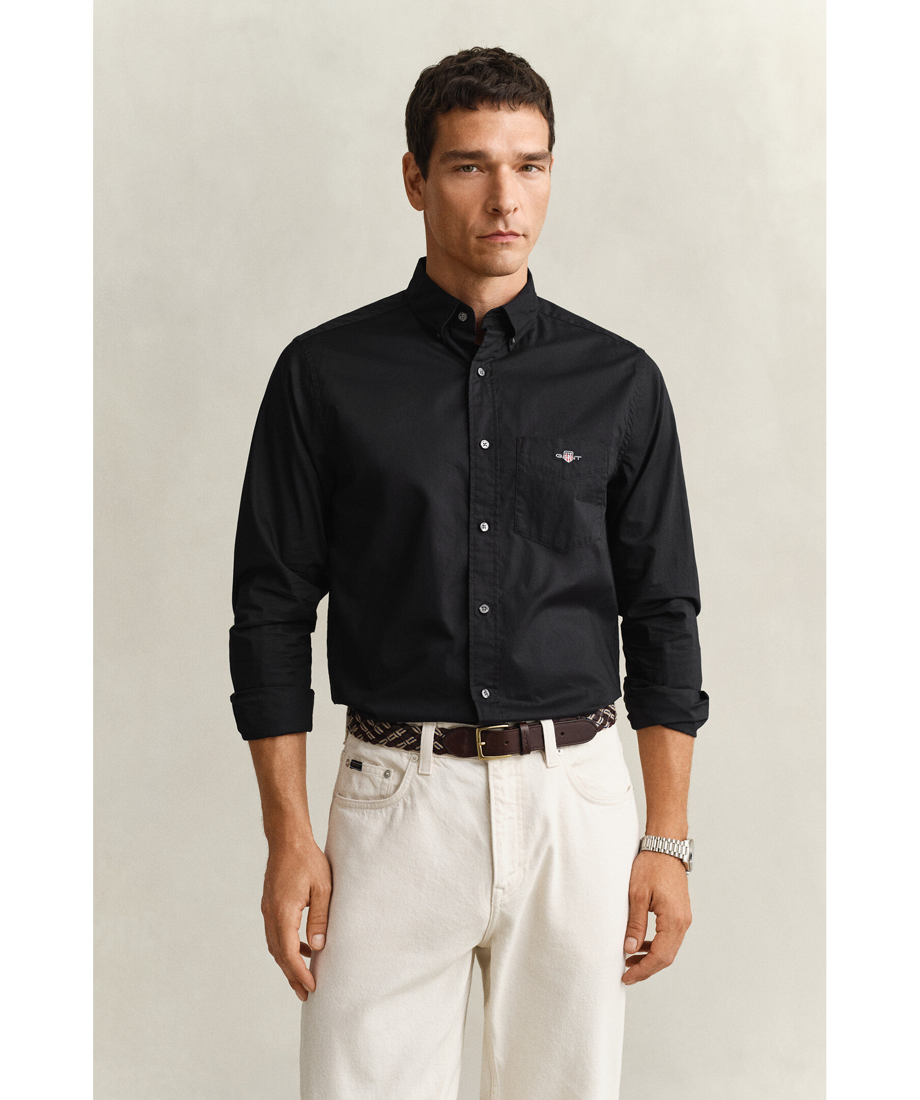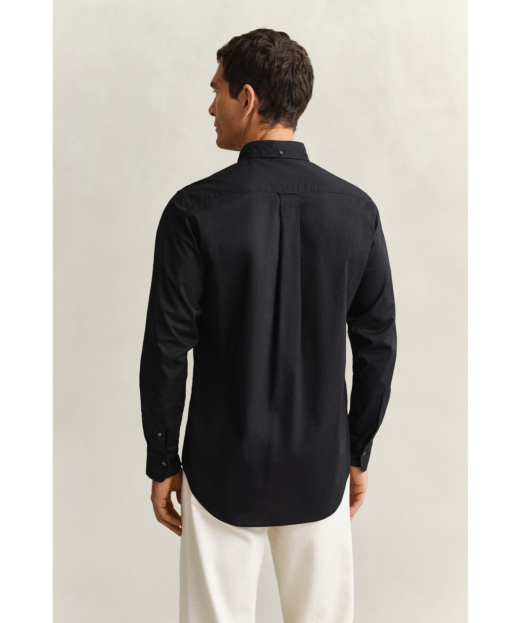 Svart skjorta från Gant. Skjortan har button down krage, boxpleat med locker loop i ryggen, en bröstficka med broderad Gant-logotyp. Tillverkad i en slitstark poplinväv.