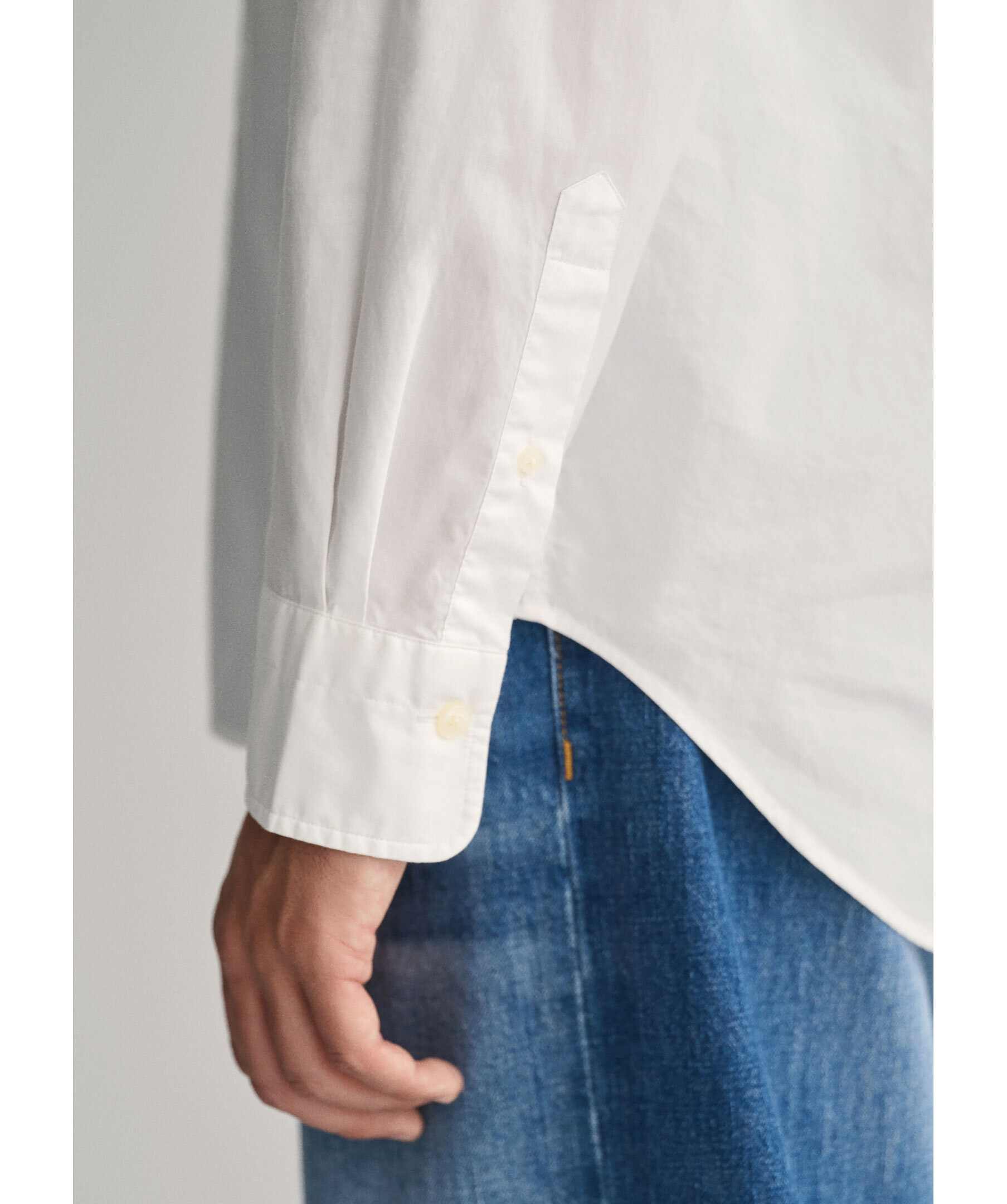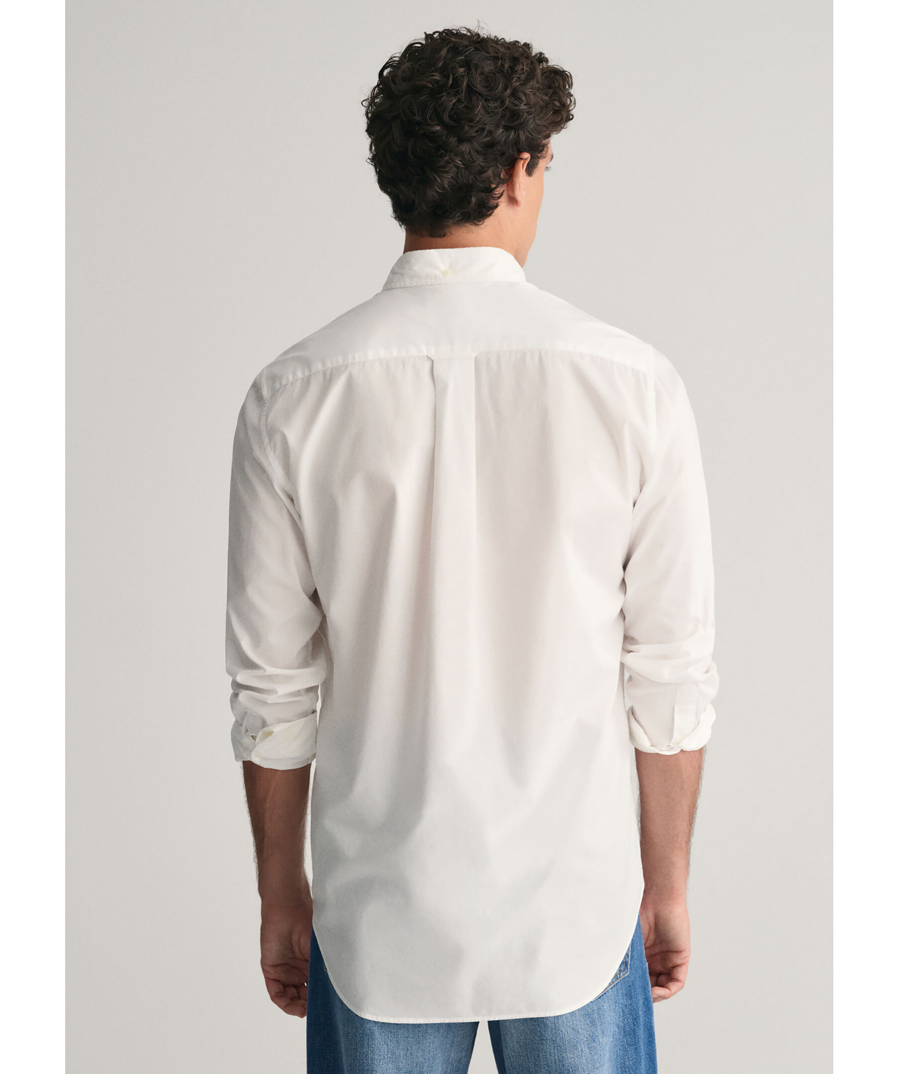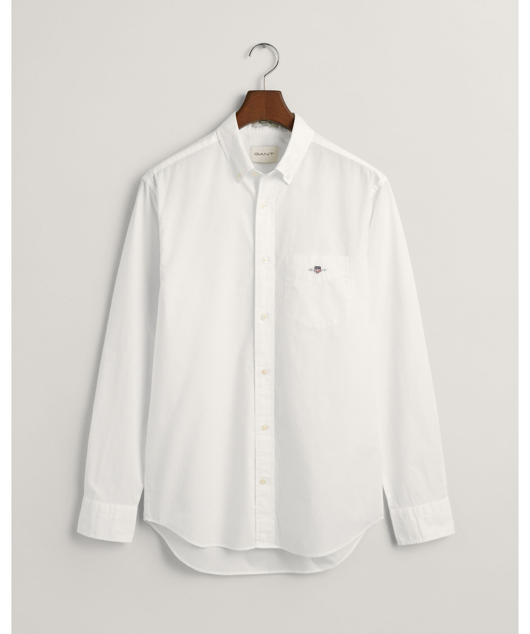 Vit skjorta från Gant. Skjortan har button down krage, boxpleat med locker loop i ryggen, en bröstficka med broderad Gant-logotyp. Tillverkad i en slitstark poplinväv.