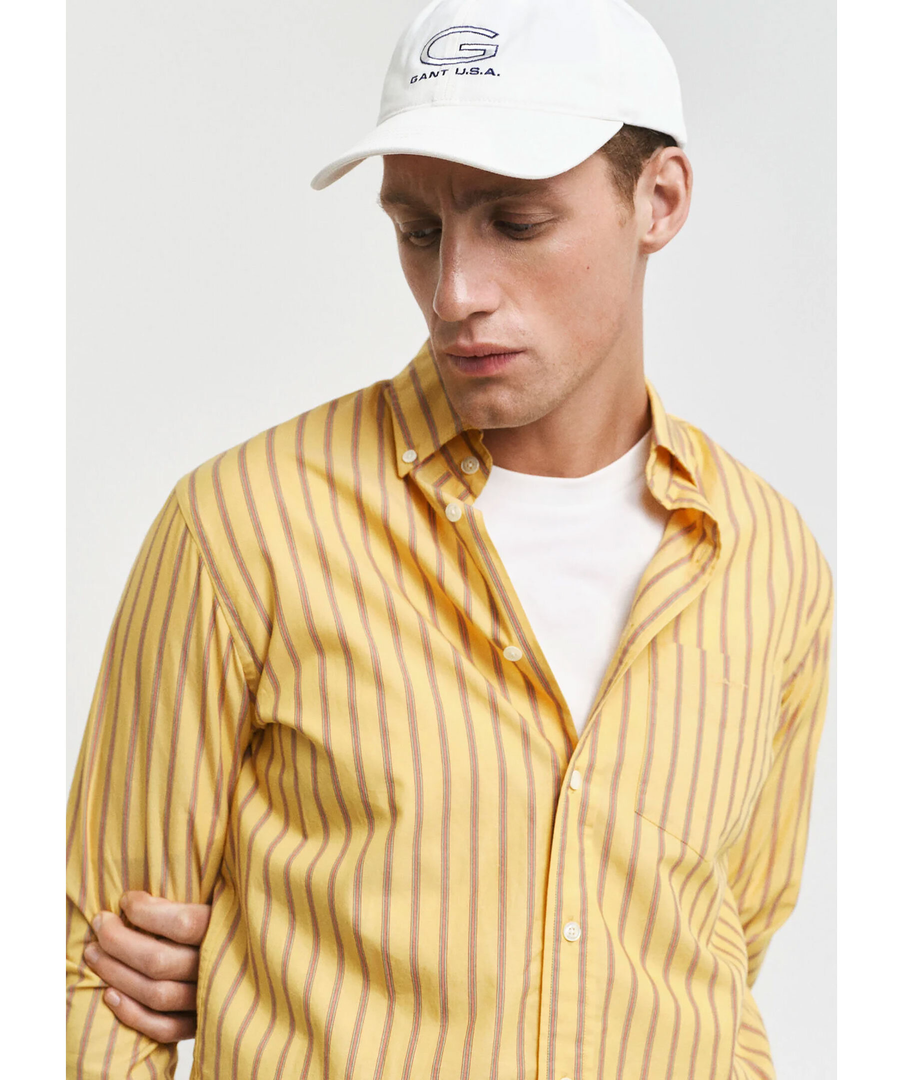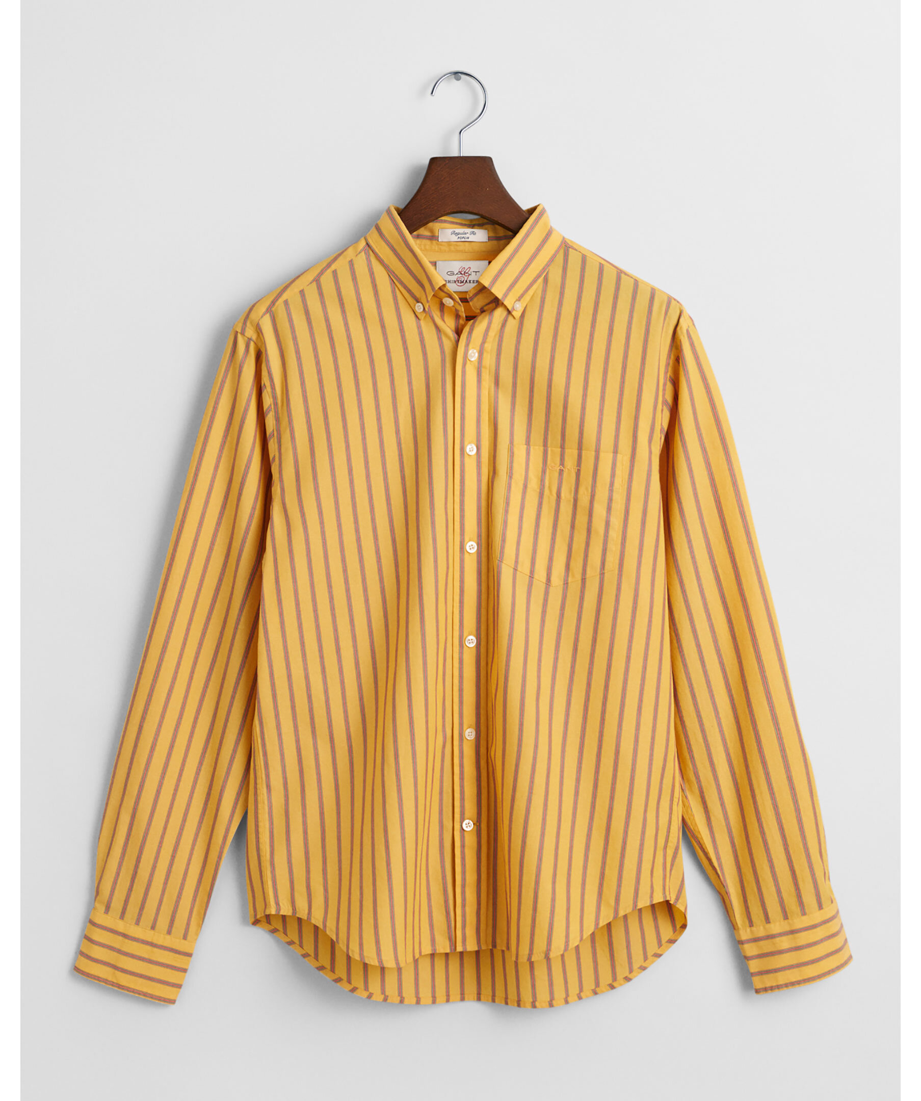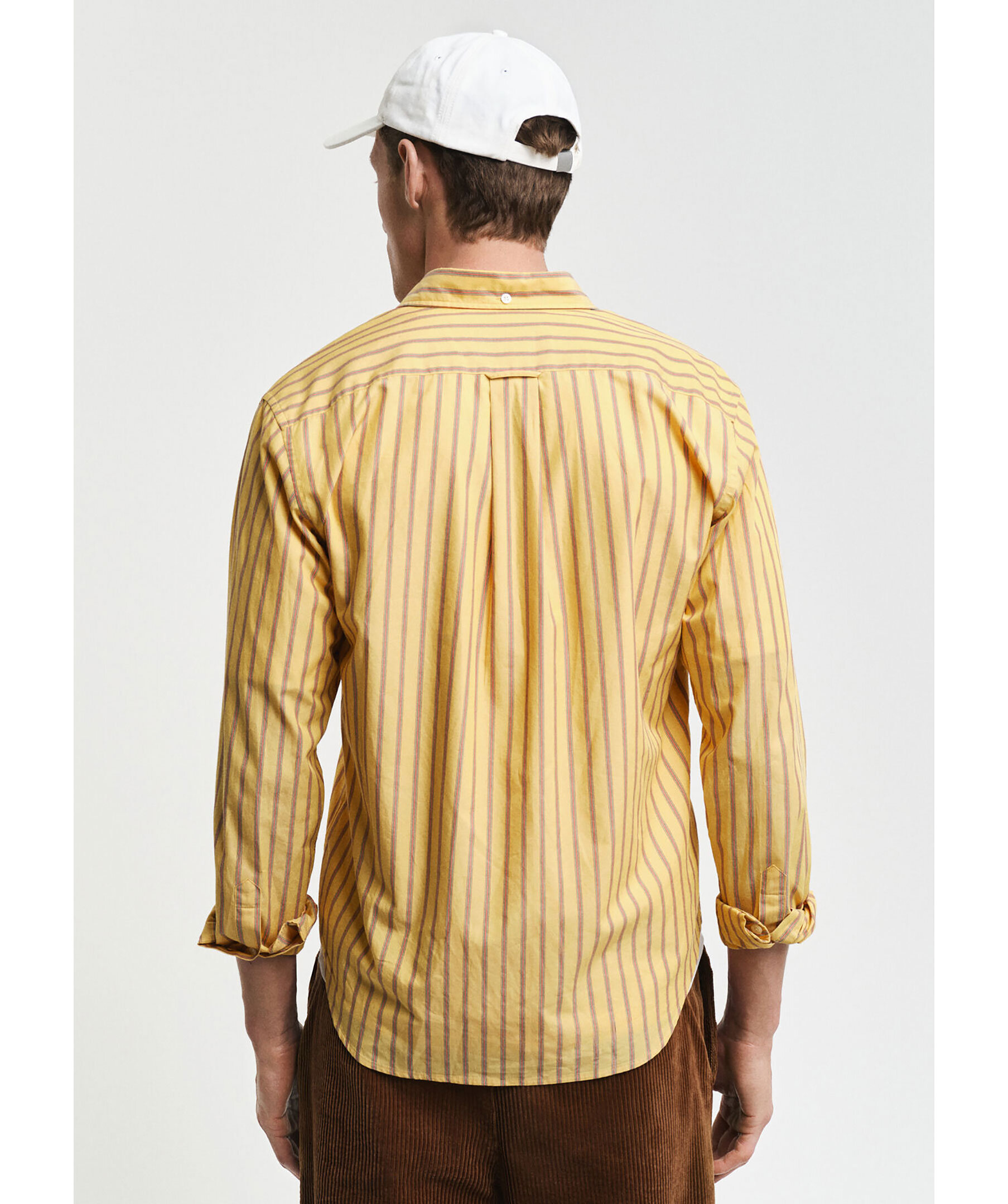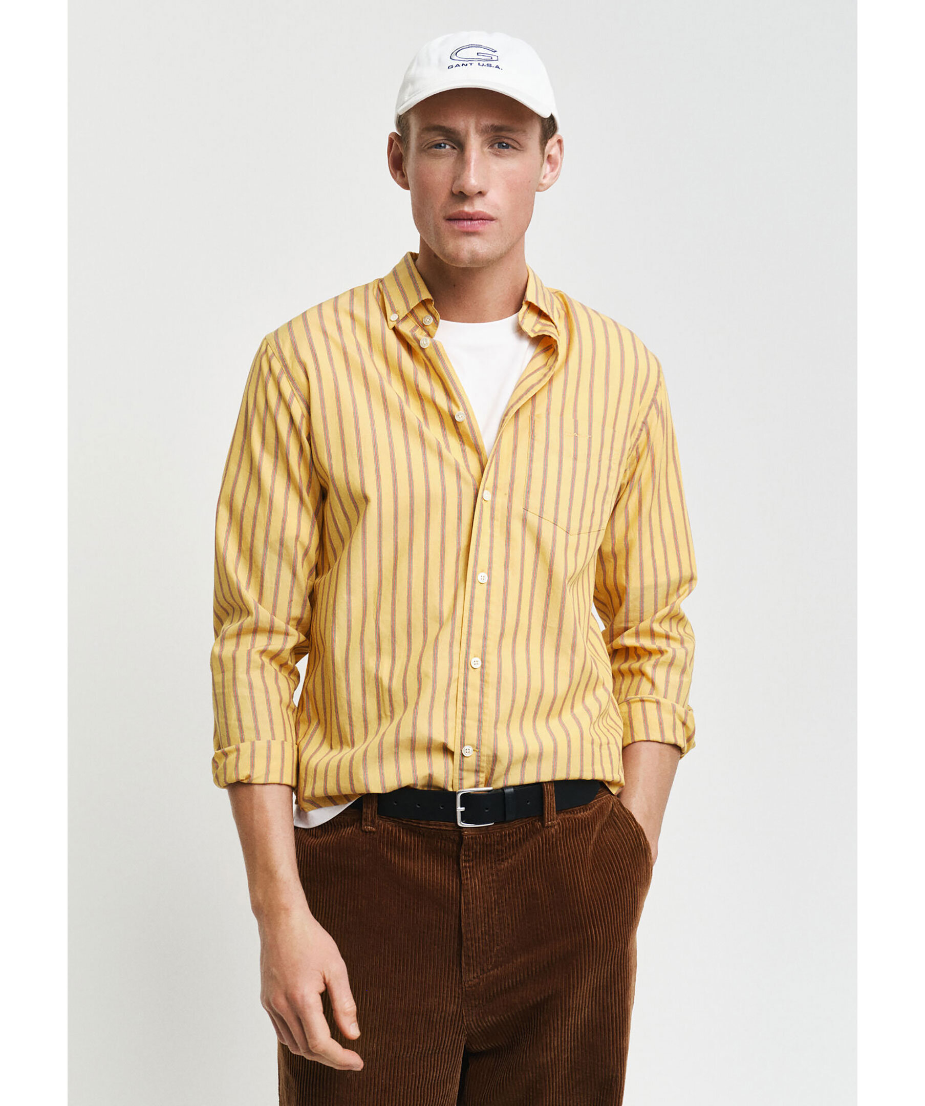 Gul, randig skjorta från Gant. Skjortan är inspirerad av vintageplagg från GANT och har garnfärgade ränder, button-down krage, rundad fåll, justerbara manschetter, boxpleat med locker loop i ryggen samt broderad logotyp på bröstfickan. Tillverkad i bomull.