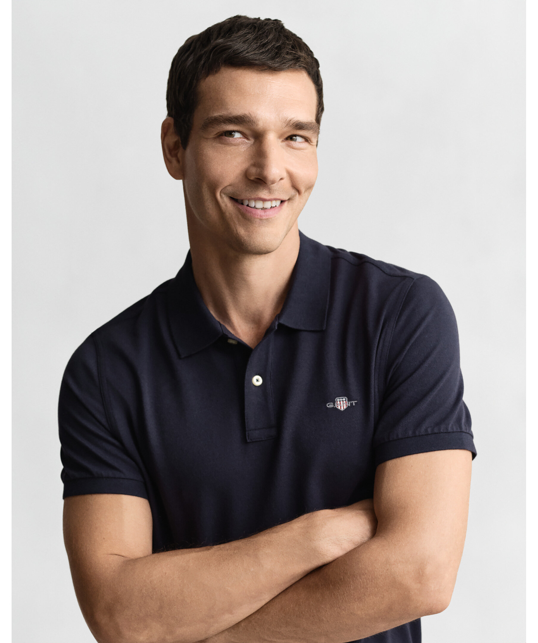 Mörkblå pikétröja från Gant. Tillverkad i 100% bomull. Broderad logga på bröstet, normal passform. Slätstickad krage. Korta sidosprund.