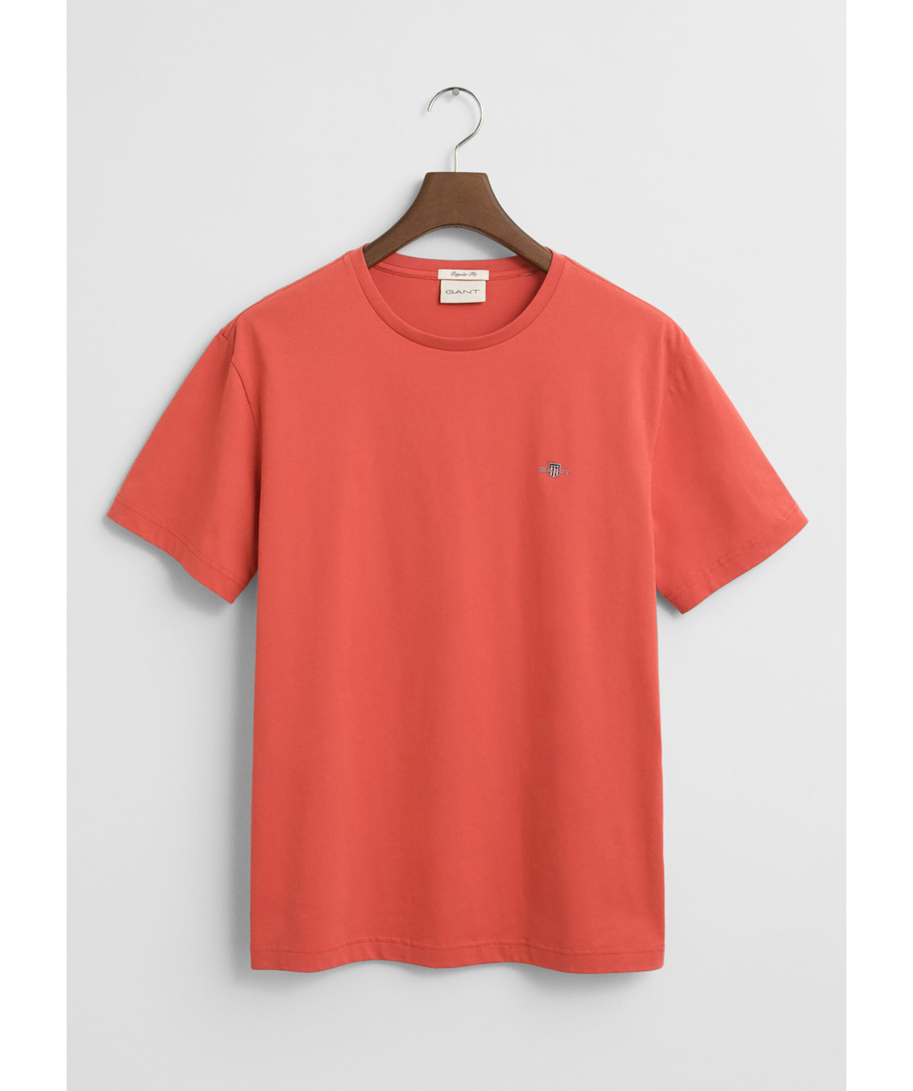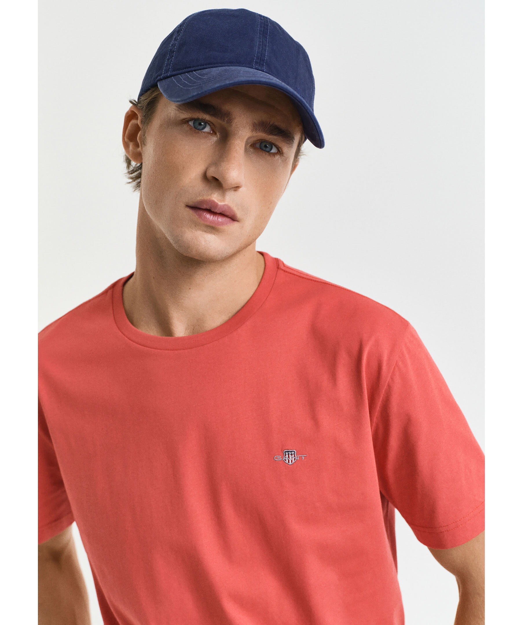 Röd T-shirt från Gant. T-shirten har ribbad rund krage, liten broderad logotyp på vänster bröst och är tillverkad av 100% bomull.