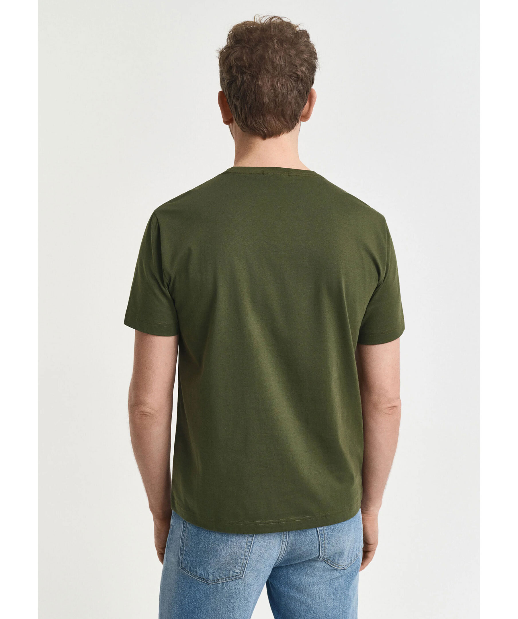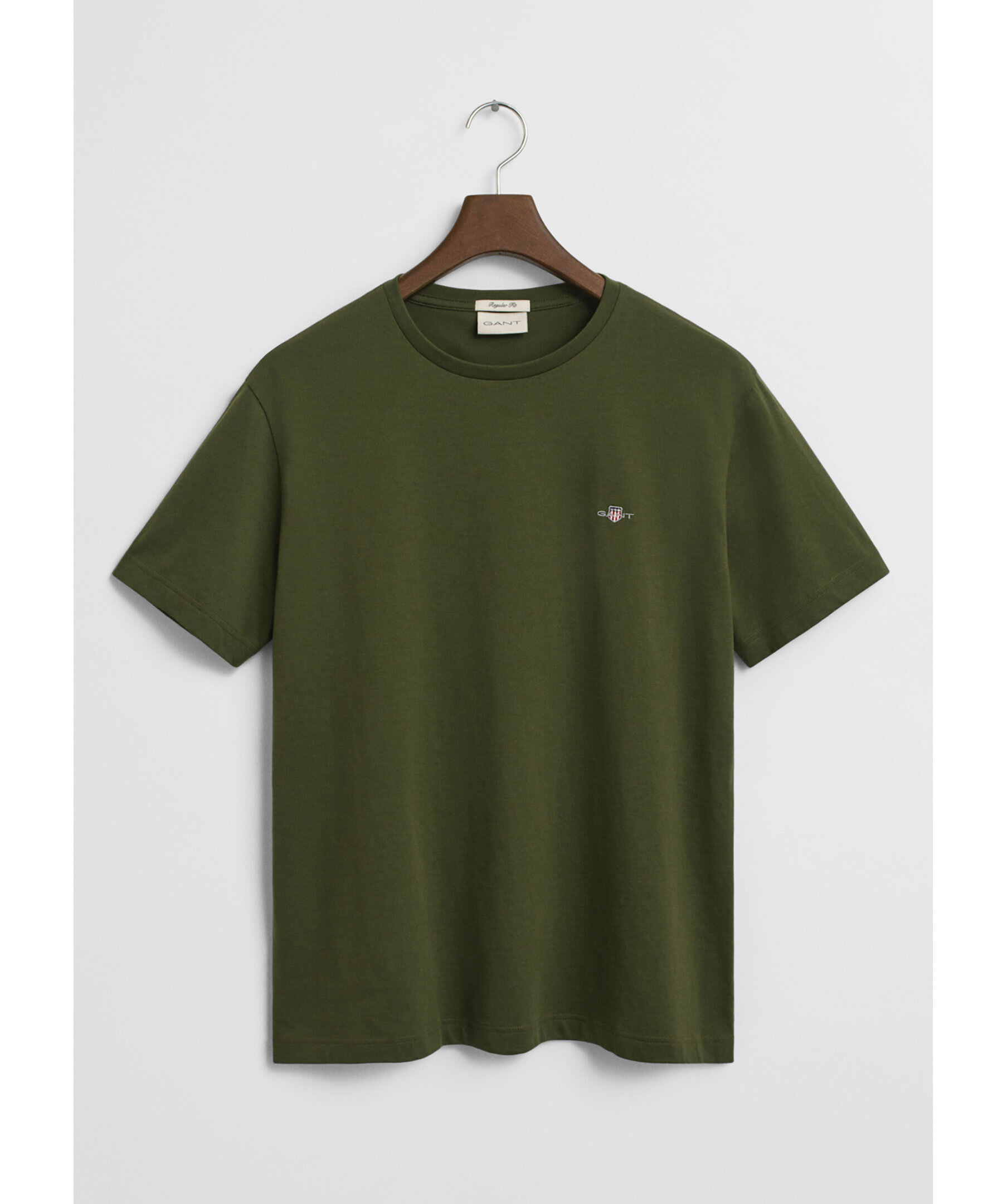 Mörkgön T-shirt från Gant. T-shirten har ribbad rund krage, liten broderad logotyp på vänster bröst och är tillverkad av 100% bomull.