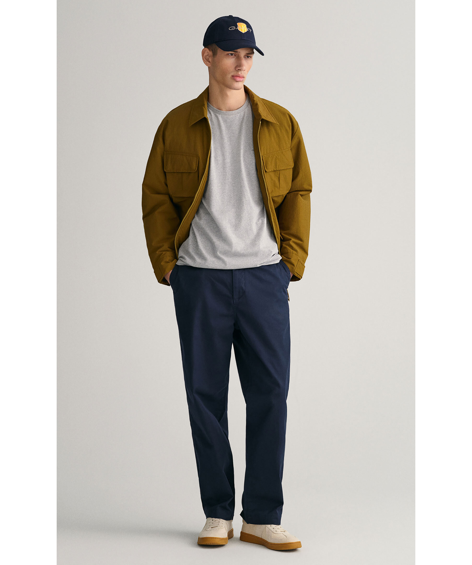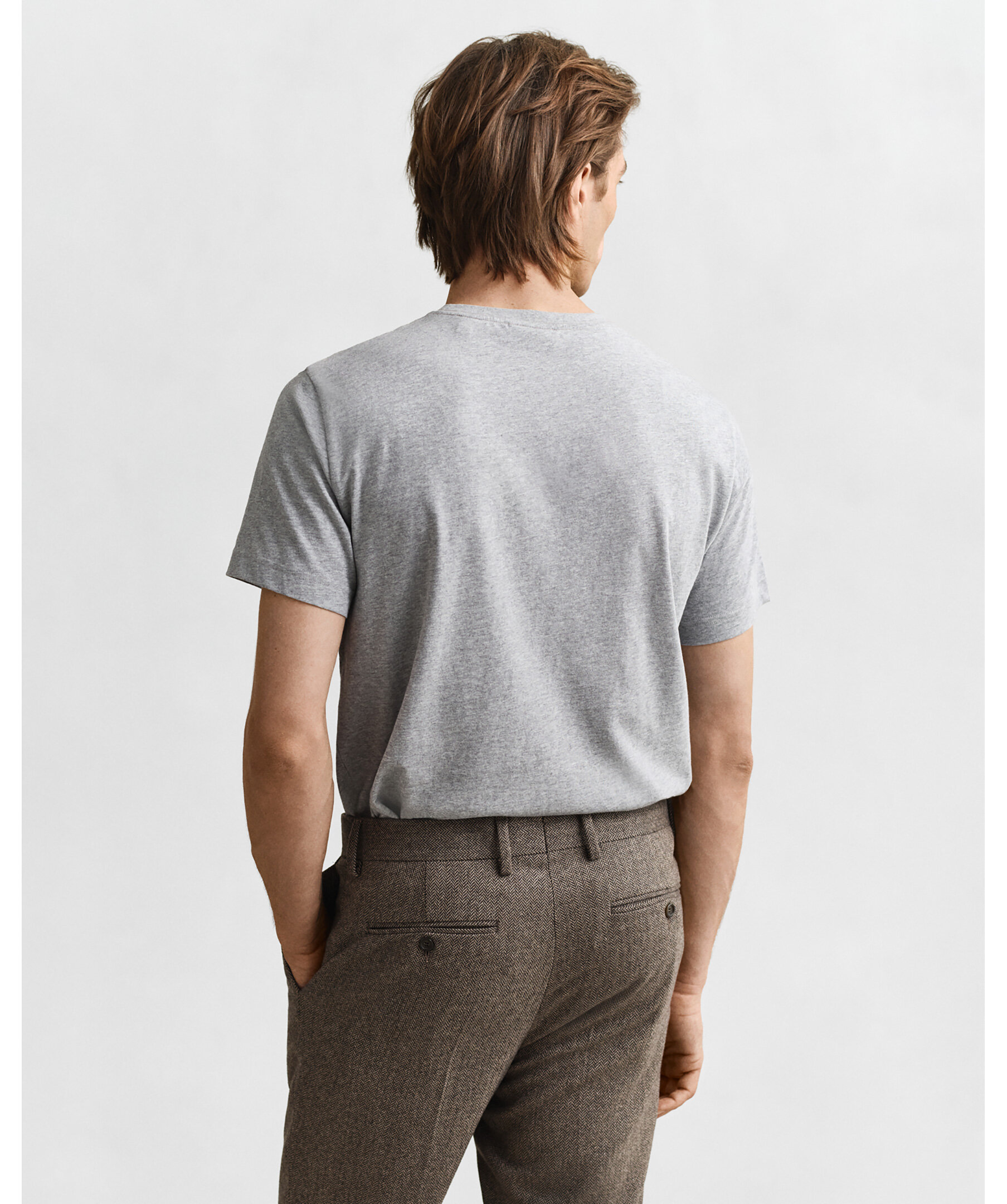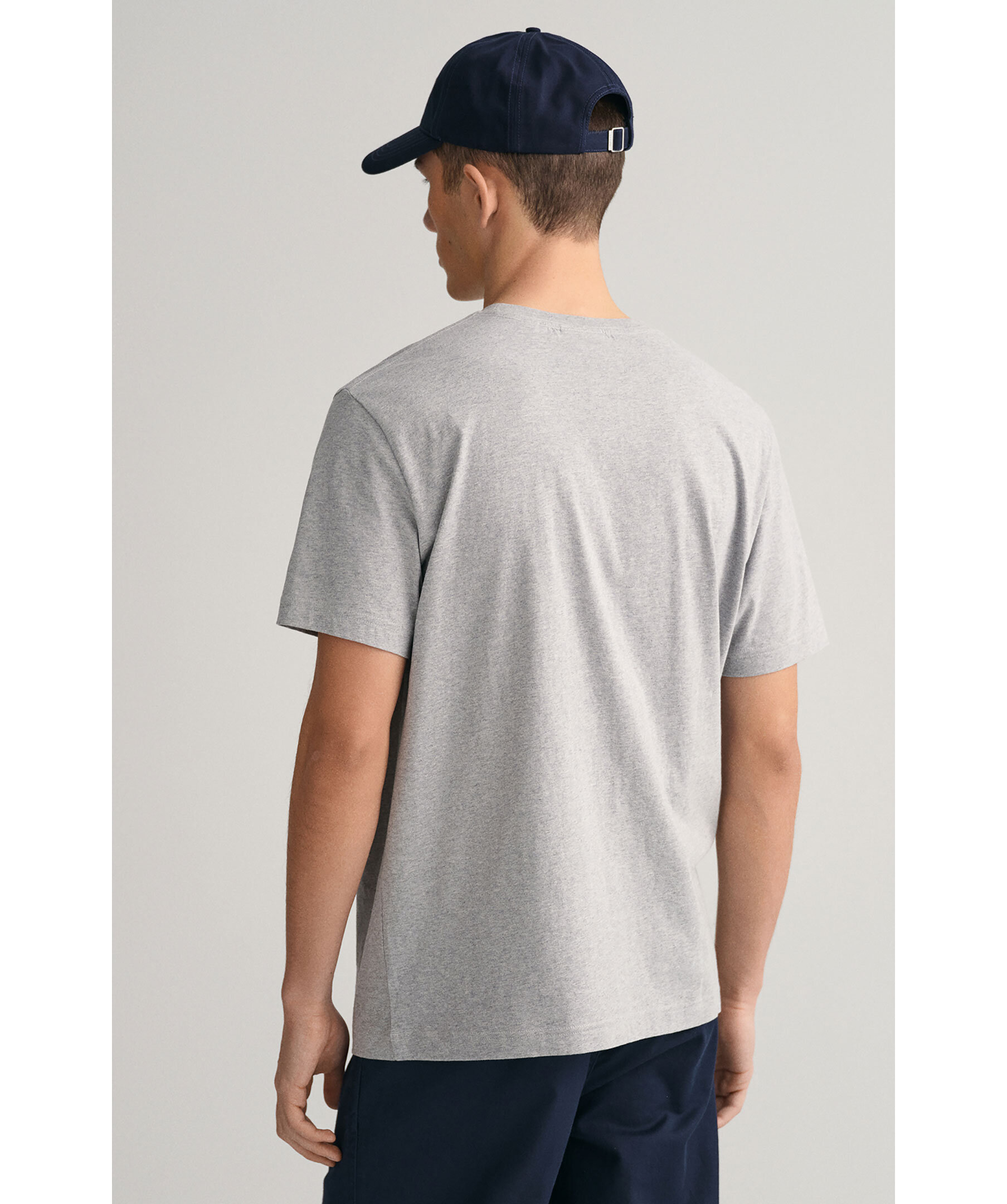 Gråmelerad t-shirt med en liten sköldlogotyp broderad på bröstet från Gant. Tillverkad i bomull med en fin ribbstickning i halsringningen för ultimat komfort. Ett fantastiskt basplagg du kan använda separat eller under en stickad tröja, jacka eller matcha med jeans, chinos eller shorts.