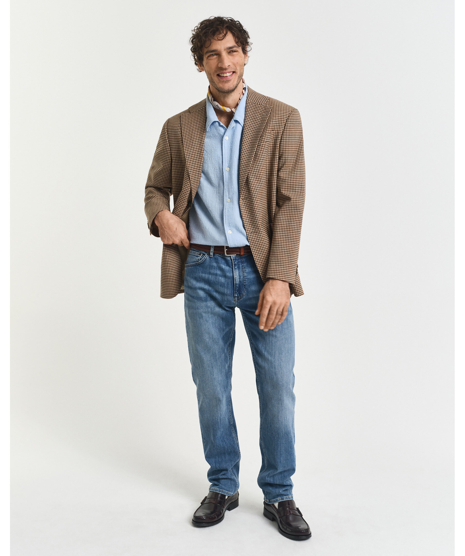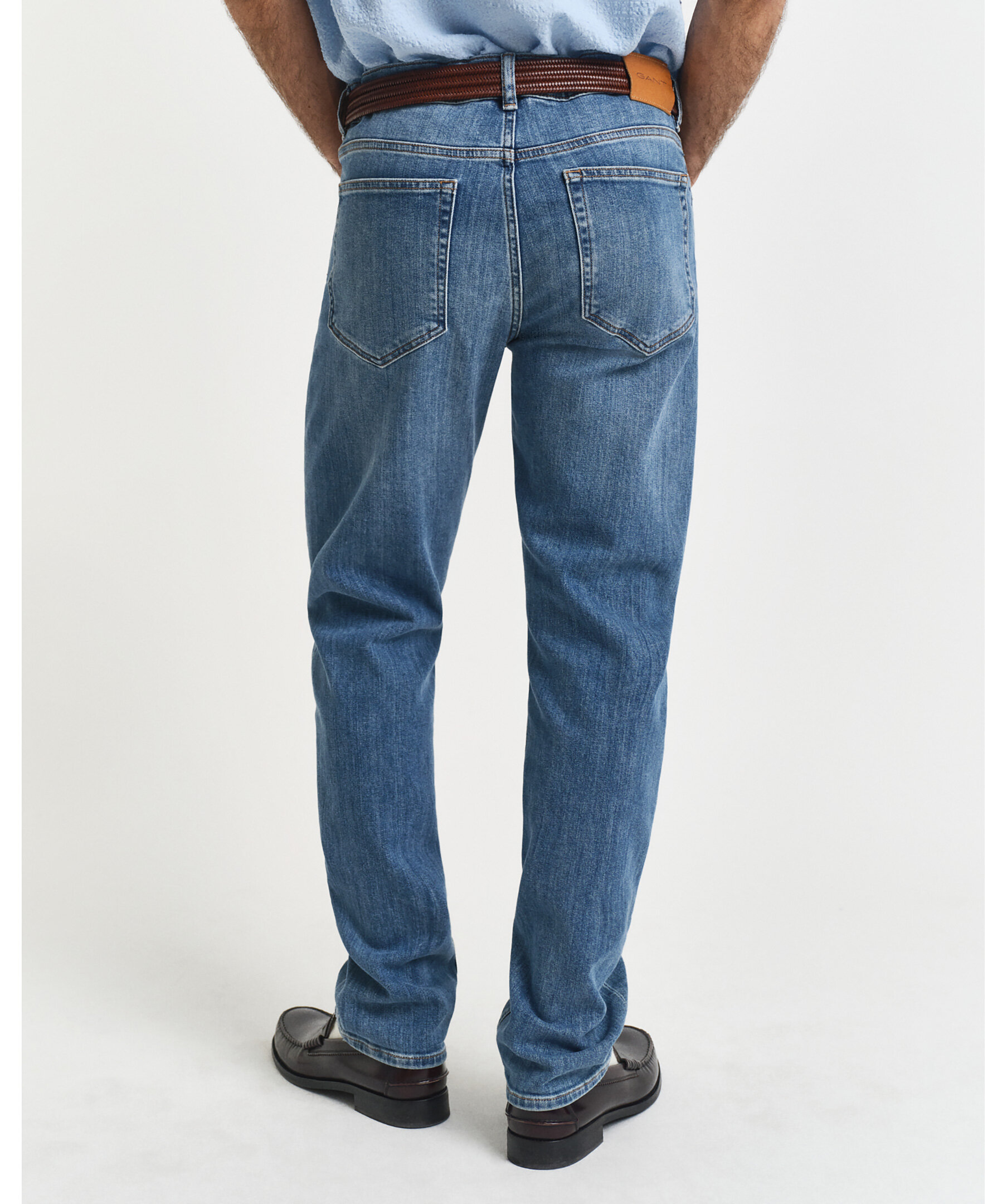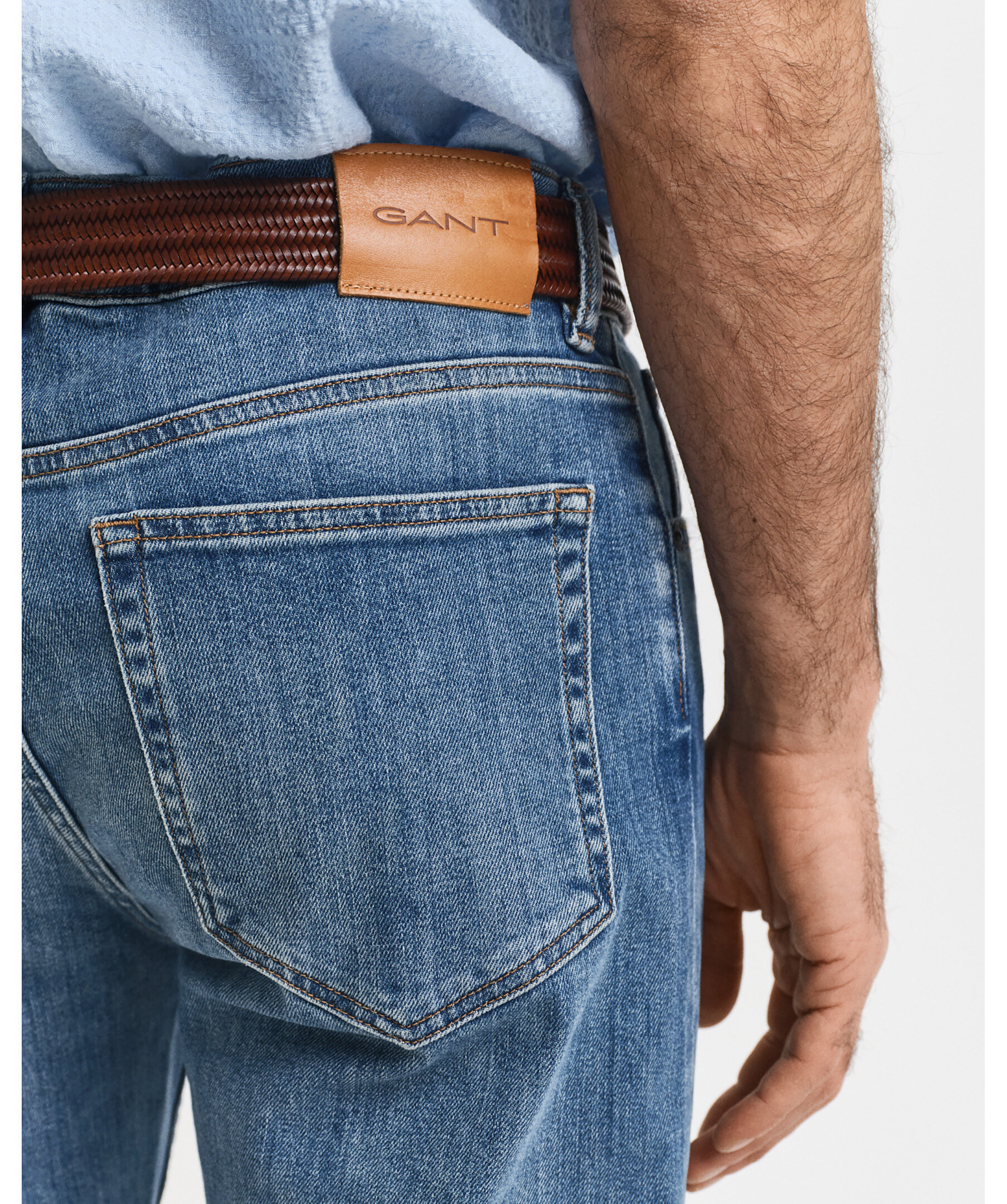 Blåa jeans från Gant. Jeansen har en mellanhög midja, fem fickor, bälteshällor i midjan och GANT-märke baktill. Tillverkad i en bomullsblandning.