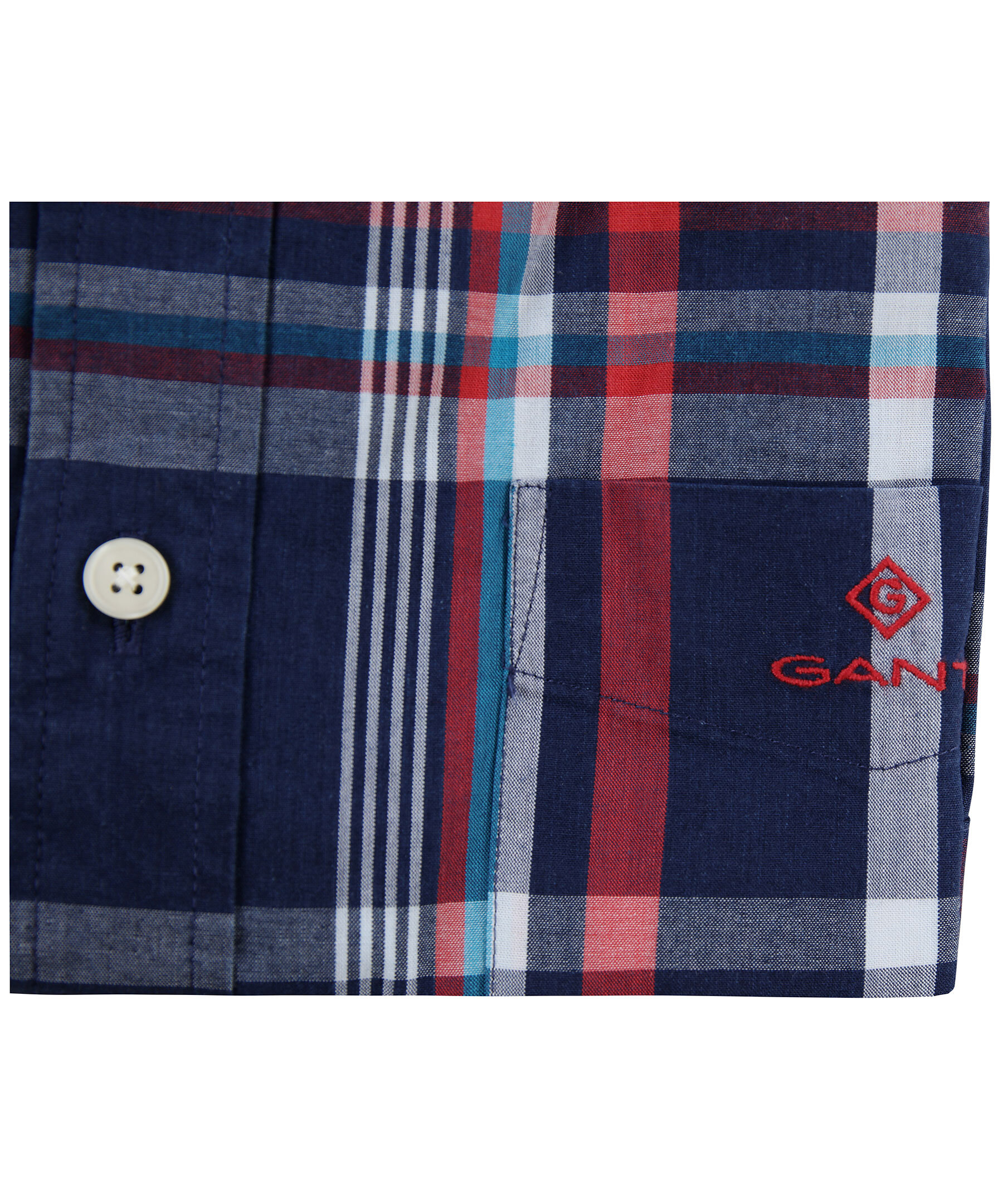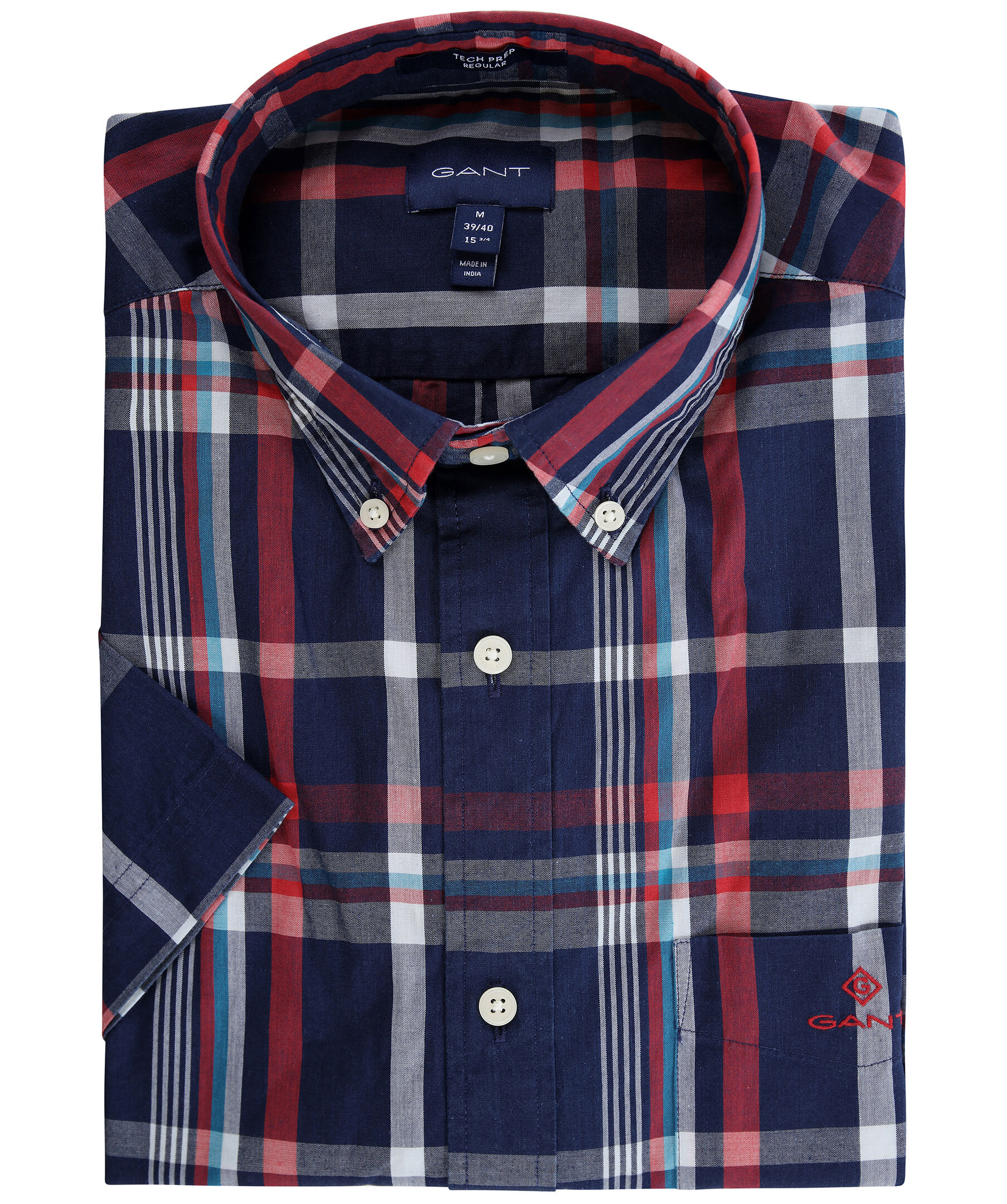 Rutig kortärmad skjorta i blått, vitt och rött från Gant. Skjortan är gjord i deras Tech Prep™ bomullsblandning för en skön och rörlig passform. Bröstficka med broderad logotyp. Button down-krage.
