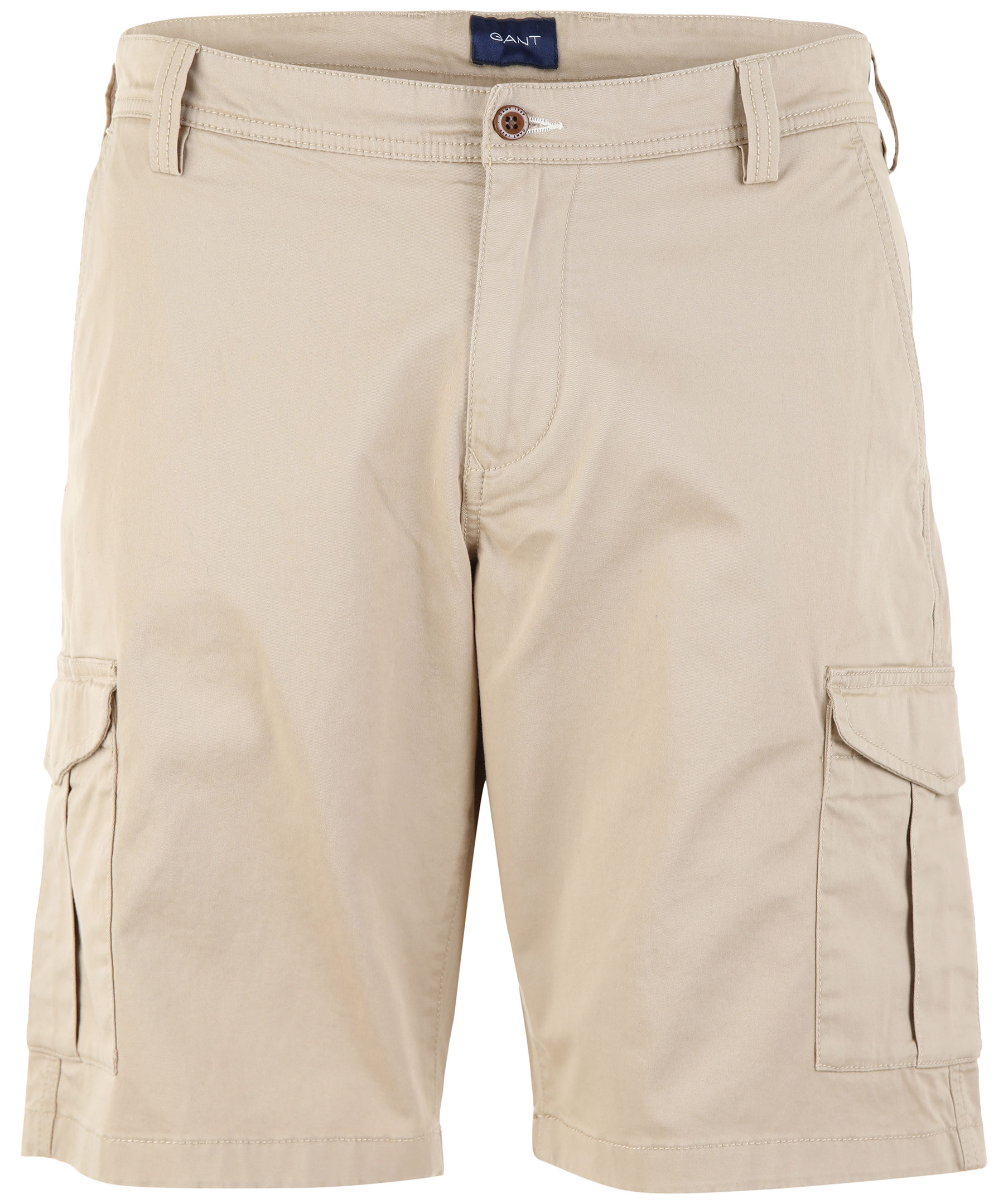Beigea cargoshorts i stretchig bomull från Gant. Fickor fram samt bakfickor och fickor på sidorna av benen med ficklock. Hällor för skärp och gylf med dragkedja och knapp.