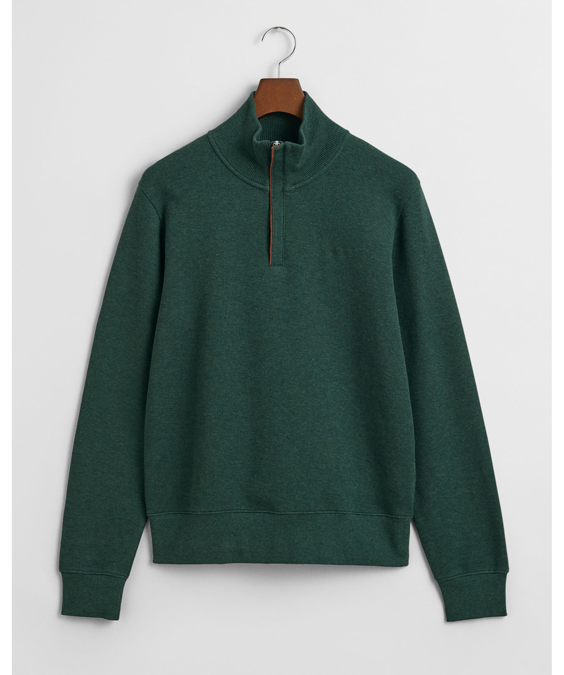 Grön half-zip från GANT. Tröjan lyfter den vardagliga sweatshirten och ger dig ett mer uppklätt alternativ utan att tumma på komforten. Tillverkad av 100 % bomull i en normal passform, har den en halv dragkedja i kragen, ribbade detaljer samt imitationmocka vid knappslå och halsband. Sweatshirten är komplett med en ton-i-ton broderad GANT-logotyp på bröstet.
