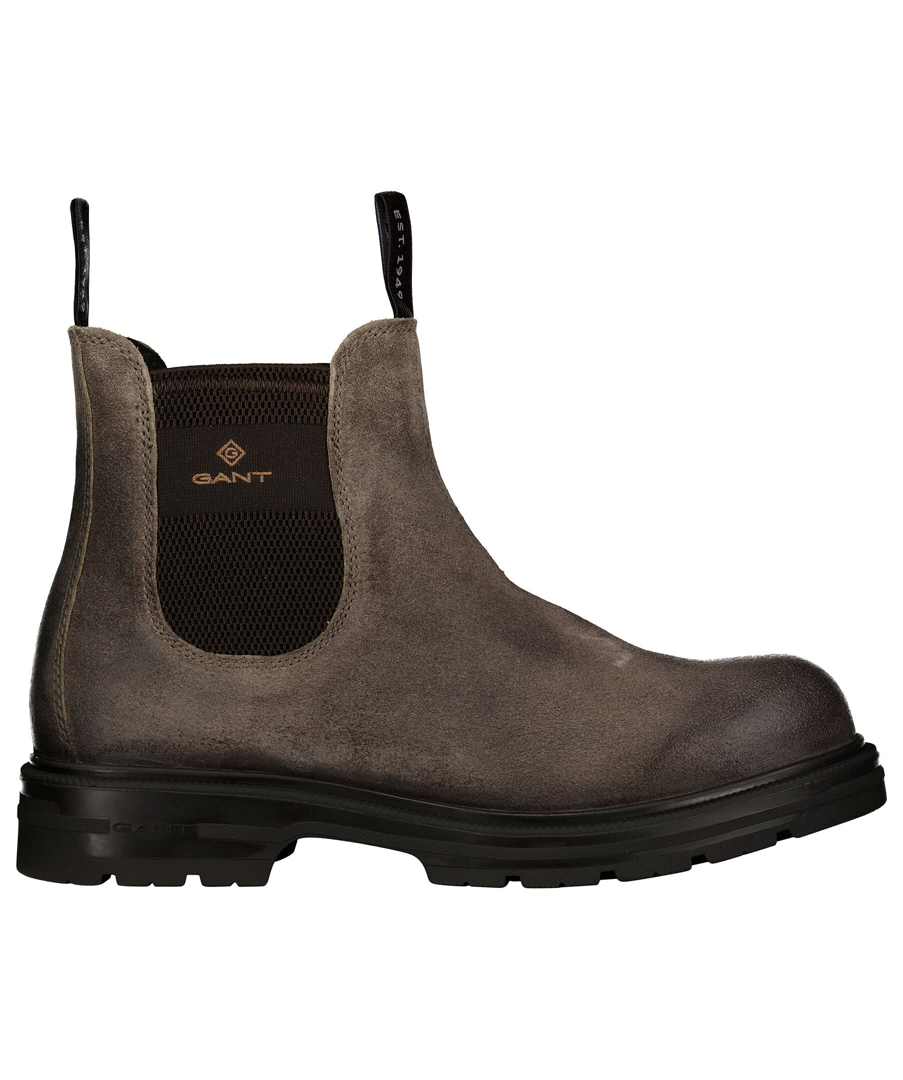 Vattenavvisande chelsea boots från GANT. Ovansidan är tillverkad i vattenavvisande mocka tillsammans med de ikoniska elastiska sidopanelerna.