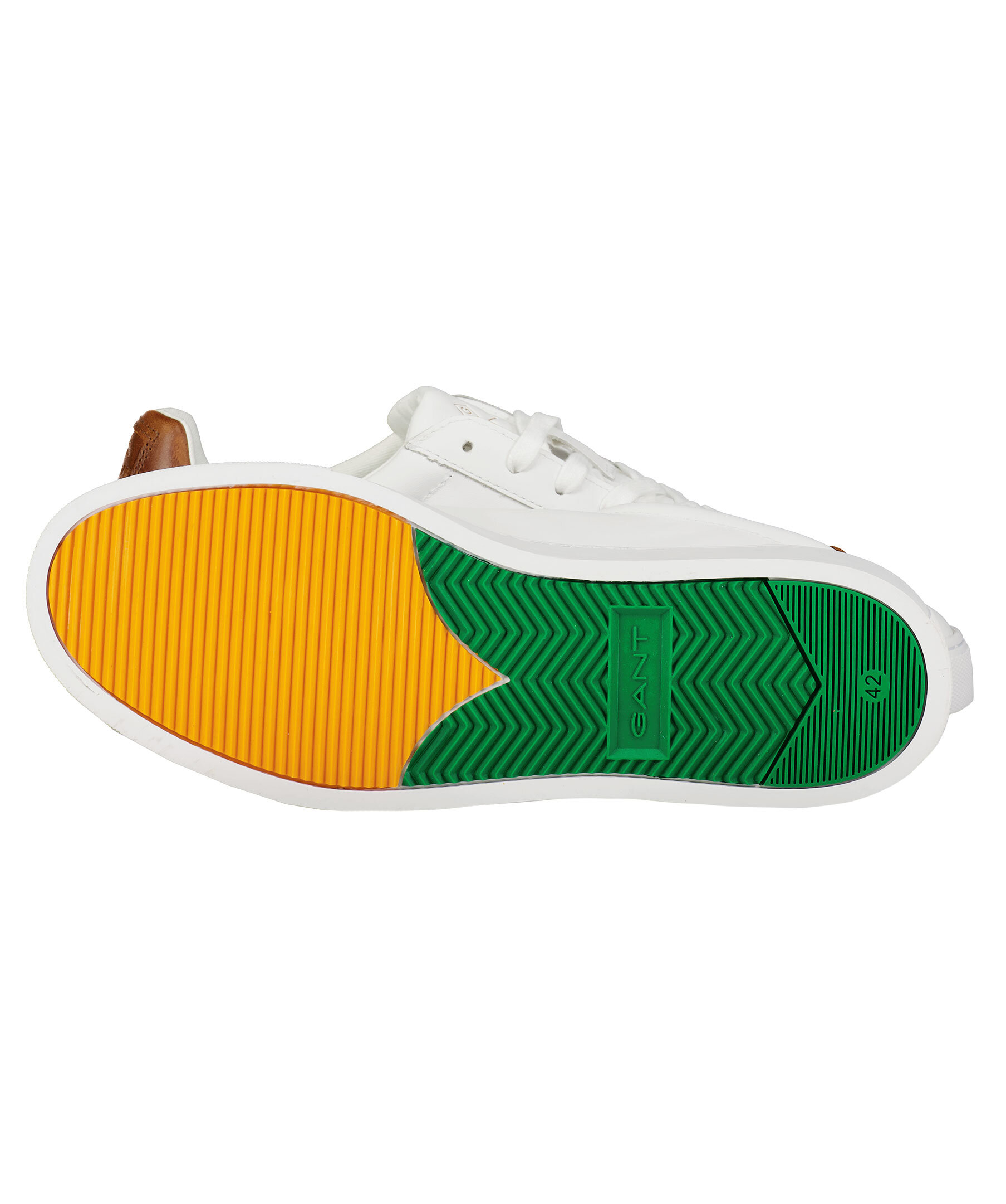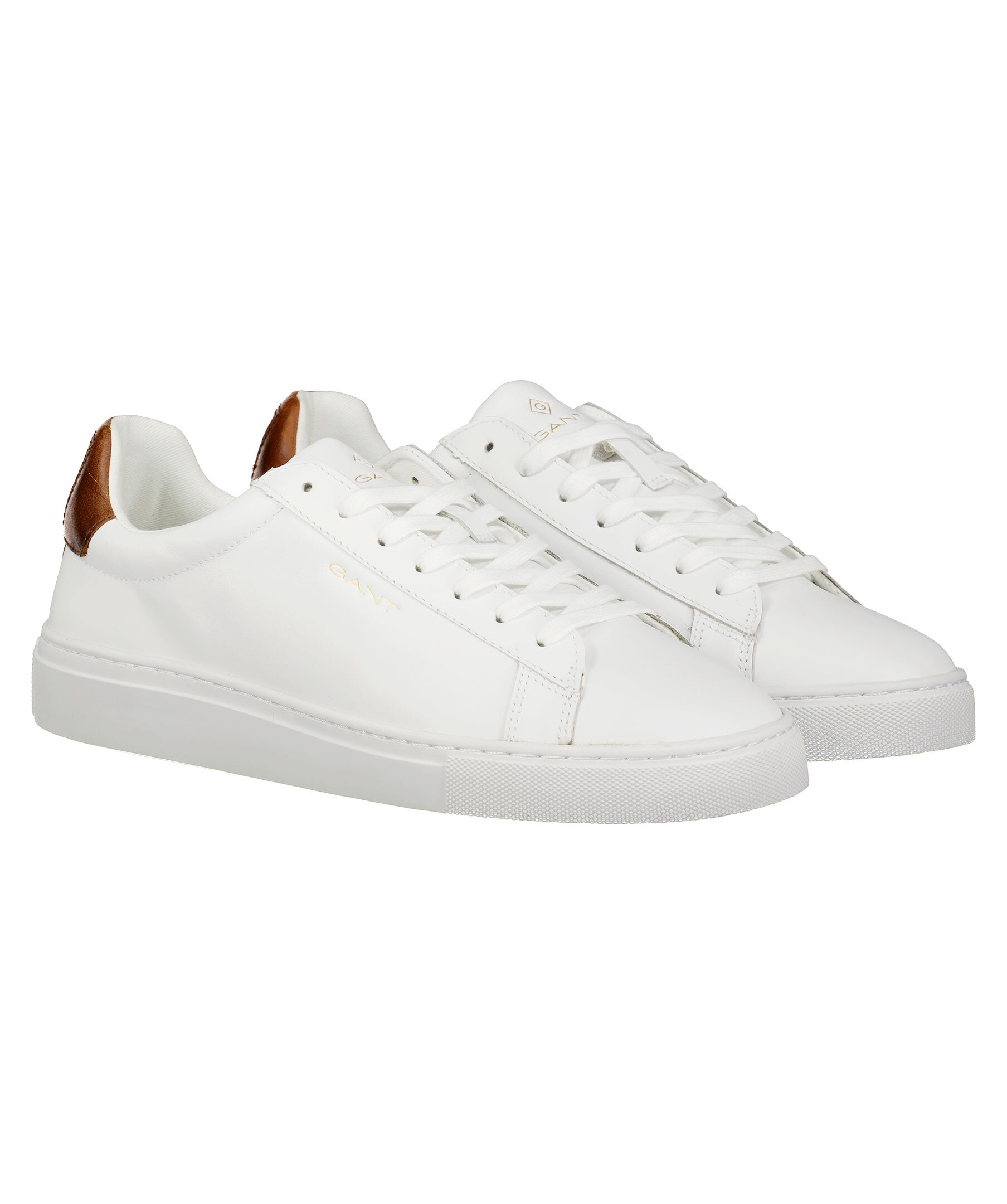 Vita sneaker från Gant. Tillverkade i läder med stilren logo på sidan, bak och på plösen. Foder i textil och memory foam. Vit gummisula och brun detalj på hälen samt vita skosnören.