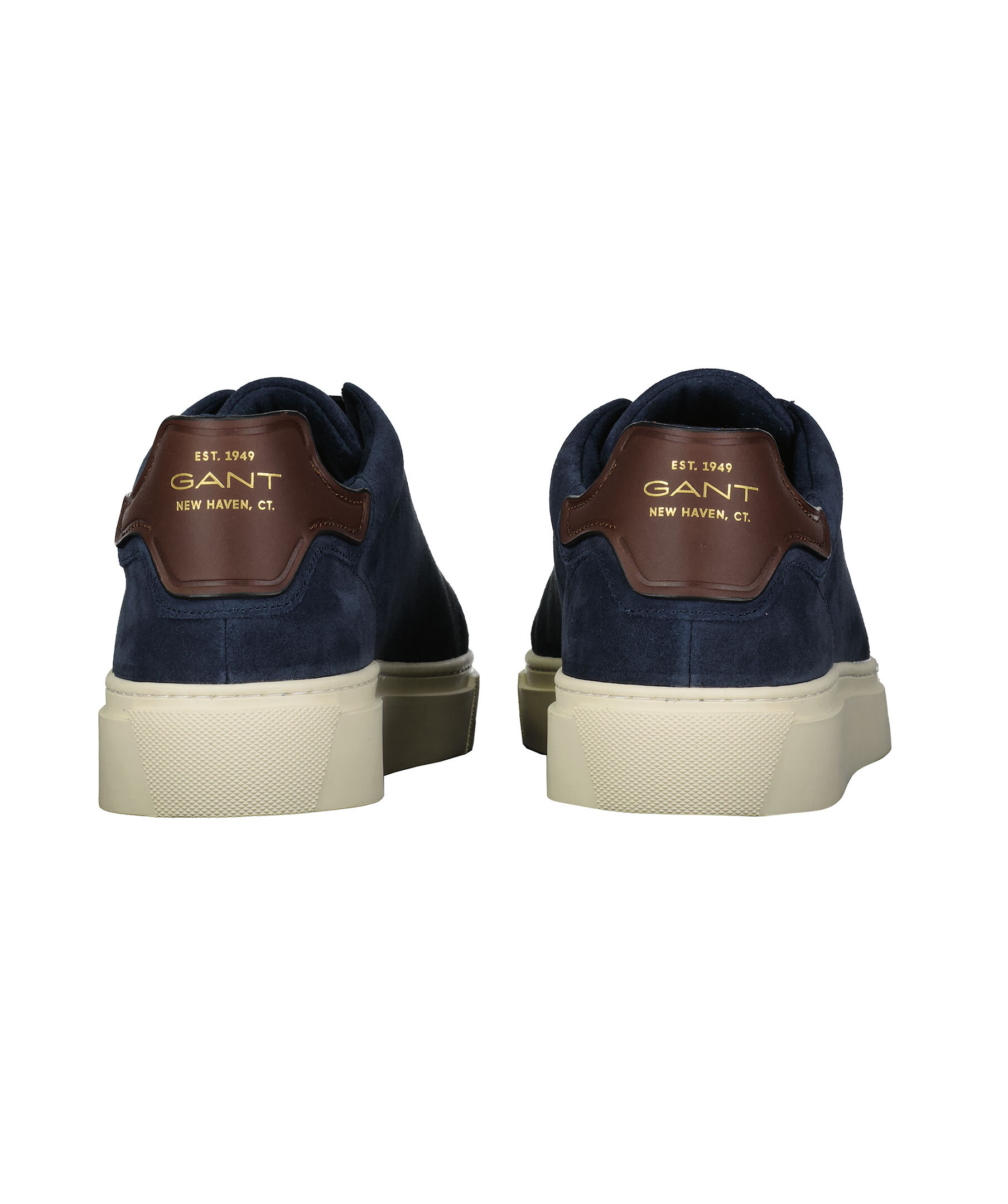 Mörkblå sneakers från Gant Footwear. Tillverkade i en mjuk mocka med bruna skinndetaljer på plösen och hälen. Logotyp på hälen och plösen. Bruna platta skosnören. Skorna har en enkel och strömlinjeformad look, nu med en högre och bredare sula. En klassiker som funkar året om. Kombinera med chinos och en skjorta för att få en diskret, preppy look.