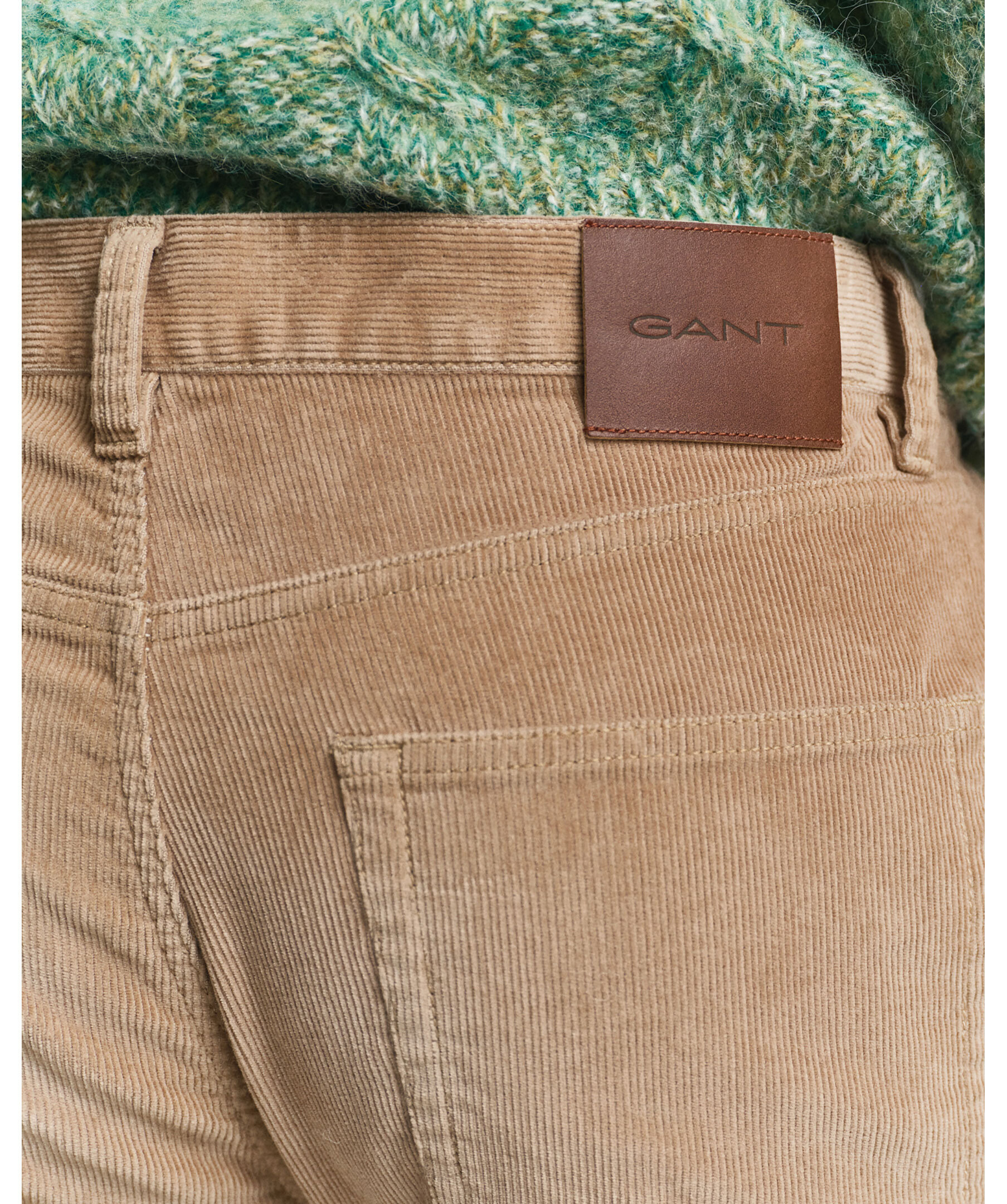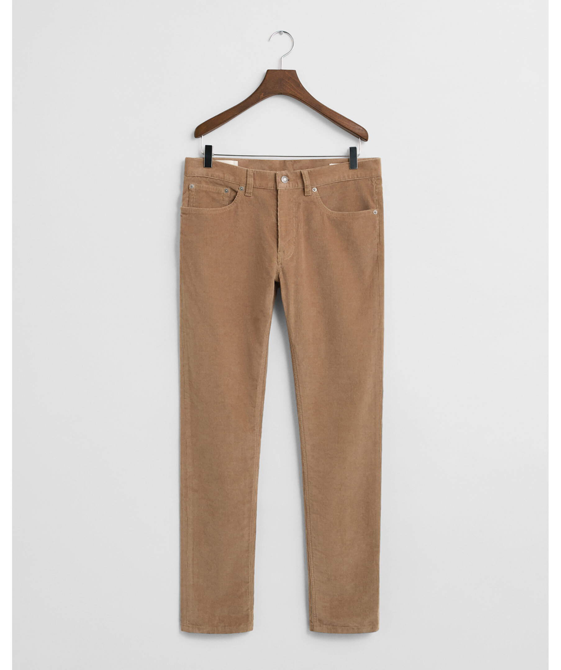 Manchesterbyxor från GANT. Jeansen är tillverkade i manchester med härlig stretch. De har en slim fit passform, medelhög midja och avsmalnande ben. En klassisk femficksmodell med knapp och nitar med logo, gylf med dragkedja och en läderetikett med logo bak på linningen.