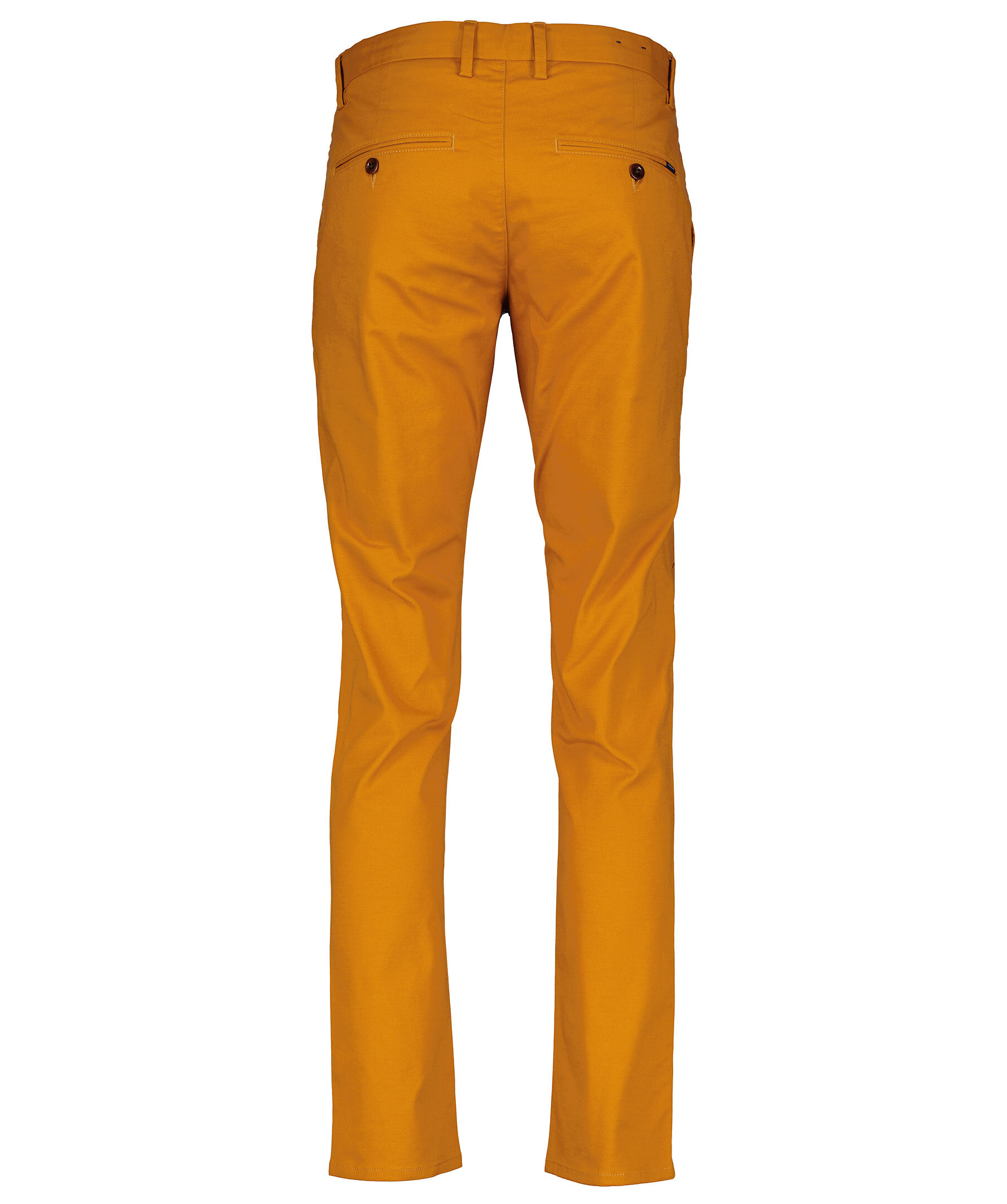 Orangea chinos i slim fit modell från Gant. Gjorda i en stretching bomullsblandning. Två snedställda fickor, passpoalfickor bak. Stängs med blixtlås och knapp i gylfen.