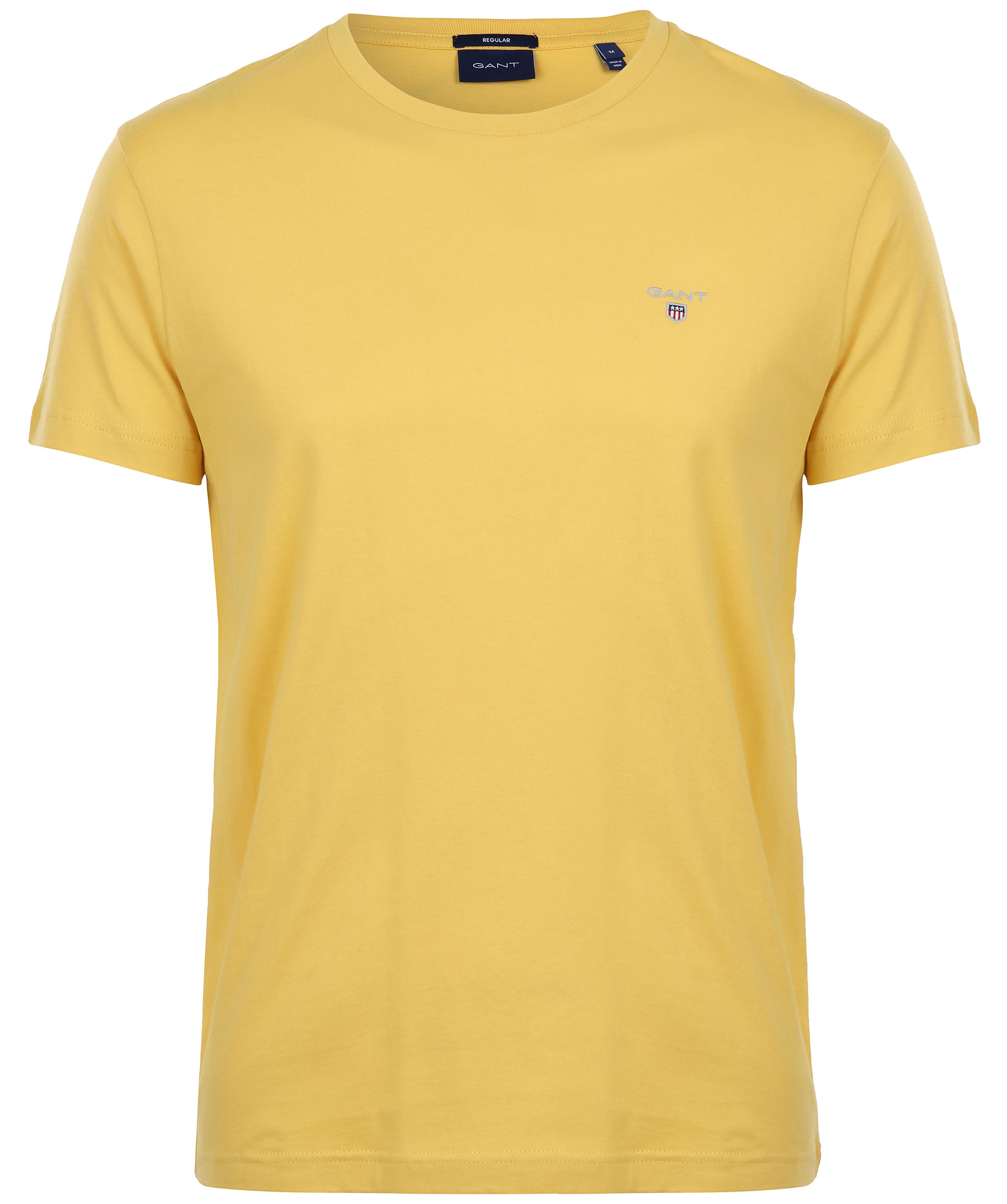 Gul t-shirt med rundad halsringning från Gant. Broderad liten logotyp på bröstet. Tillverkad i 100% bomull.