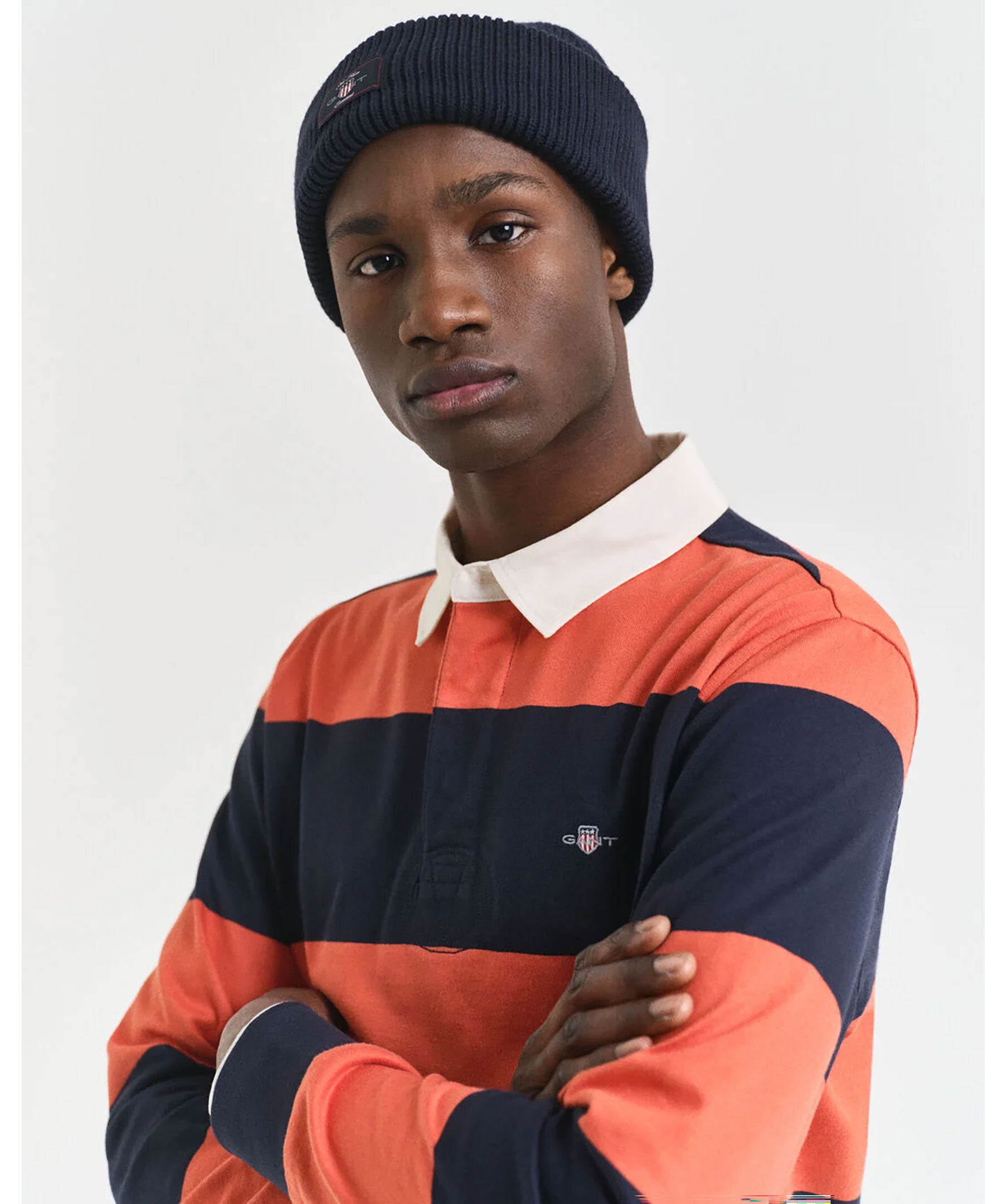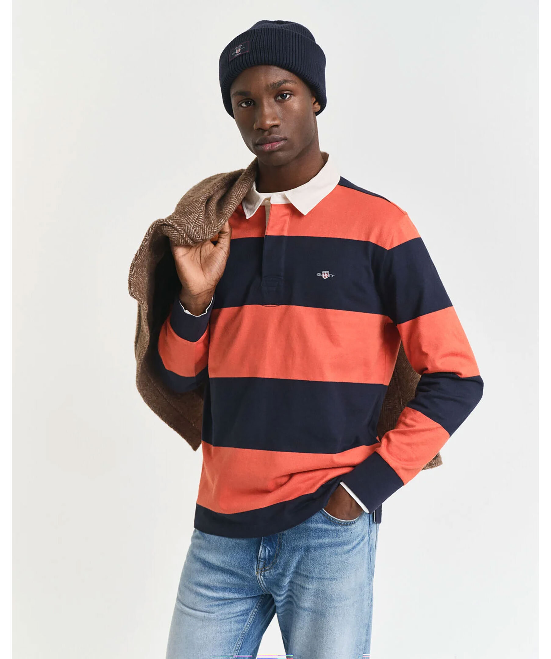 Klassisk rugbytröja från GANT, gjord i 100% bomull, med en liten sköldlogo broderad på bröstet och ett heltäckande blockrandigt mönster. Den har ribbstickade muddar, twillkrage och sidosprund.