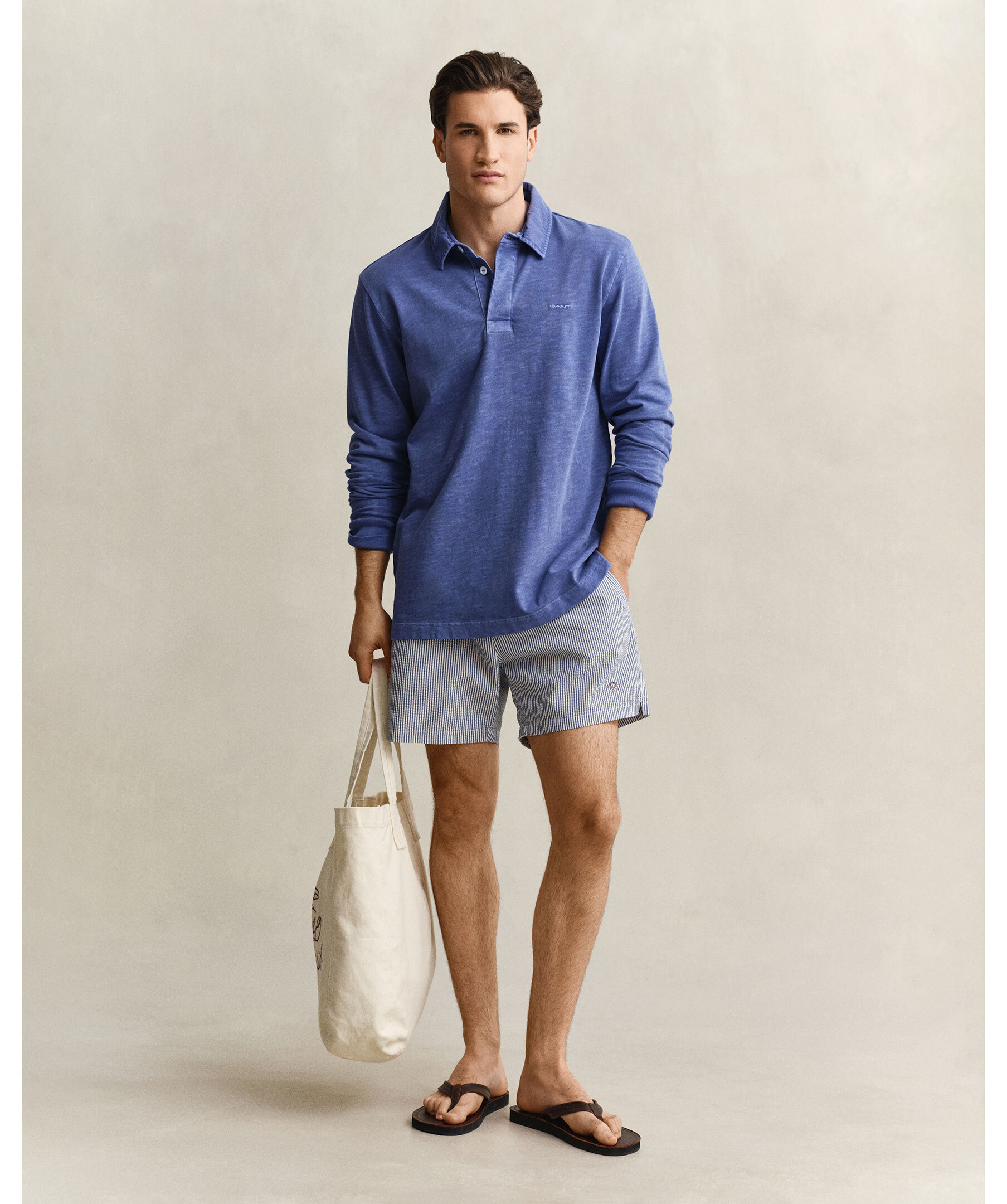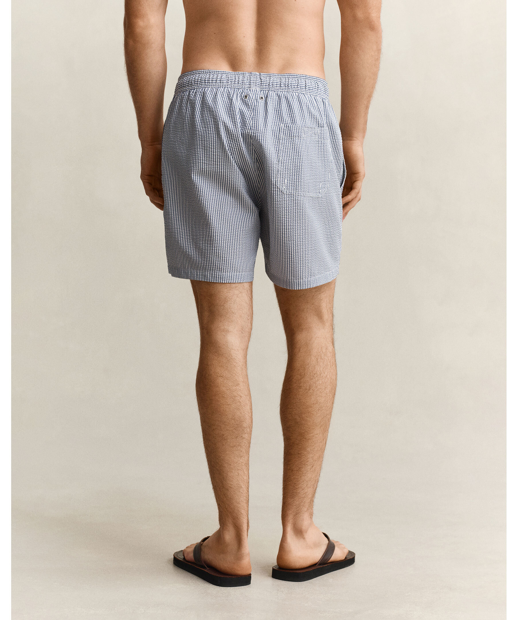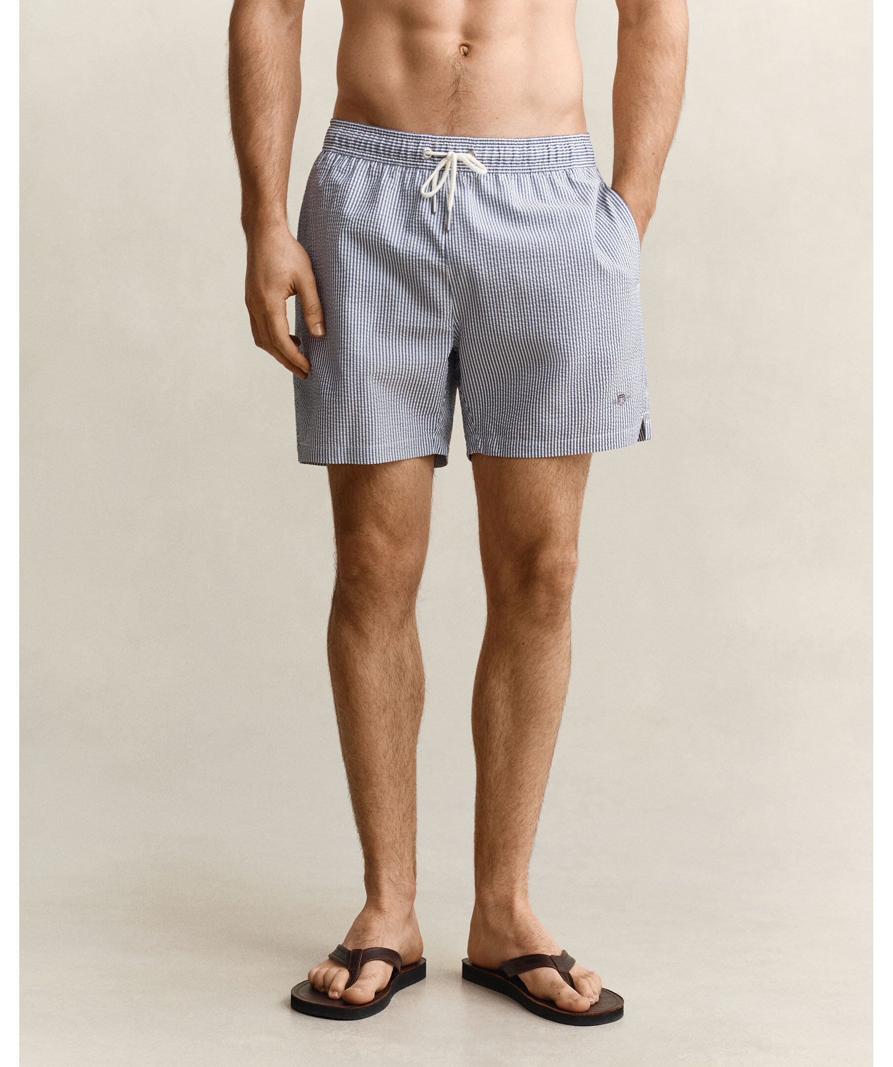 Blå/vit randiga badbyxor från Gant i bäckebölja.