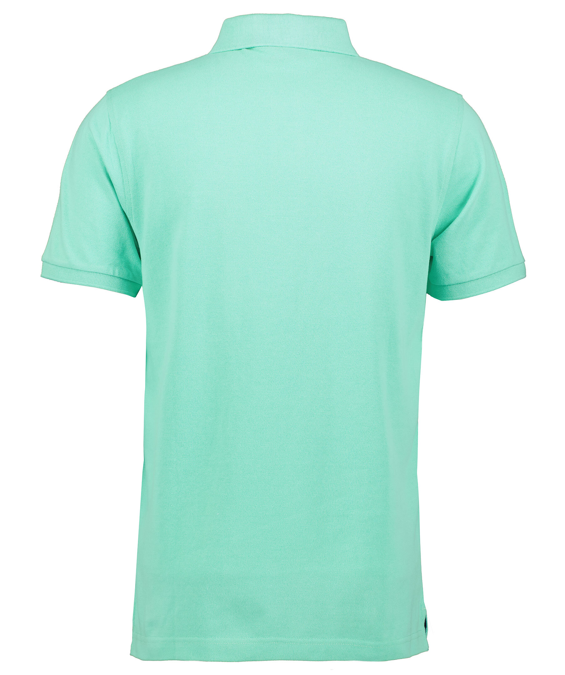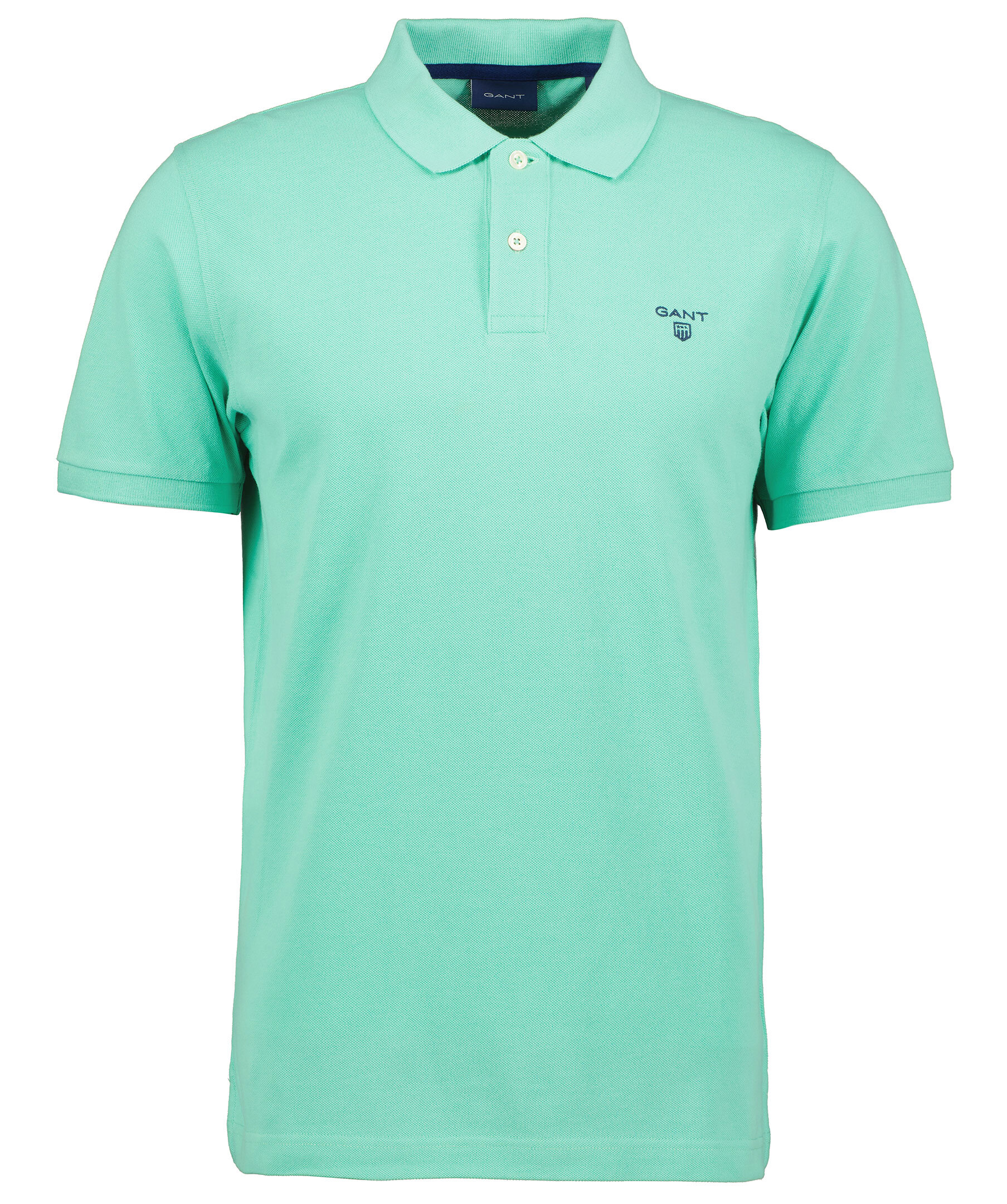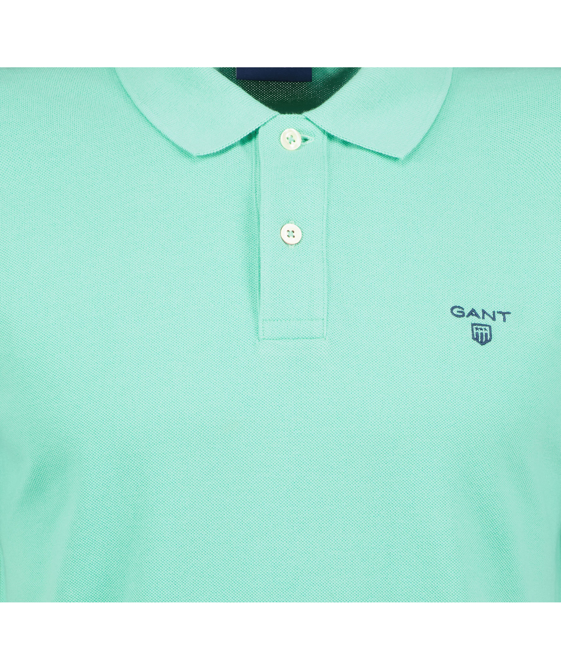 Mintgrön kortärmad piké från GANT. Tillverkad i 100% bomull, normal passform, liten broderad logotyp med GANT-sköld på bröstet. Små slitsar på sidorna. Två knappar vid kragen.