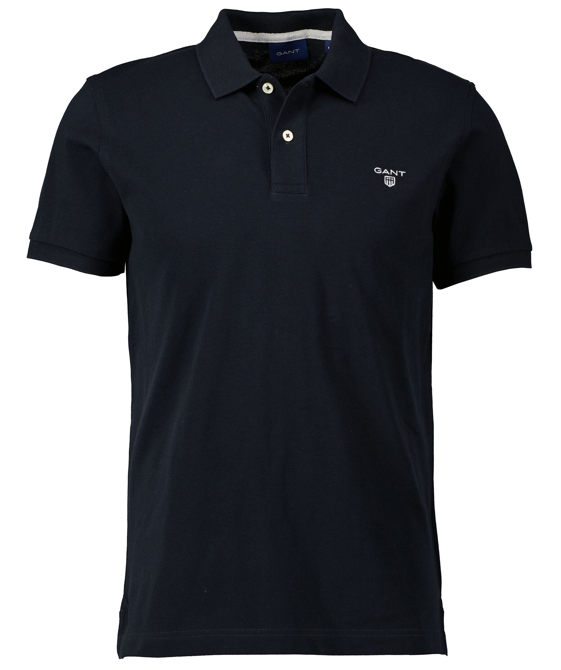 Svart pikétröja från Gant. Broderad logga på bröstet, två vita knappar fram och korta slitsar i sidorna. Gjord i 100% bomull.