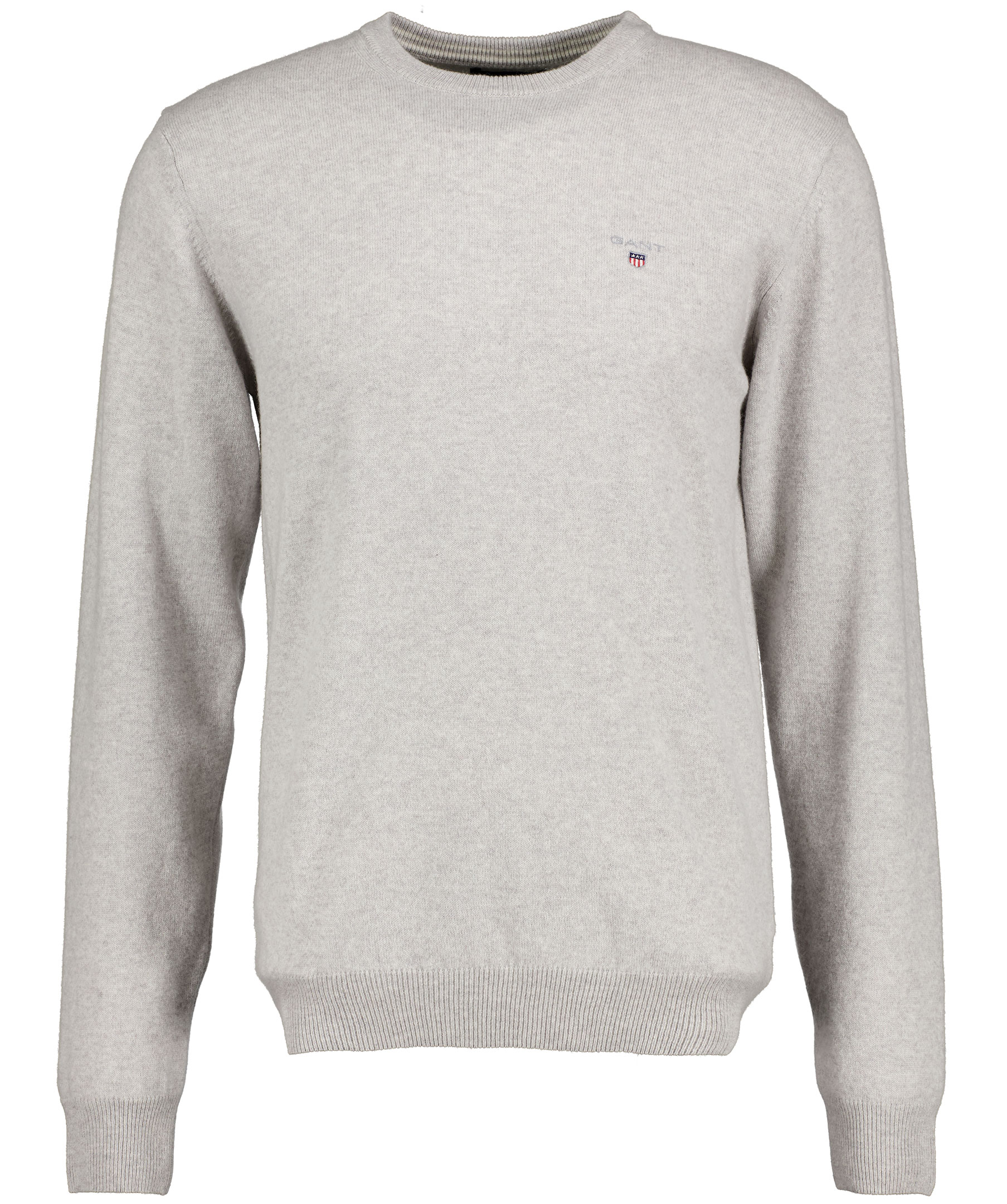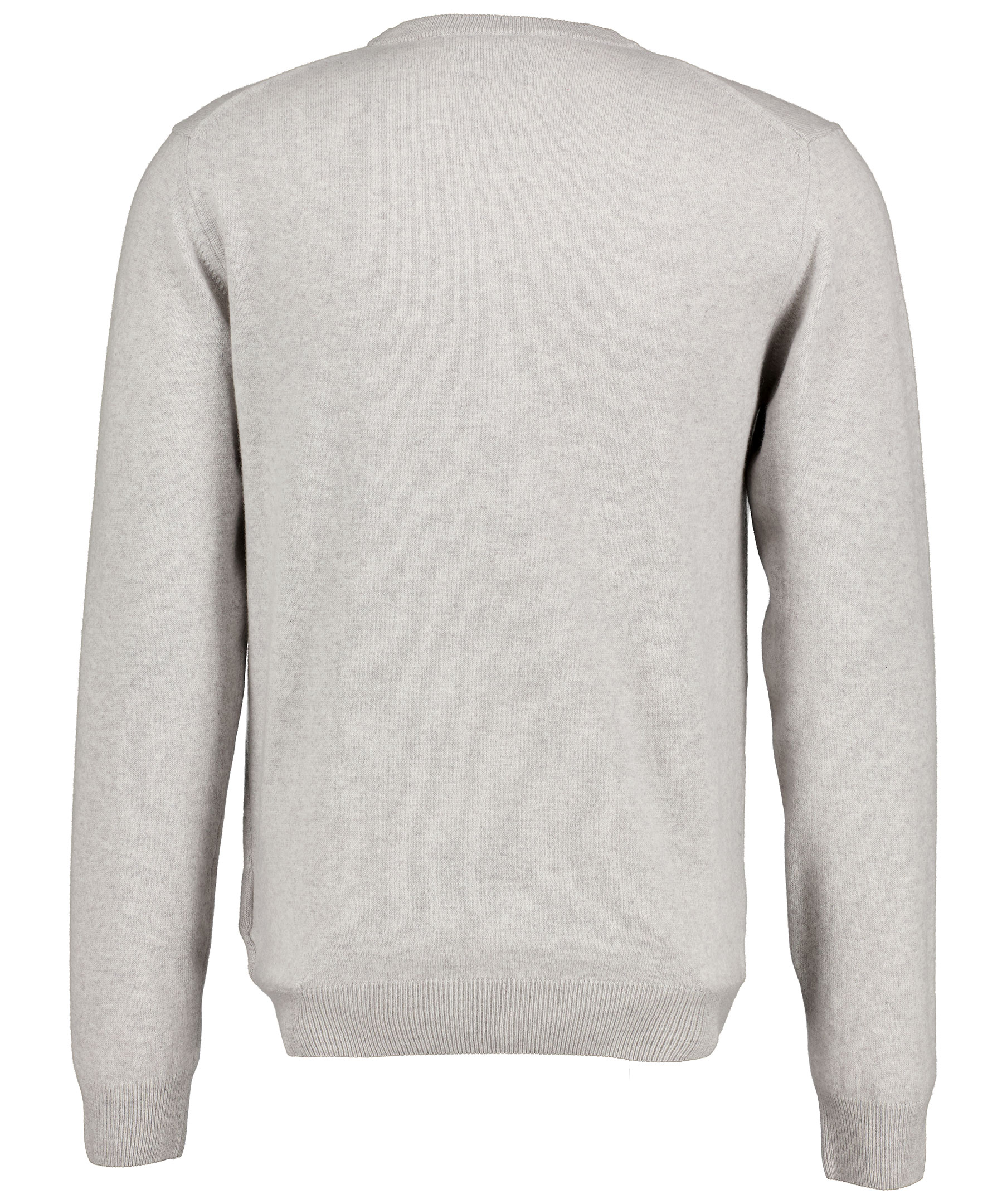 Ljusgrå finstickad tröja i 100% ull från Gant. Logotyp broderad på vänster sida av bröstet och ribbstickad krage, ärm och plaggslut.