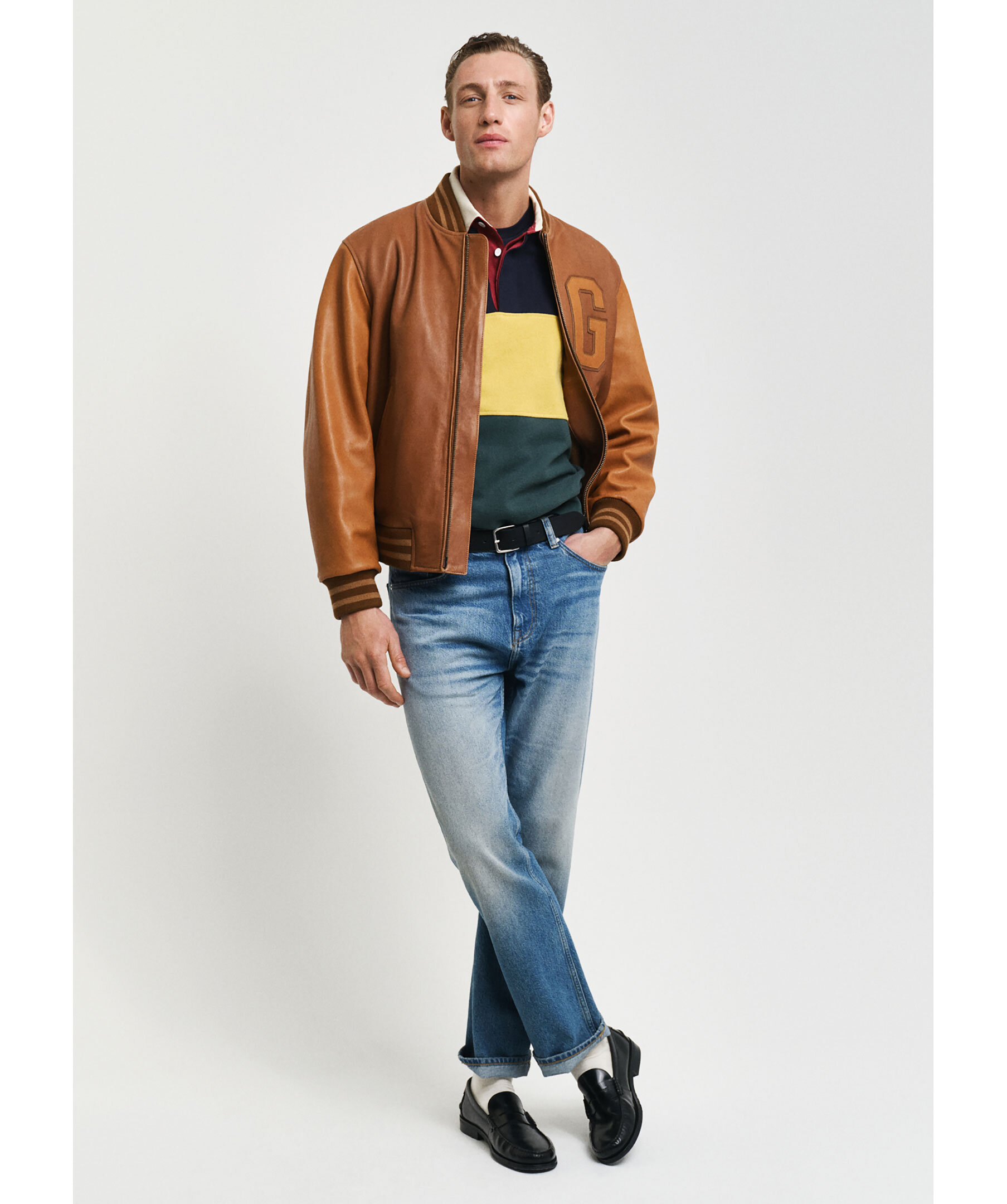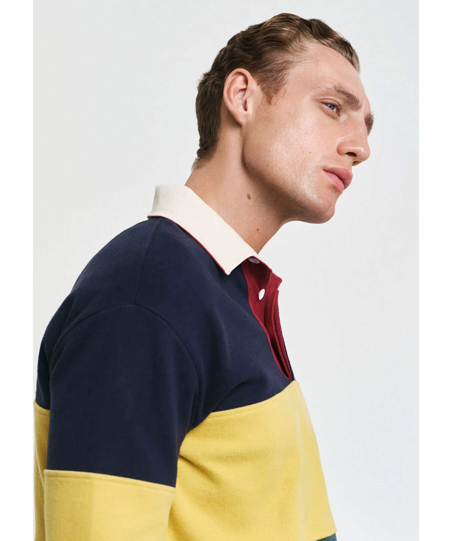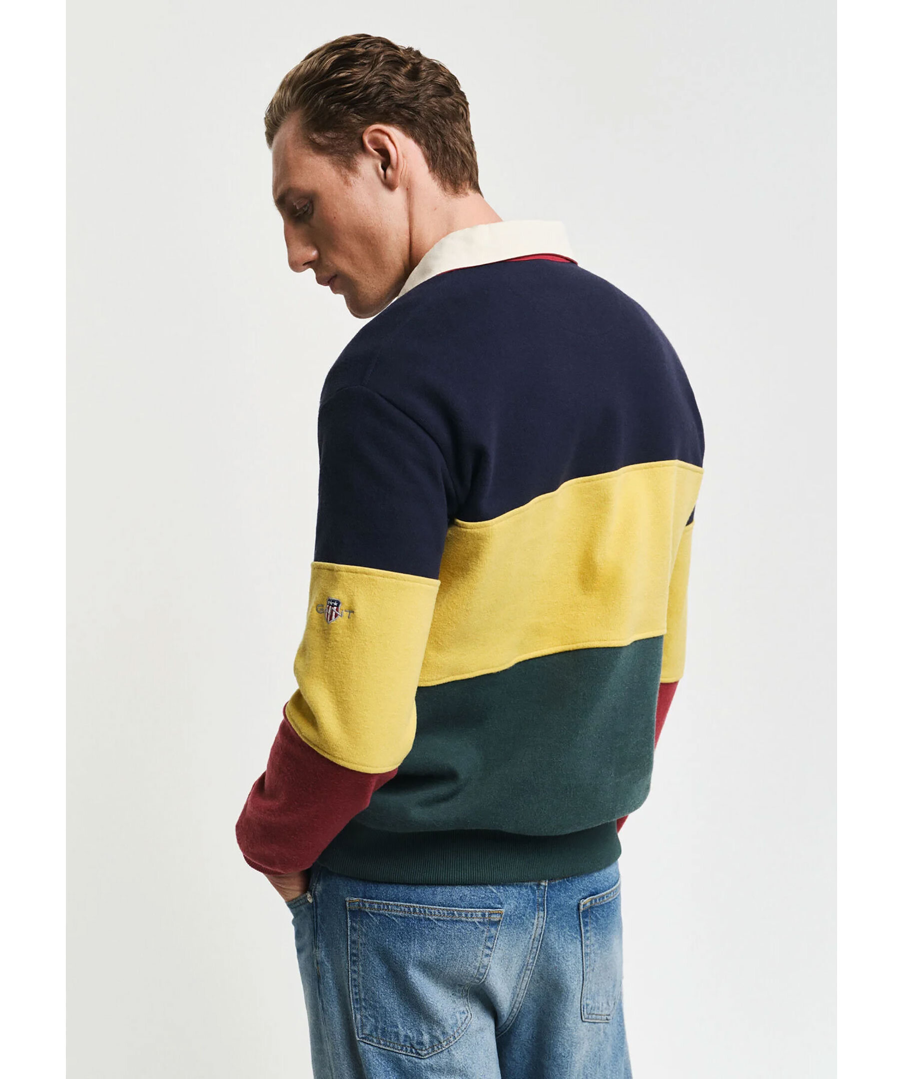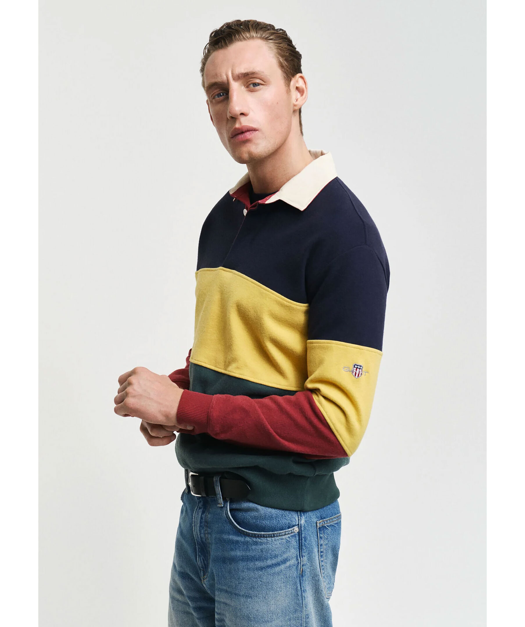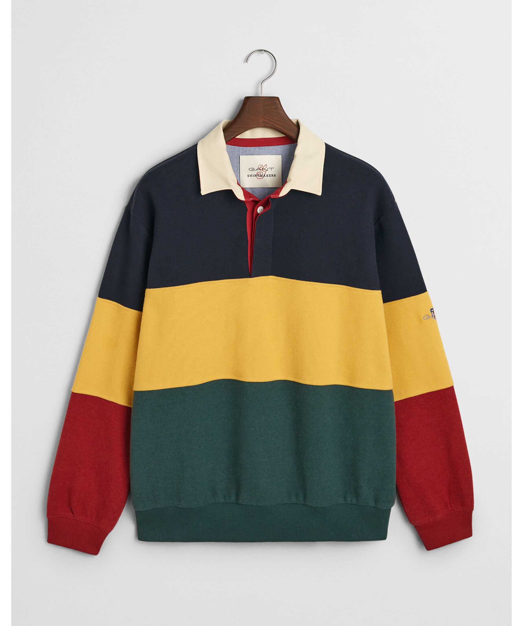 Multifärgad, randig rugbytröja från Gant inspirerad av vintageplagg. Plagget är en replika av en klassisk rugbytröja från mitten av 1990-talet, skapad med en speciell panelteknik. Tröjan har knappslå i twill och rynkade detaljer vid den ribbstickade fållen och ärmsluten samt broderad GANT-sköld på ärmen. Tillverkad i en bomullsblandning.