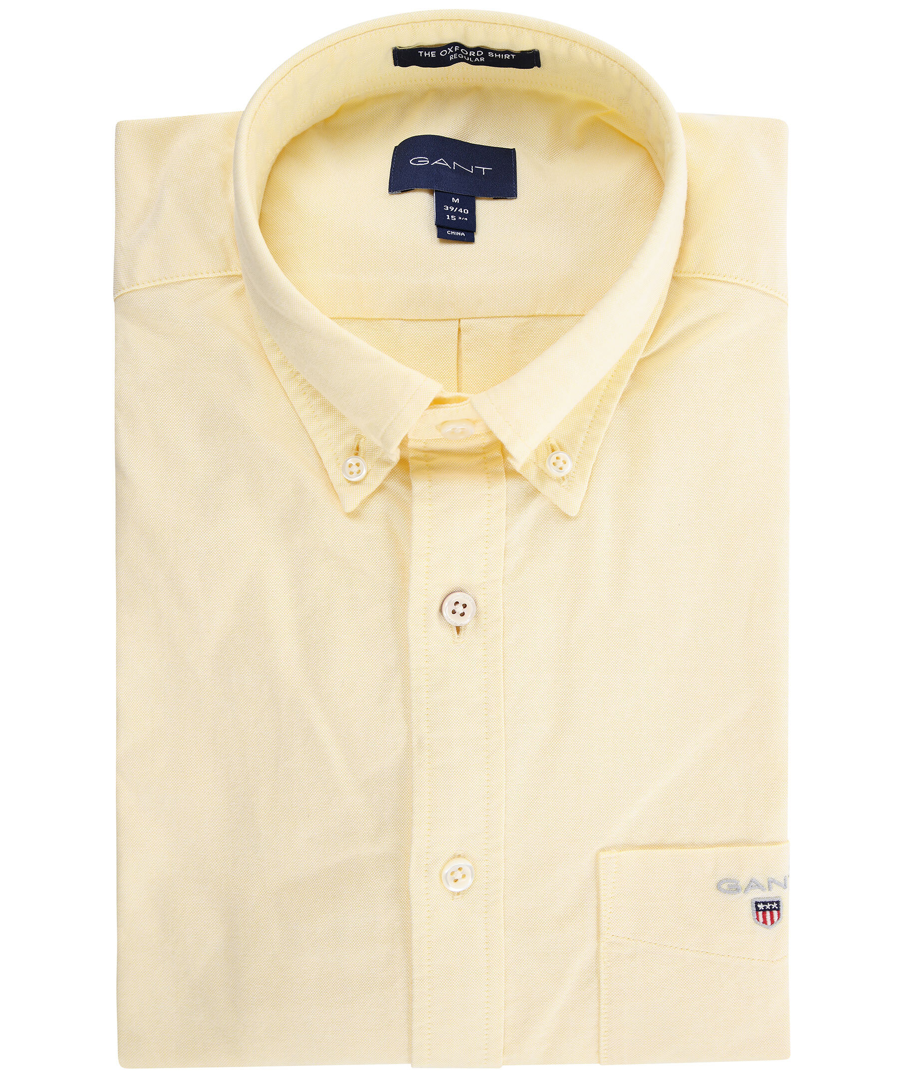 Ljusgul oxfordskjorta i en normal passform från Gant. Klassisk skjorta tillverkad i 100% bomull. Bröstficka med broderad logotyp.