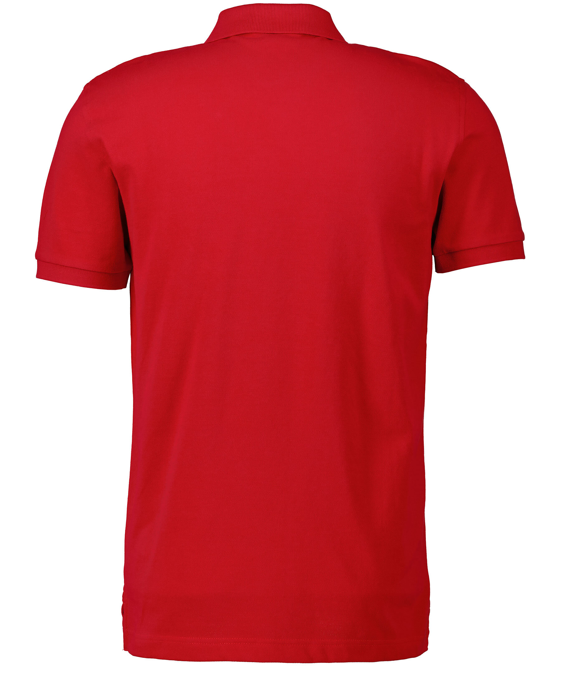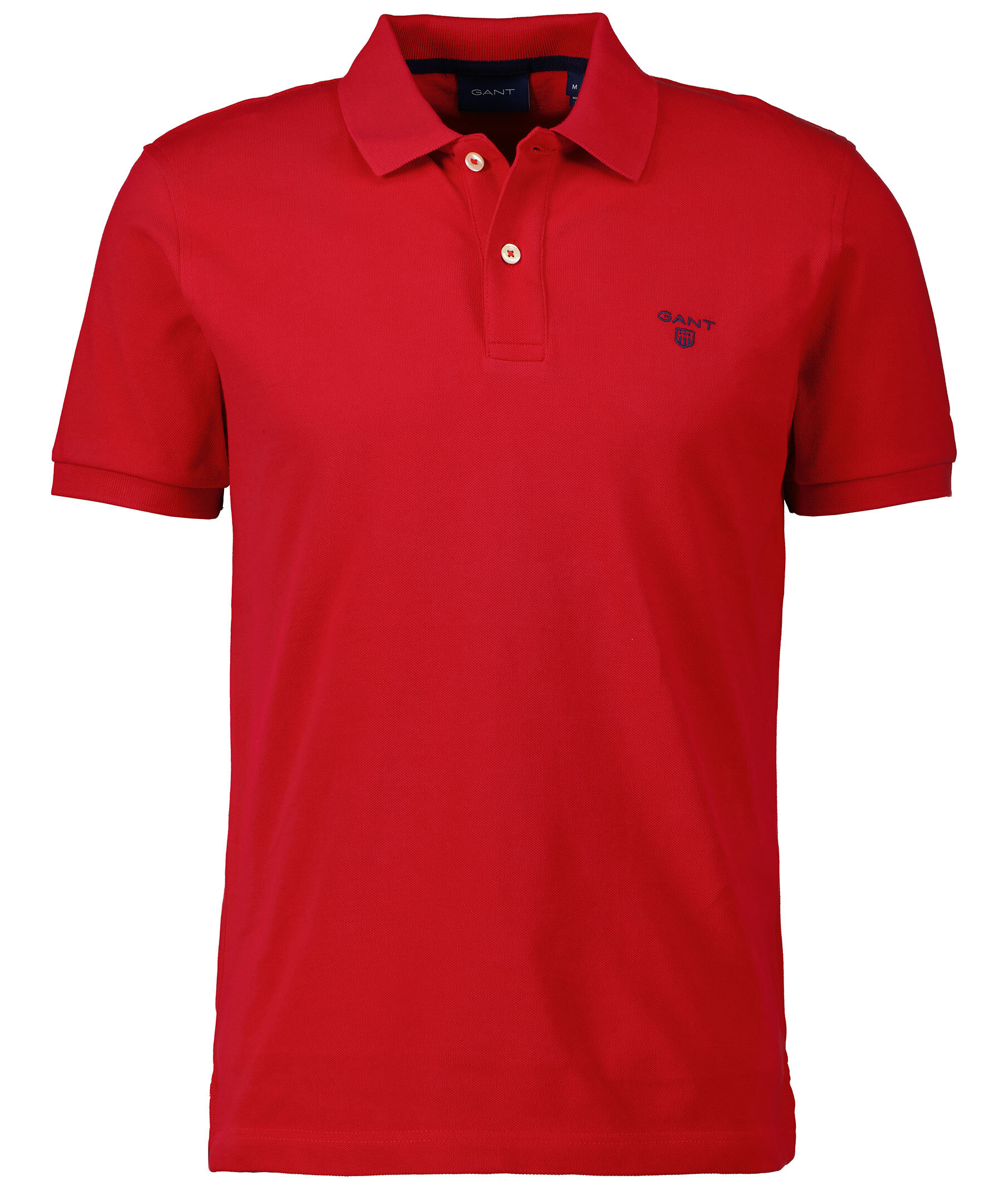 Röd pikétröja från Gant. Broderad logga på bröstet, två vita knappar fram och korta slitsar i sidorna. Gjord i 100% bomull.