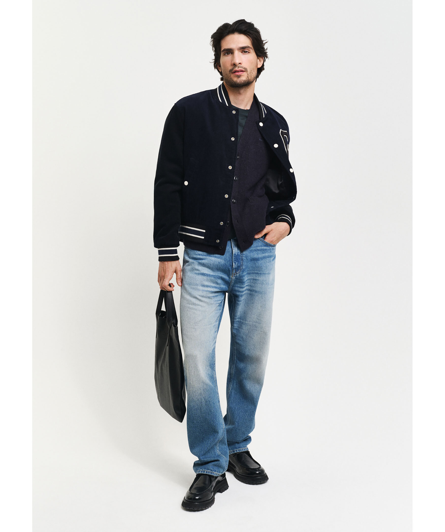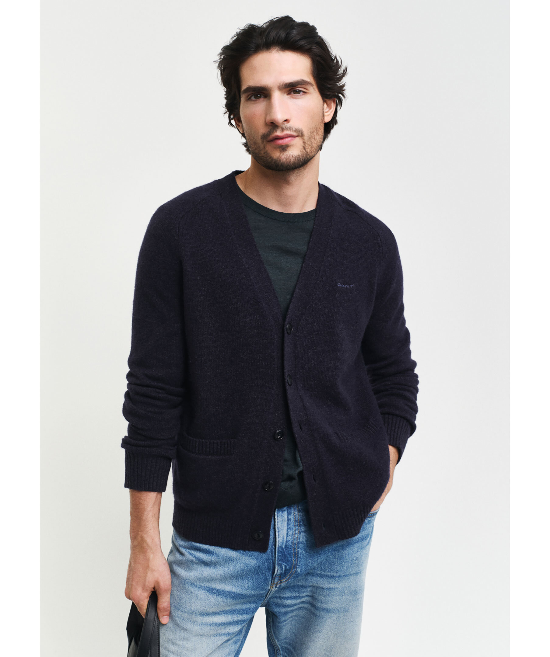 Marinblå tröja från Gant. Tröjan stängs med knappar och har två fickor och ribbade detaljer. Subtil Gant logotyp broderad på bröstet. Tillverkad av en ull- och bomullsblandning.