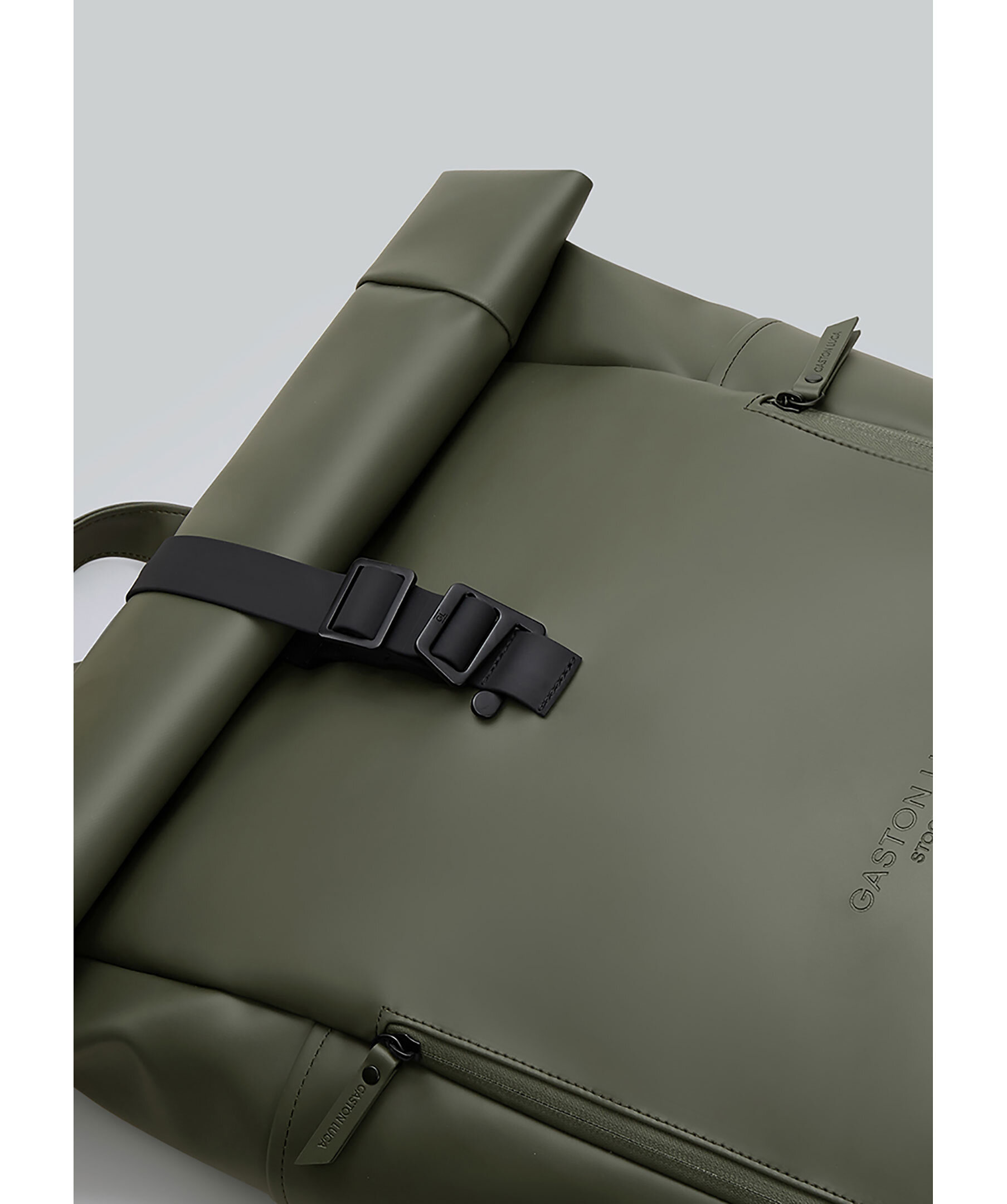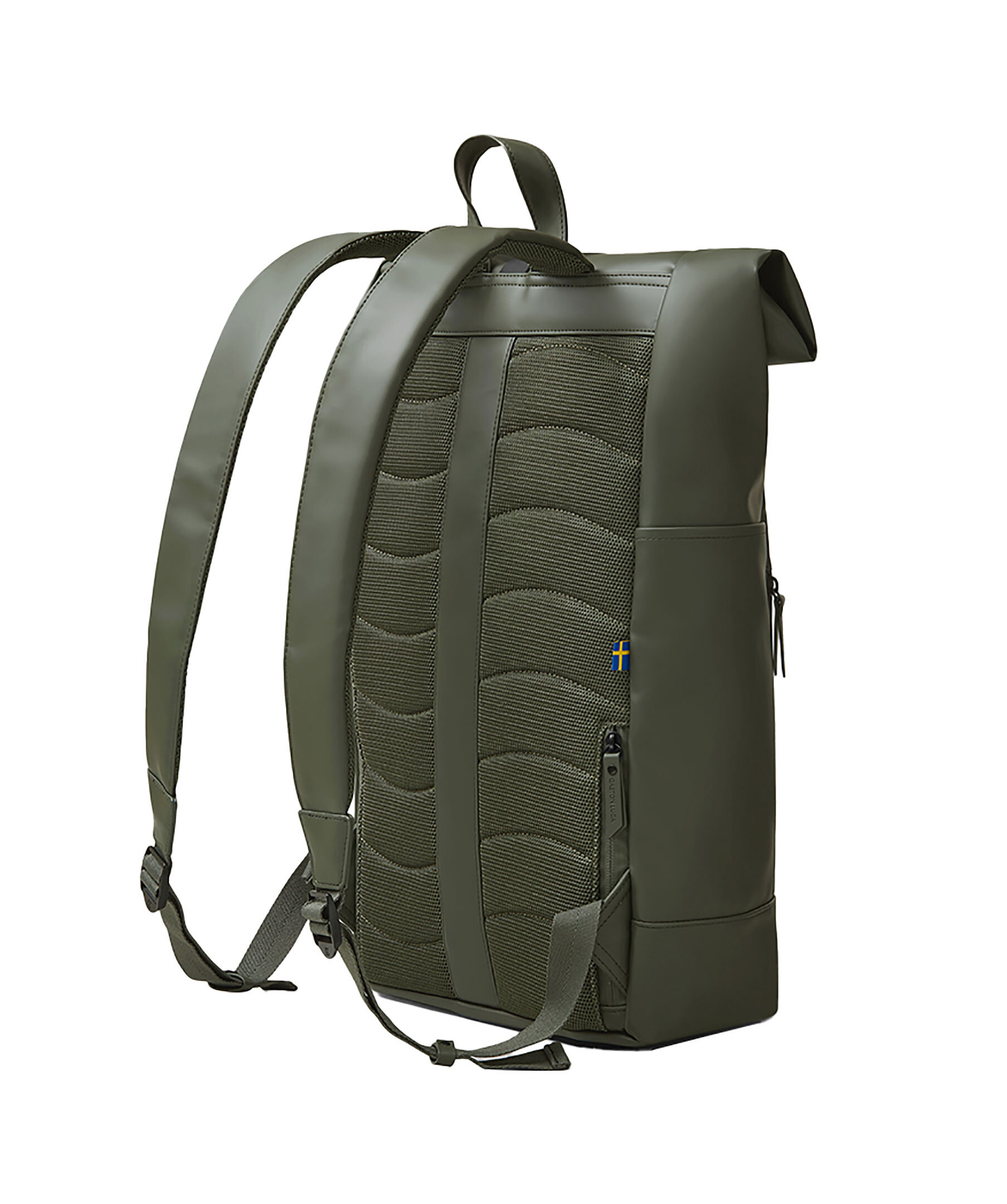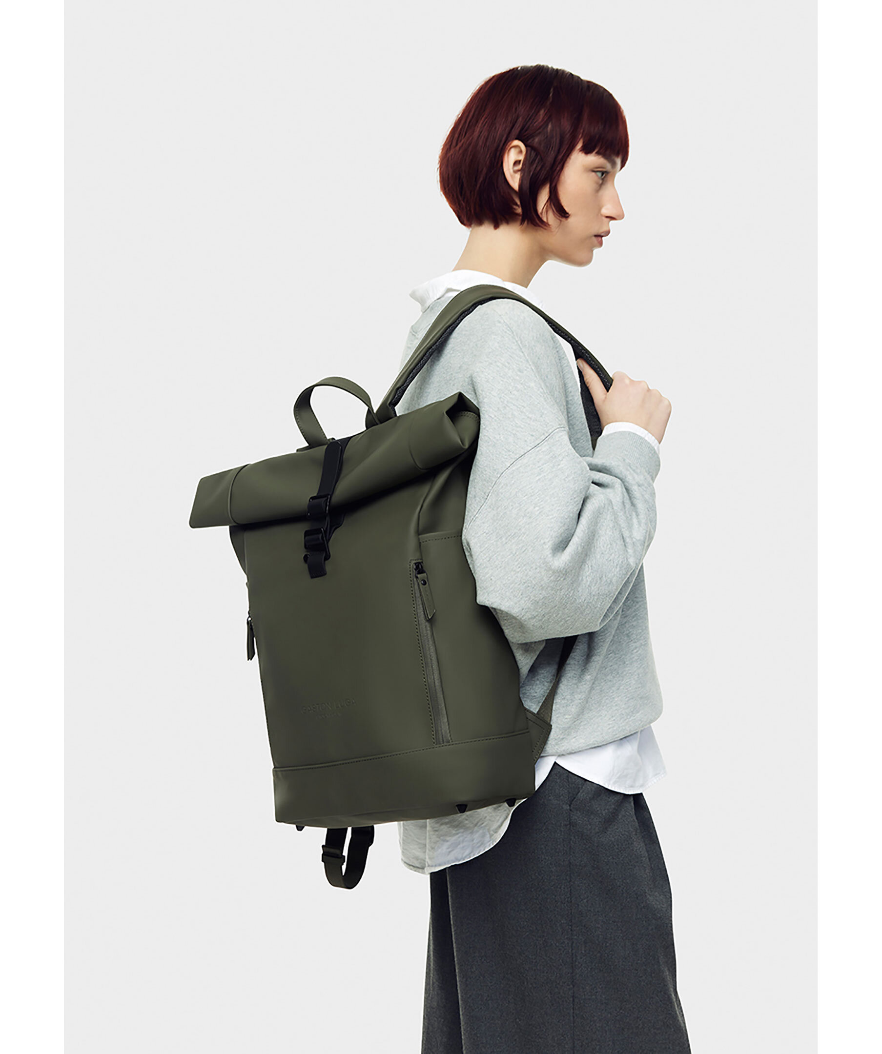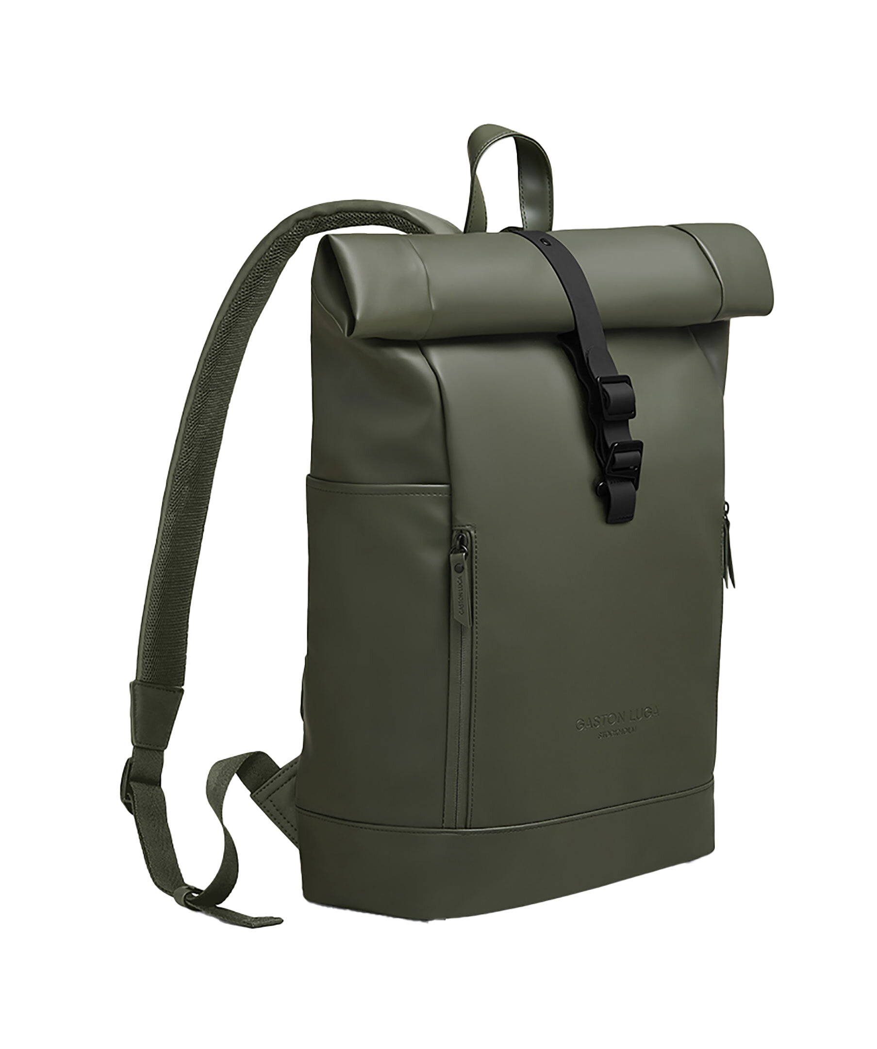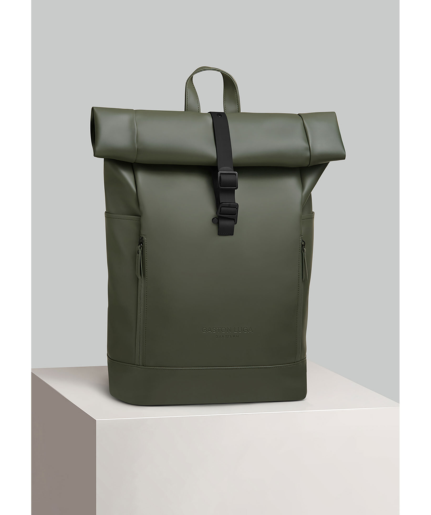 Olivgrön ryggsäck från Gaston Luga. Märkets mest mångsidiga ryggsäck hittills. Det finns fler fickor, ett 16-tums vadderat laptopfack och en rymlig interiör för dina dagliga behov. Dold ficka med dragkedja för värdesaker. Tillverkad av 100 % vattentätt material, med en superbekväm passform för användning hela dagen, gör Rullen det lättare att bära ditt liv – vart det än tar dig. Mått: 62 x 27 x 13,5 (upprullad) 48 x 27 x 13,5 (rullad till min.)