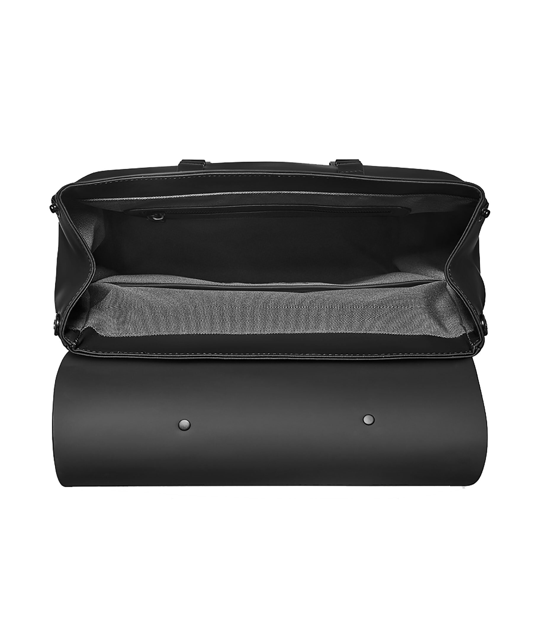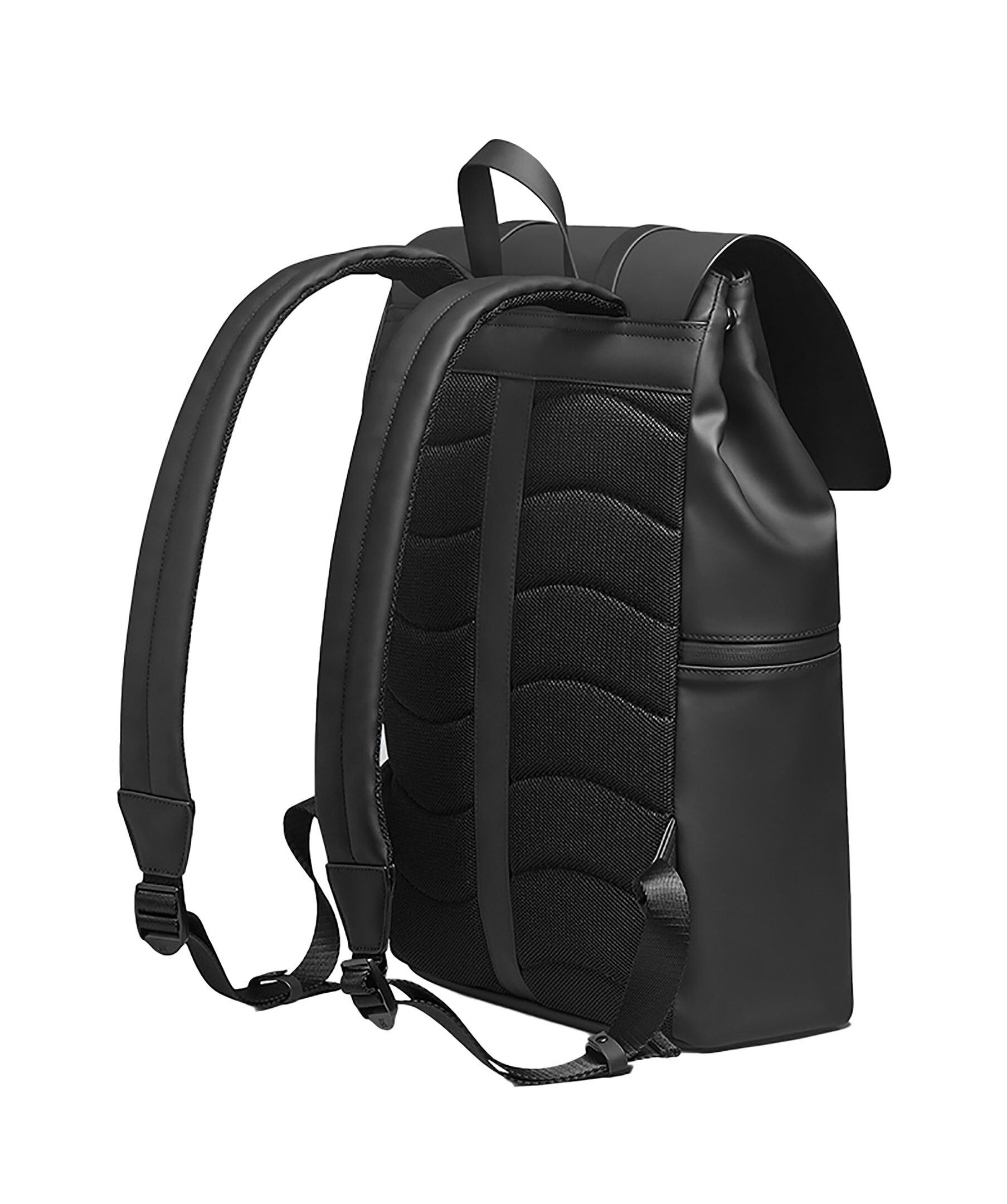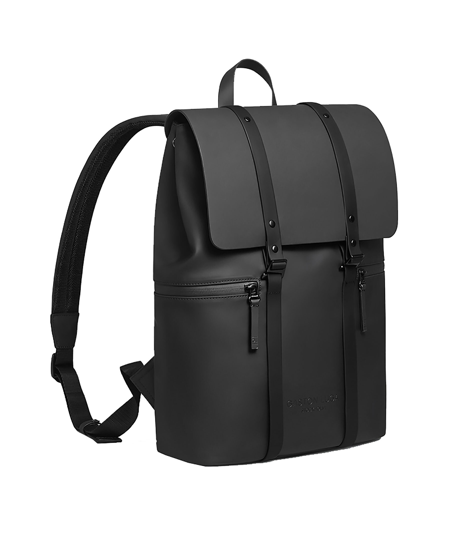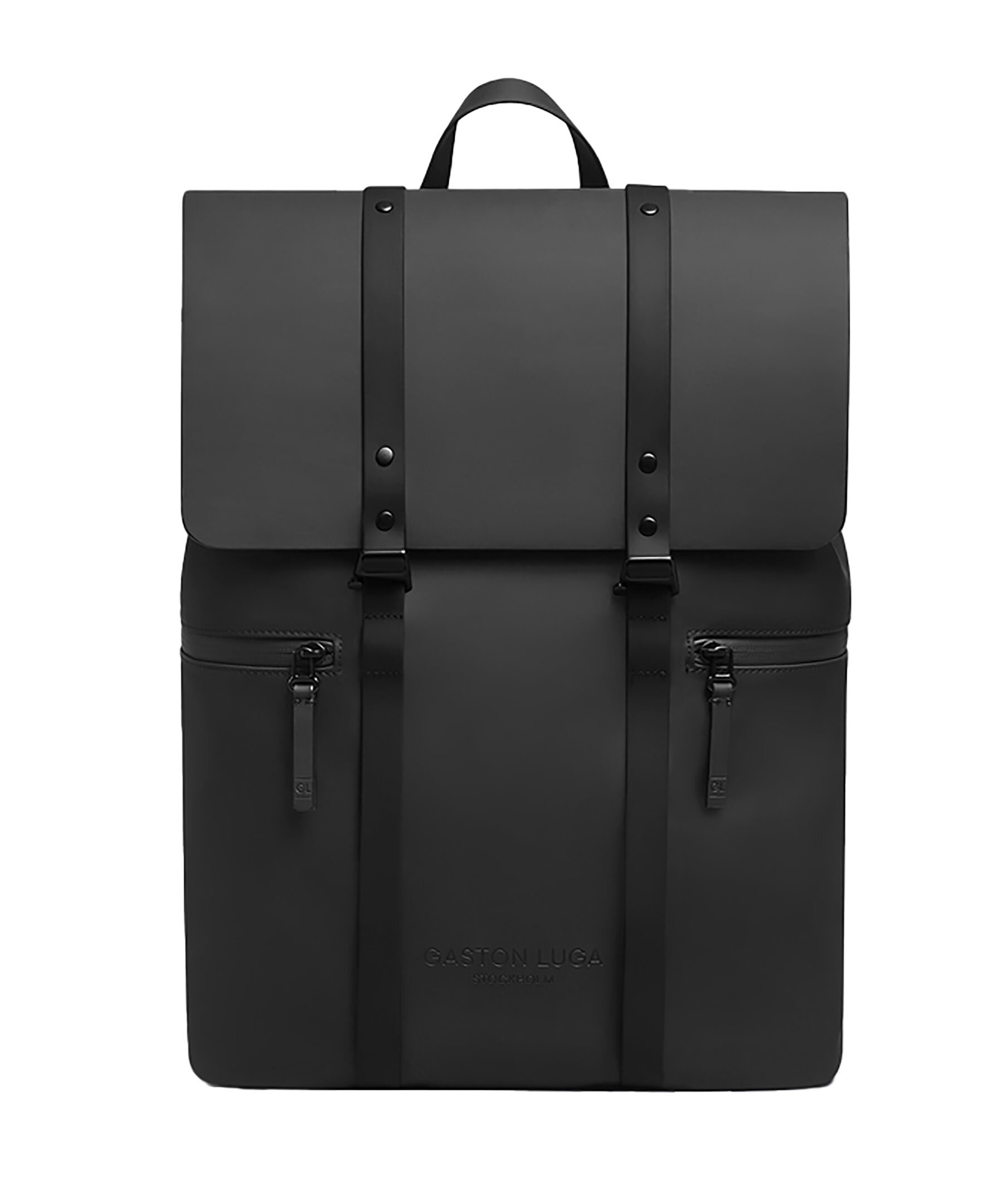 Svart ryggsäck från Gaston Luga. Spläsh-ryggsäcken har omarbetats i ett mer hållbart material som är strömlinjeformat, slitstarkt och vattentätt. Den eleganta stängningen med dubbla remmar håller alla dina tillhörigheter säkra i huvudfacket, som bekvämt rymmer en 13" laptop, bärbara datorer och en vattenflaska. Dess moderna stil och funktionella form gör den idealisk för att utforska staden. Återvunnen PES-baksida med PU-beläggning. Mått: 40 x 28,5 x 12,5cm.