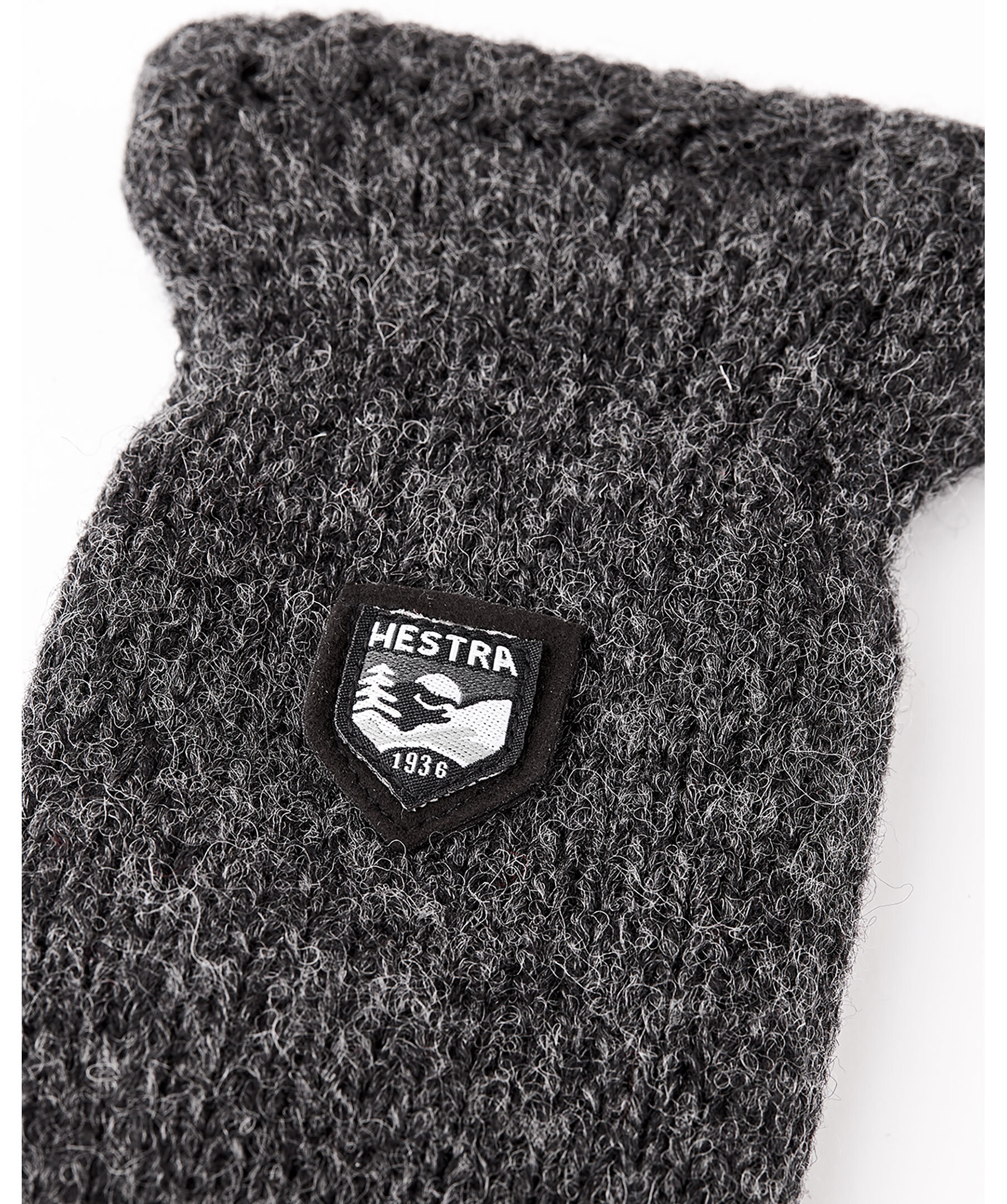 Mörkgrå, klassisk tumvante från Hestra. Vantarna är gjorda i shetlandsull med Thinsulate och fleecefoder för extra värme samt dubbelvikt ribbstickad mudd och liten Hestra-logo på handens ovansida.