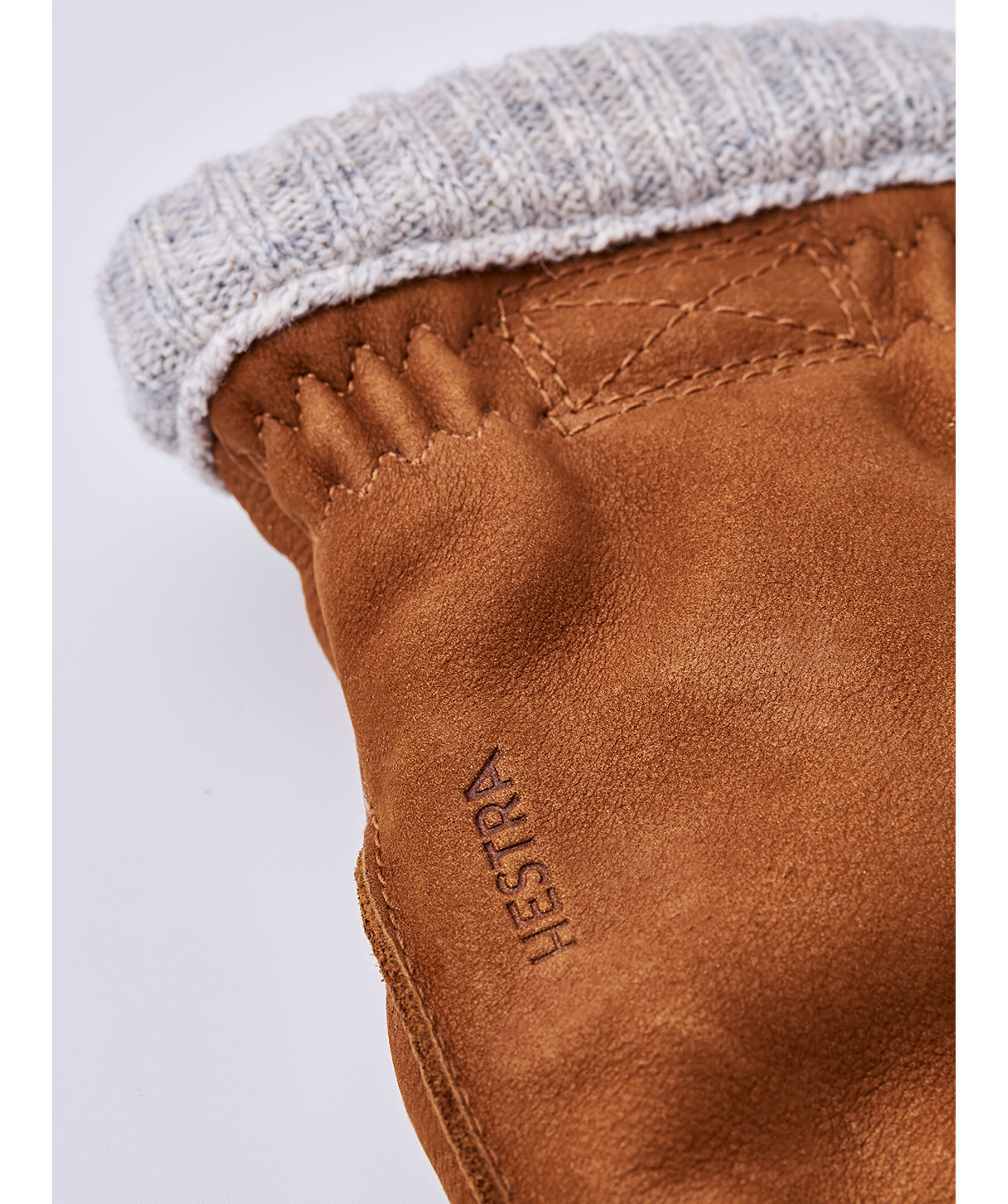 Bruna läderhandskar med robust mockakänsla från Hestra. Handskarna har fleecefoder inuti och Primaloft Gold isolerar under kyliga vinterdagar, ribbstickad mudd och logotyp på handskens ovansida.