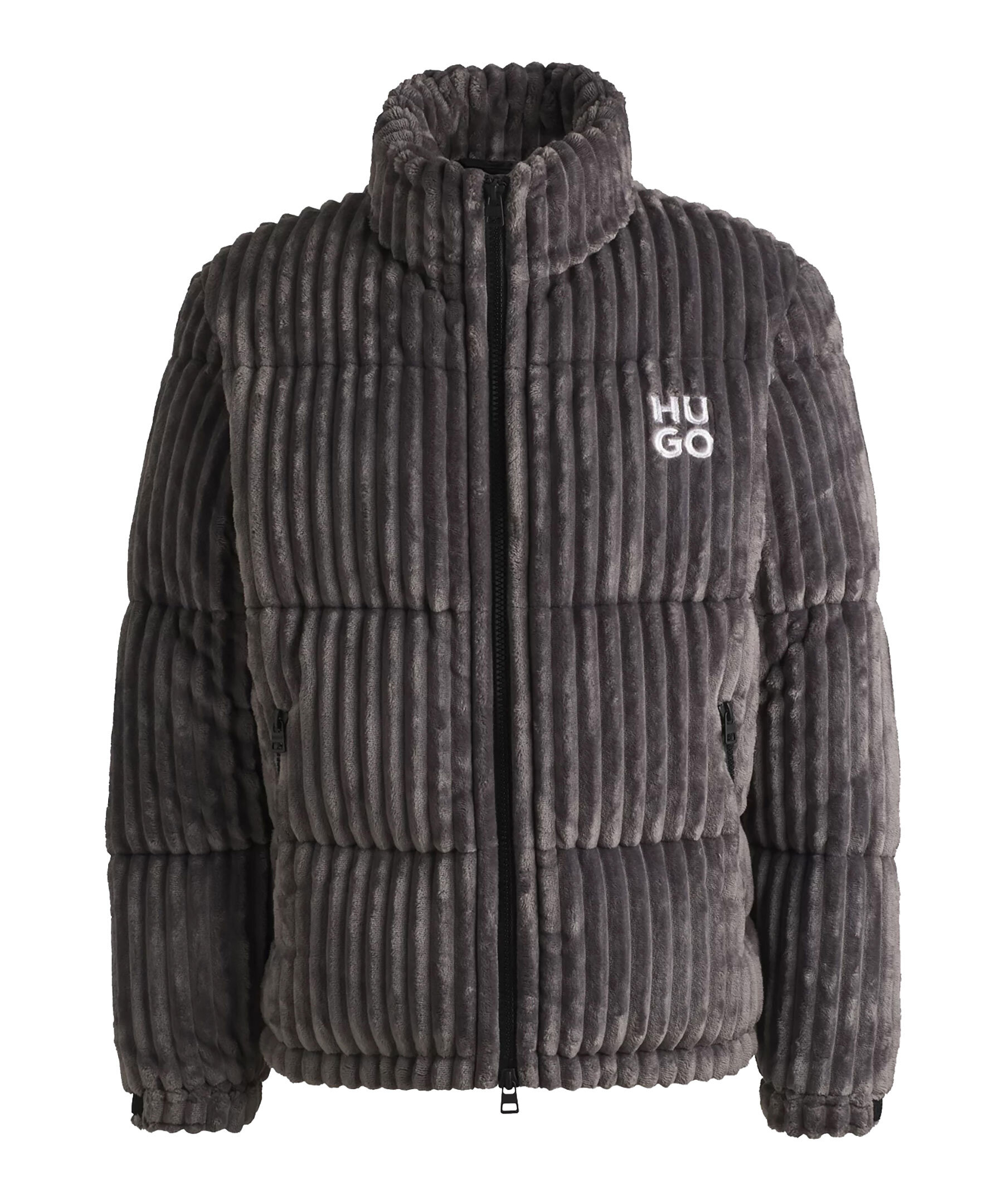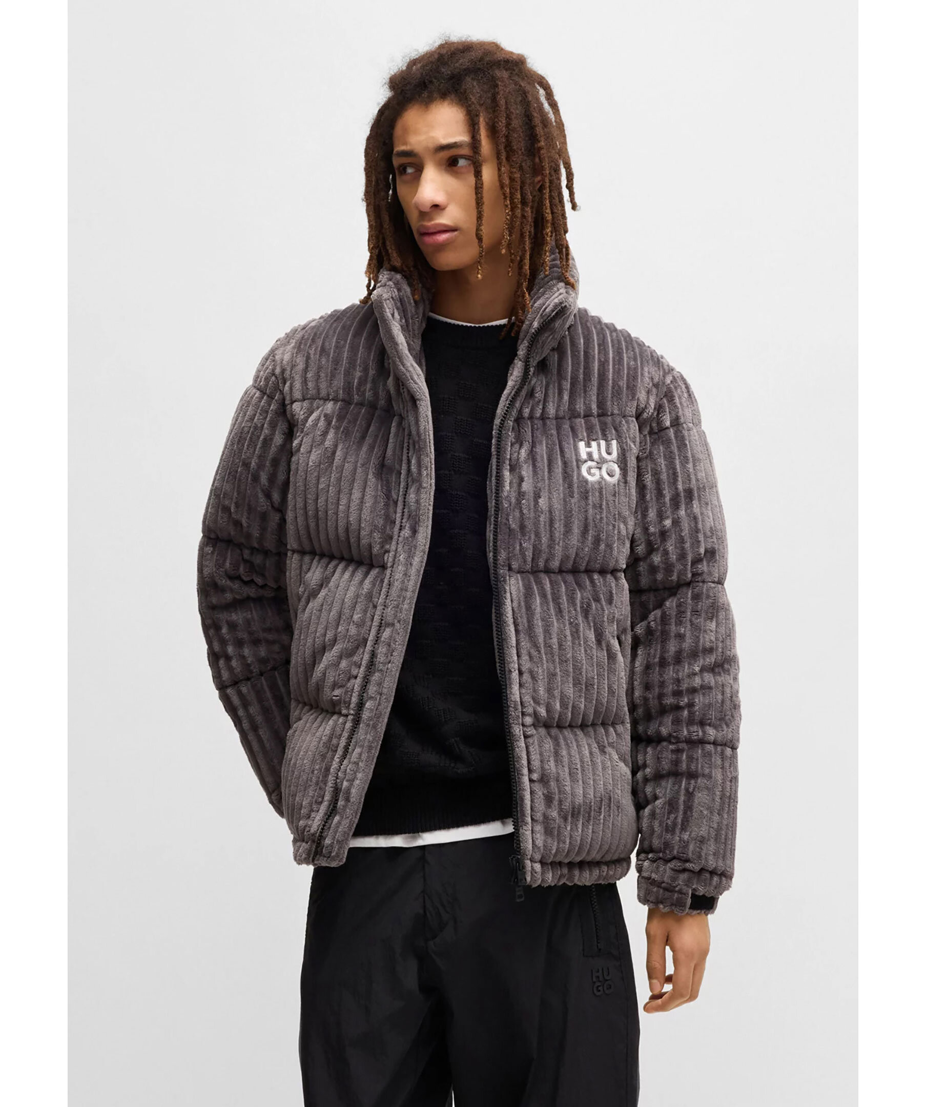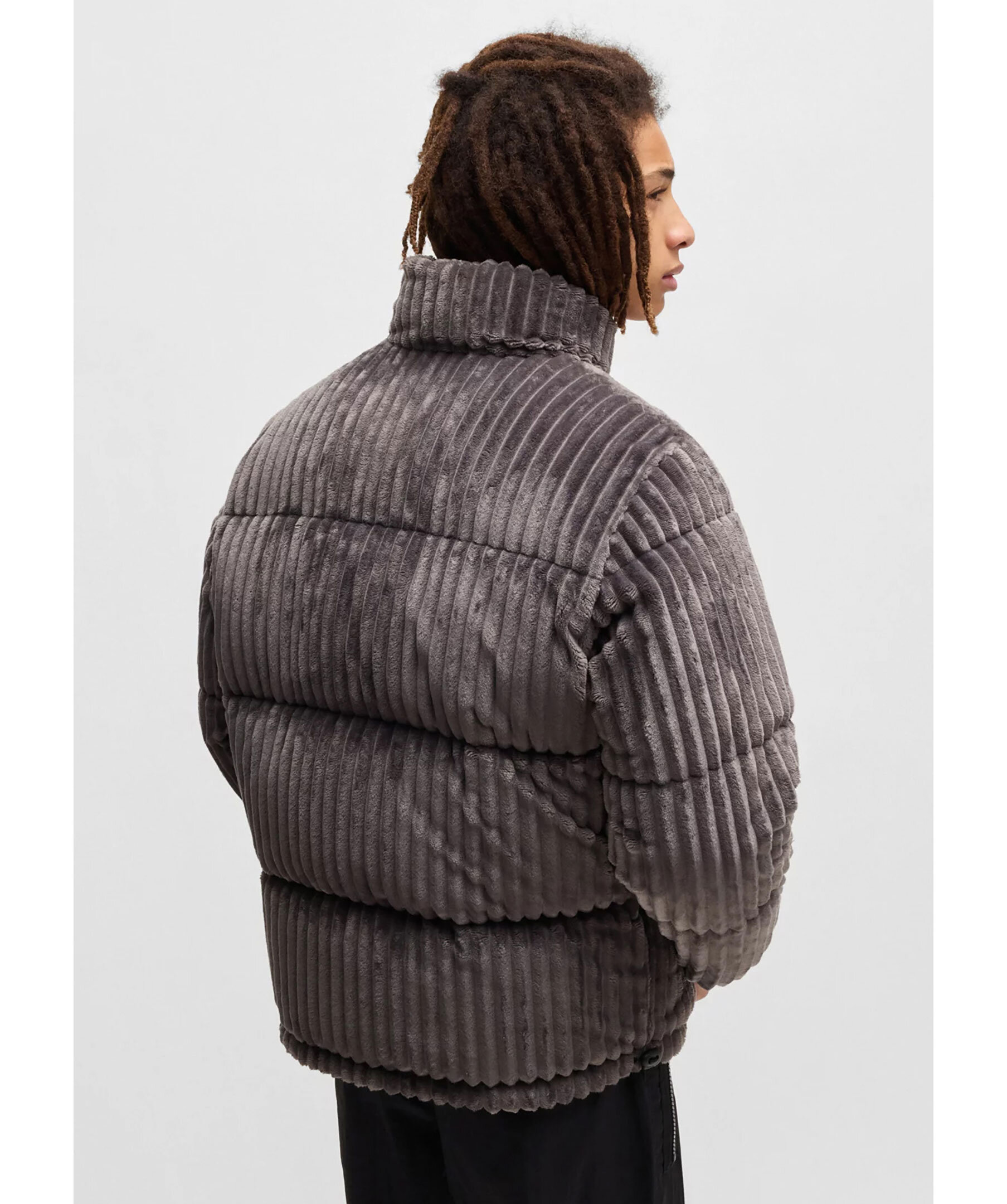 Grå pufferjacka från HUGO i mjuk manchester. Jackan stängs med tvåvägsdragkedja och har två sidfickor med dragkedja, innerficka med dragkedja, hög krage, elastiska manschetter samt logotyp på bröstet. Justerbar fåll. Tillverkad i polyester.