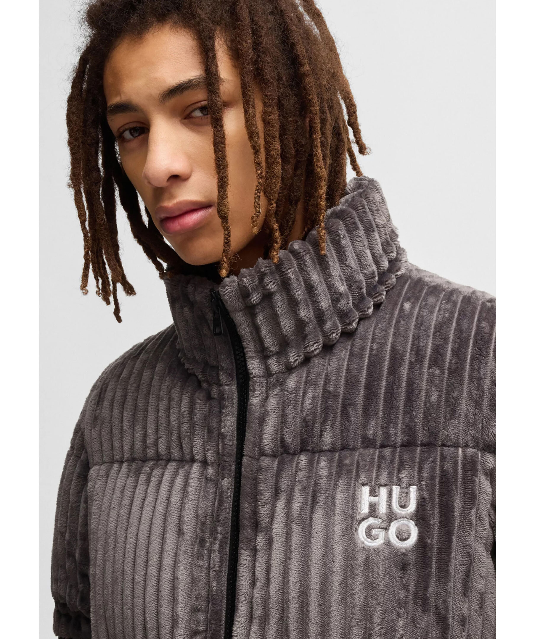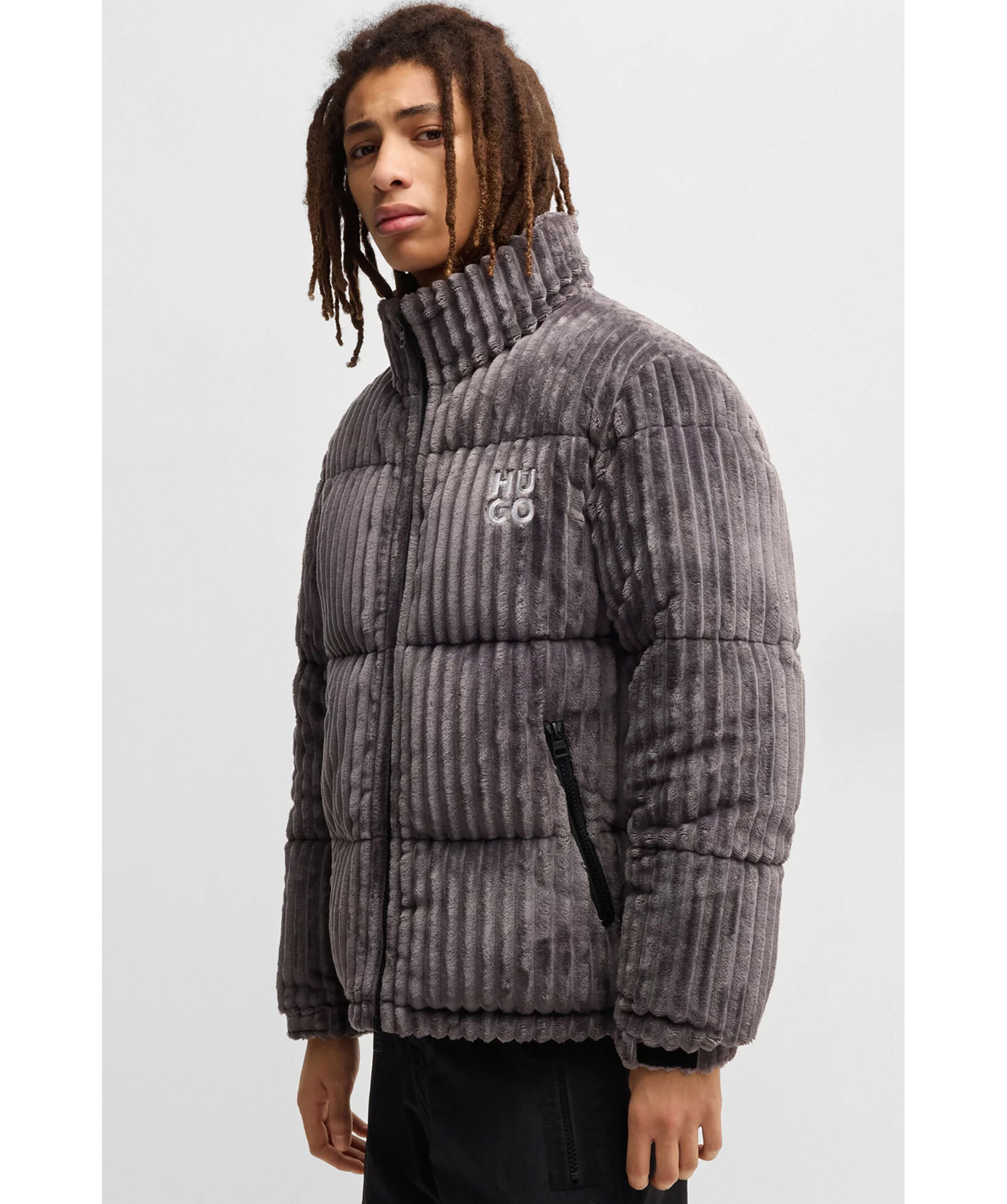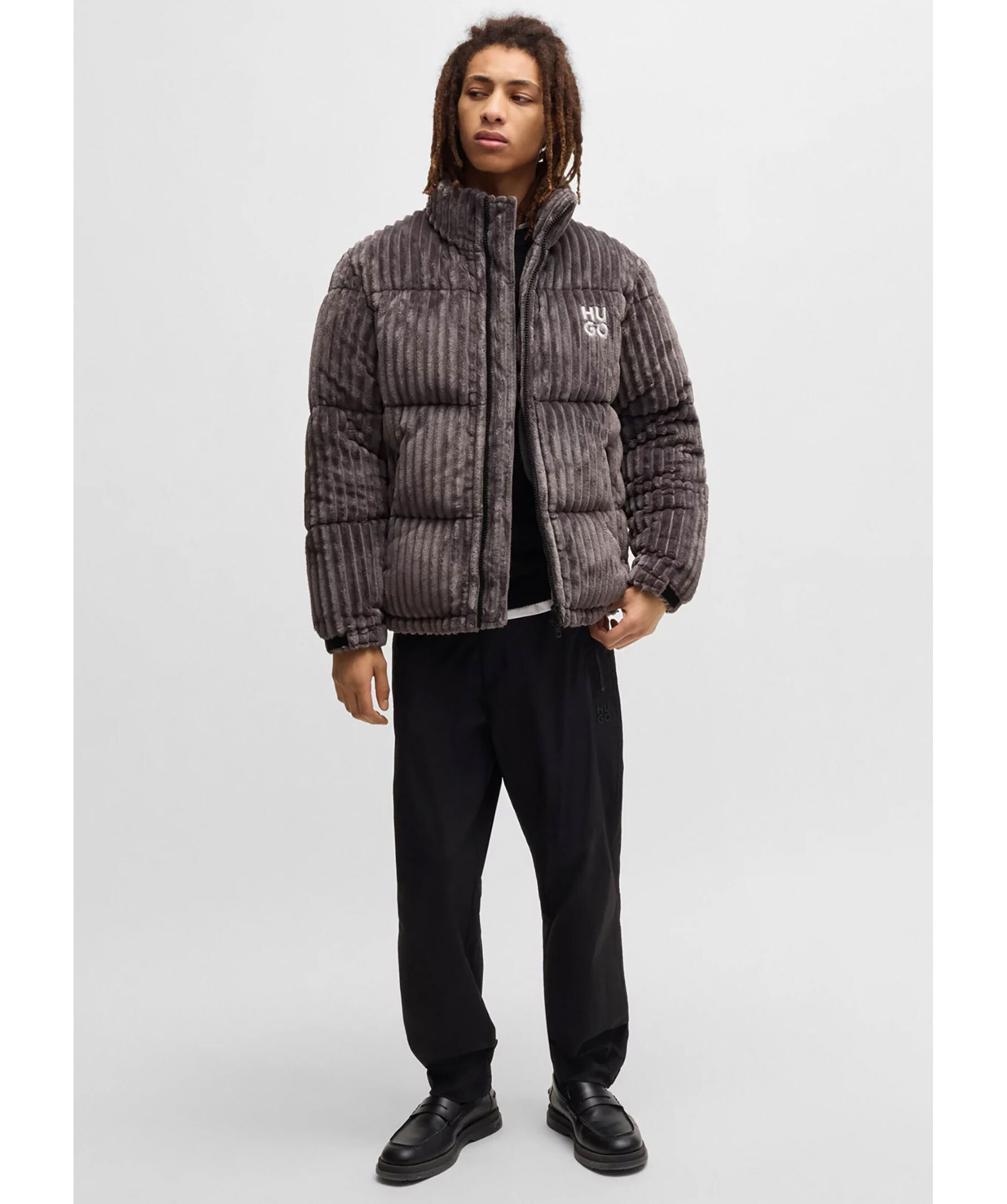 Grå pufferjacka från HUGO i mjuk manchester. Jackan stängs med tvåvägsdragkedja och har två sidfickor med dragkedja, innerficka med dragkedja, hög krage, elastiska manschetter samt logotyp på bröstet. Justerbar fåll. Tillverkad i polyester.
