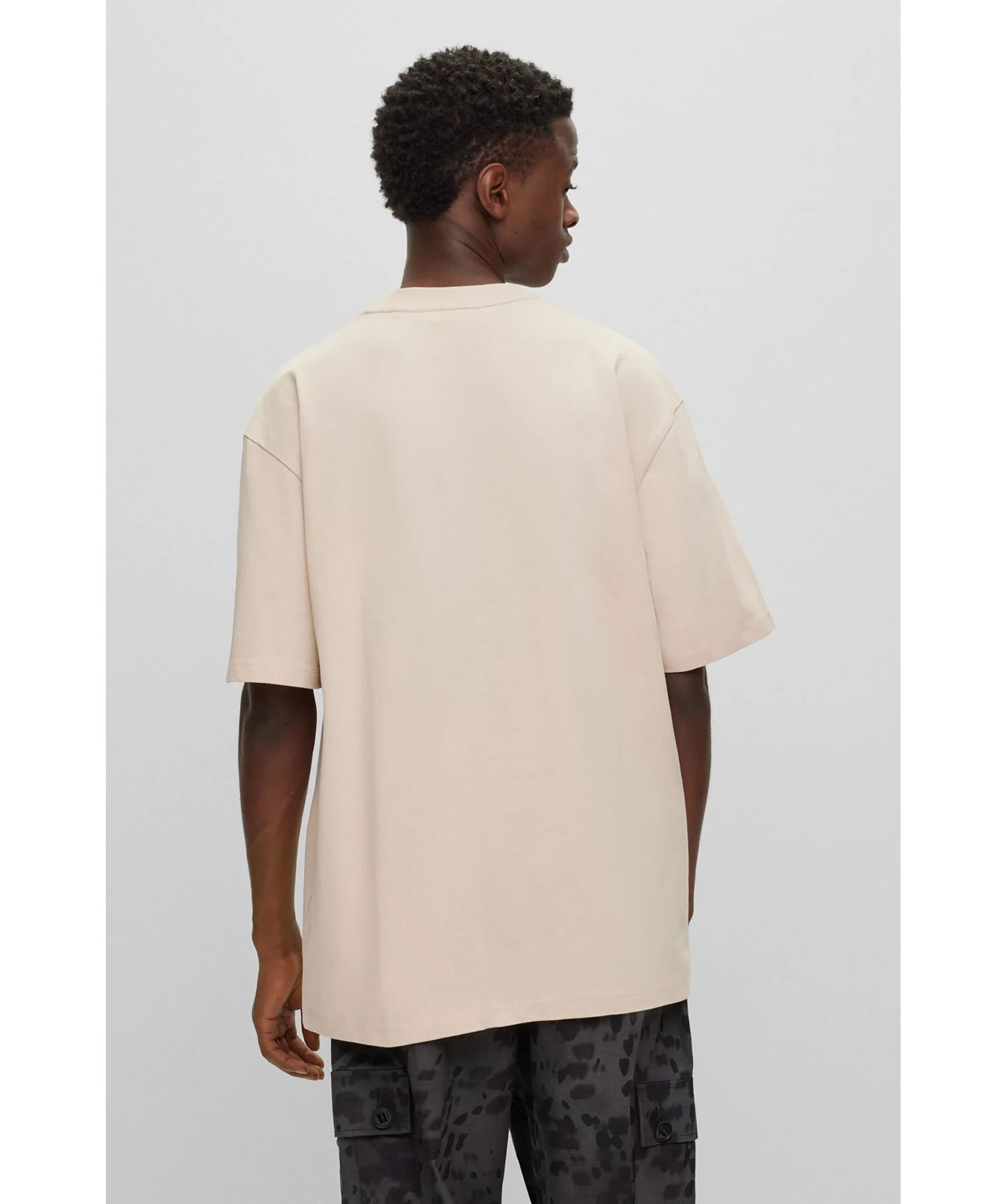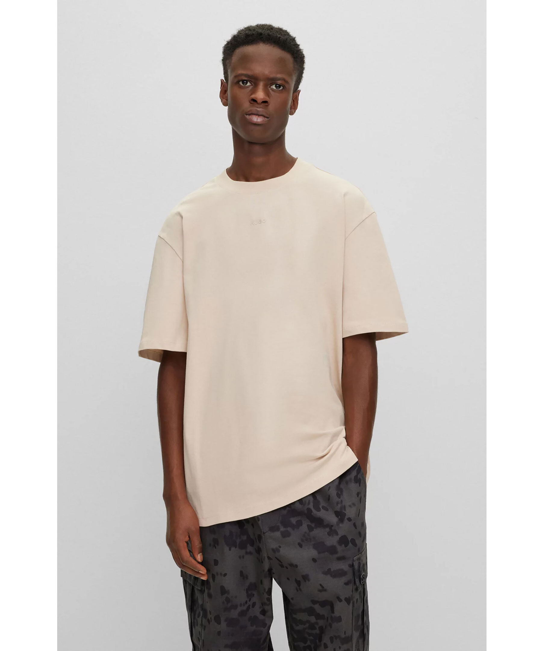 Sandfärgad t-shirt från HUGO i en avslappnad passform. Tillverkad av kraftig jersey, med litet logotyptryck på bröstet. Genom att köpa den här produkten bidrar du till att skydda miljön och främja hållbar bomullsodling i Afrika. CmiA (Cotton made in Africa) arbetar för att förbättra levnads- och arbetsvillkoren för afrikanska bomullsbönder och att bevara naturen.
